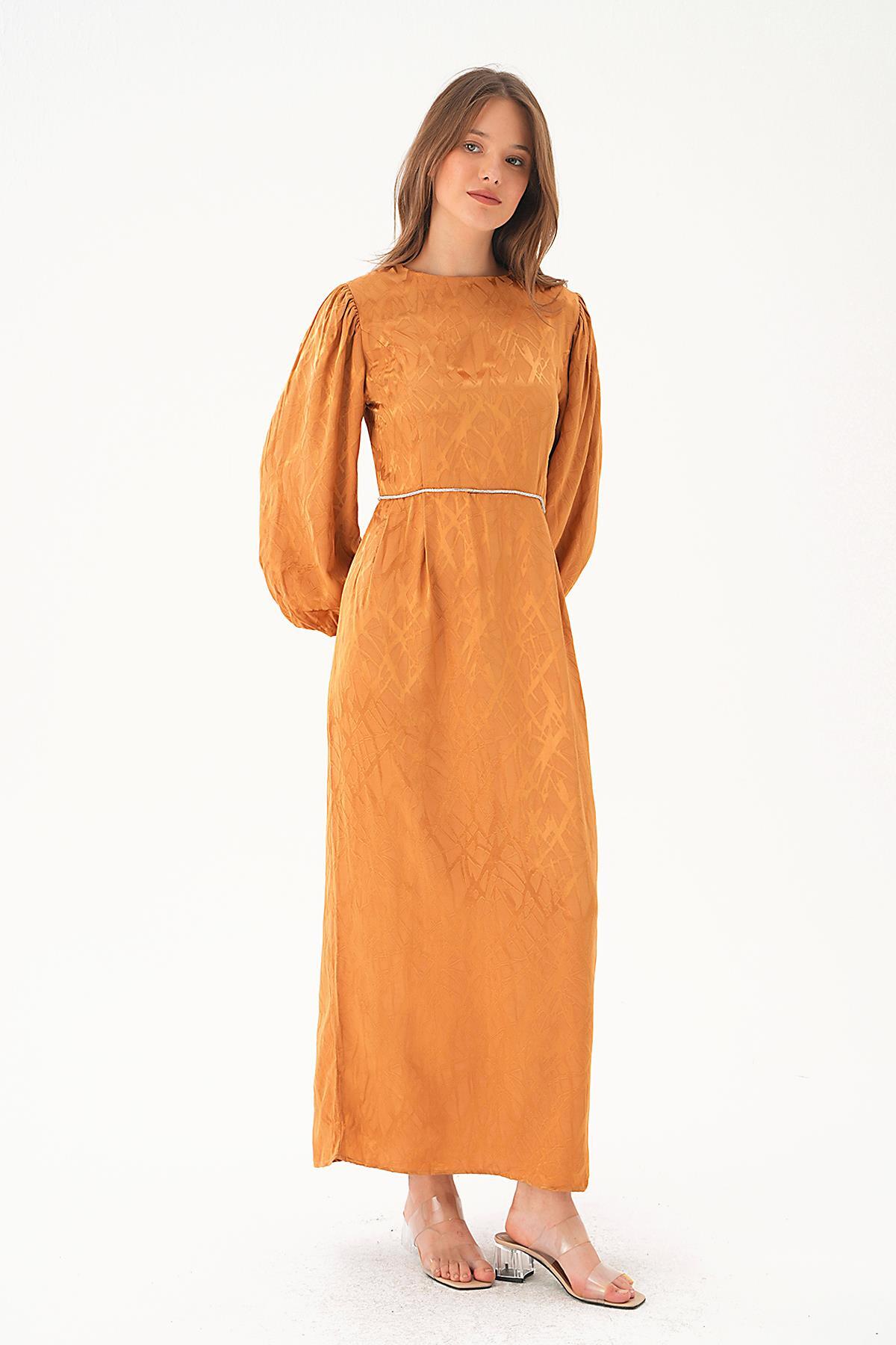 4209A Balon Kol Elbise Camel