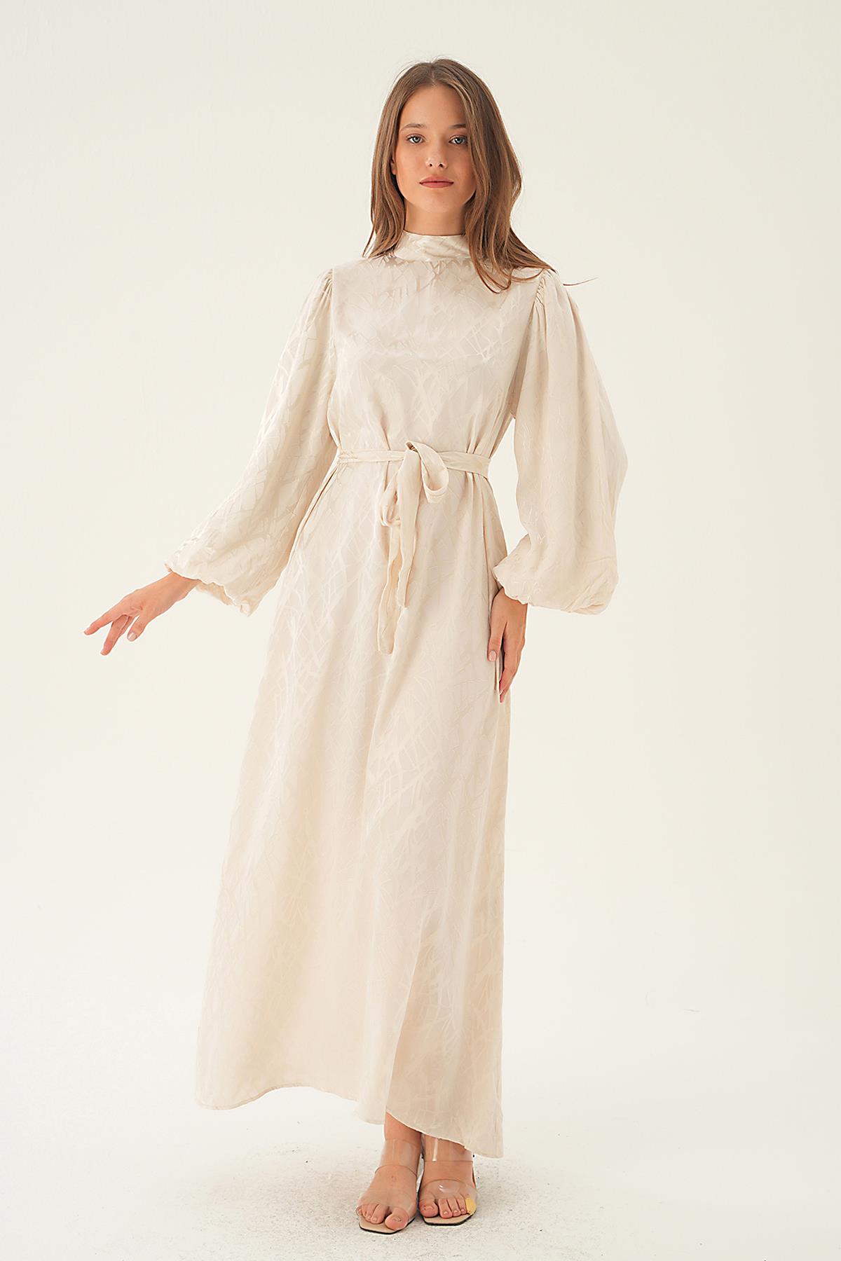 Vizon Omuz Düğme Detaylı Triko Uzun Elbise 8154A