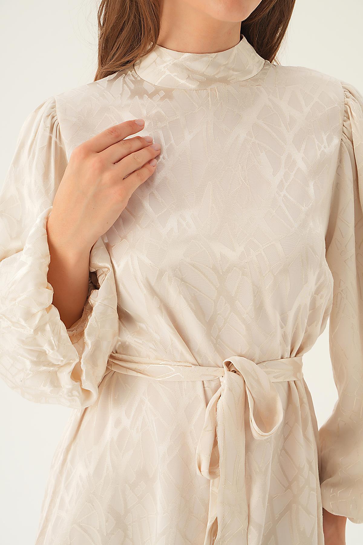Kahve Ön Büzgülü Taşlı Elbise 252787 - RAYS Kahve Ön Büzgülü Taşlı Elbise 252787 - RAYS (1)