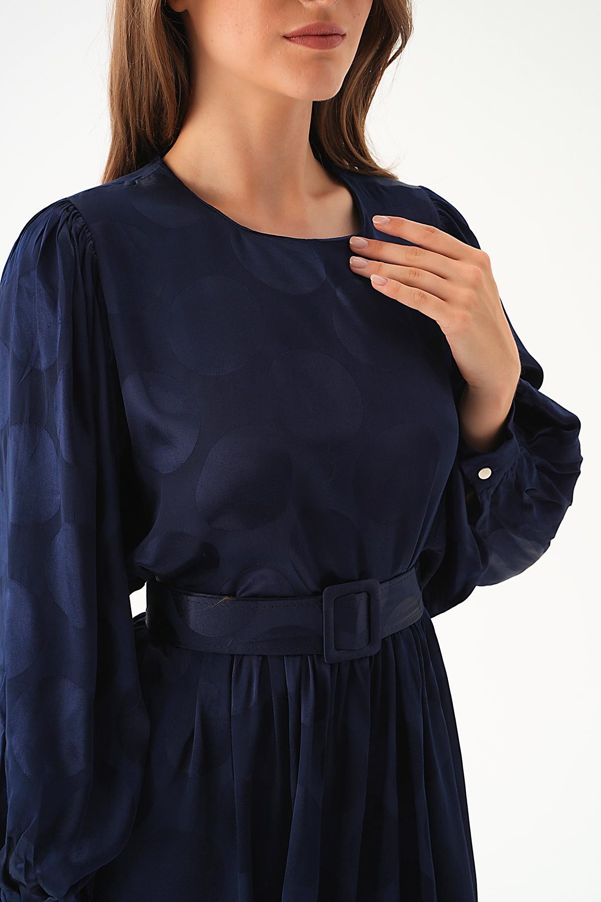 Laci Puantiye Desen Kemerli Elbise 4215A