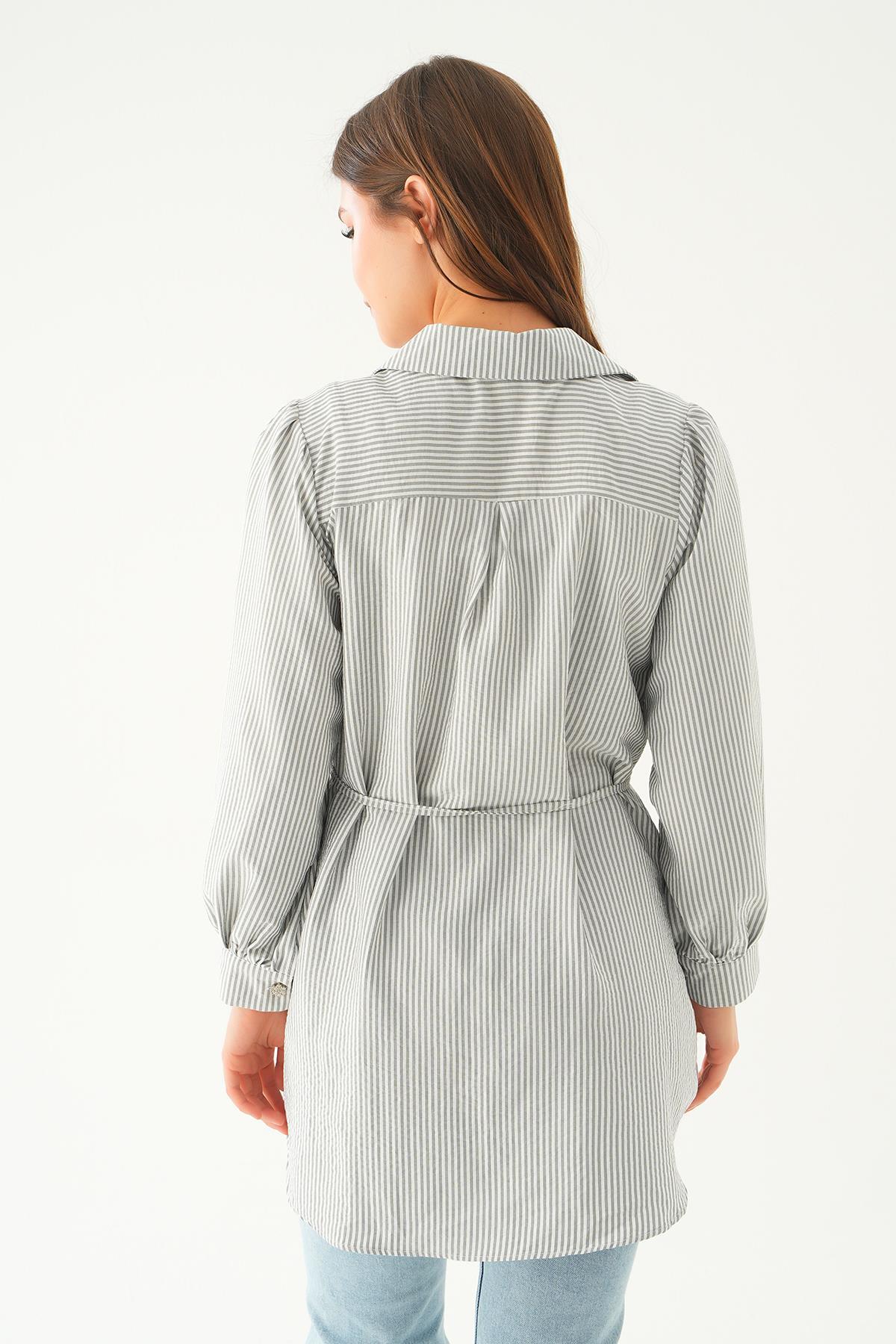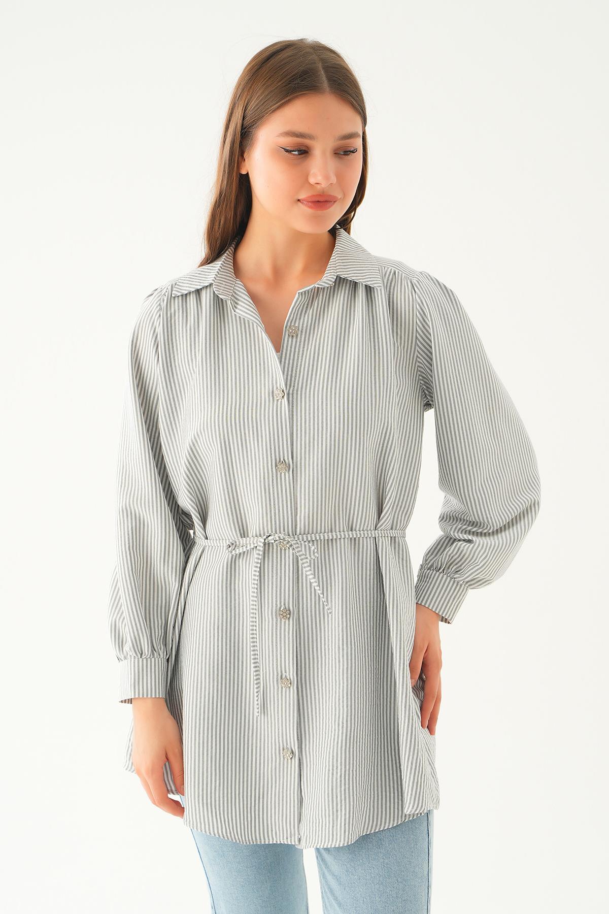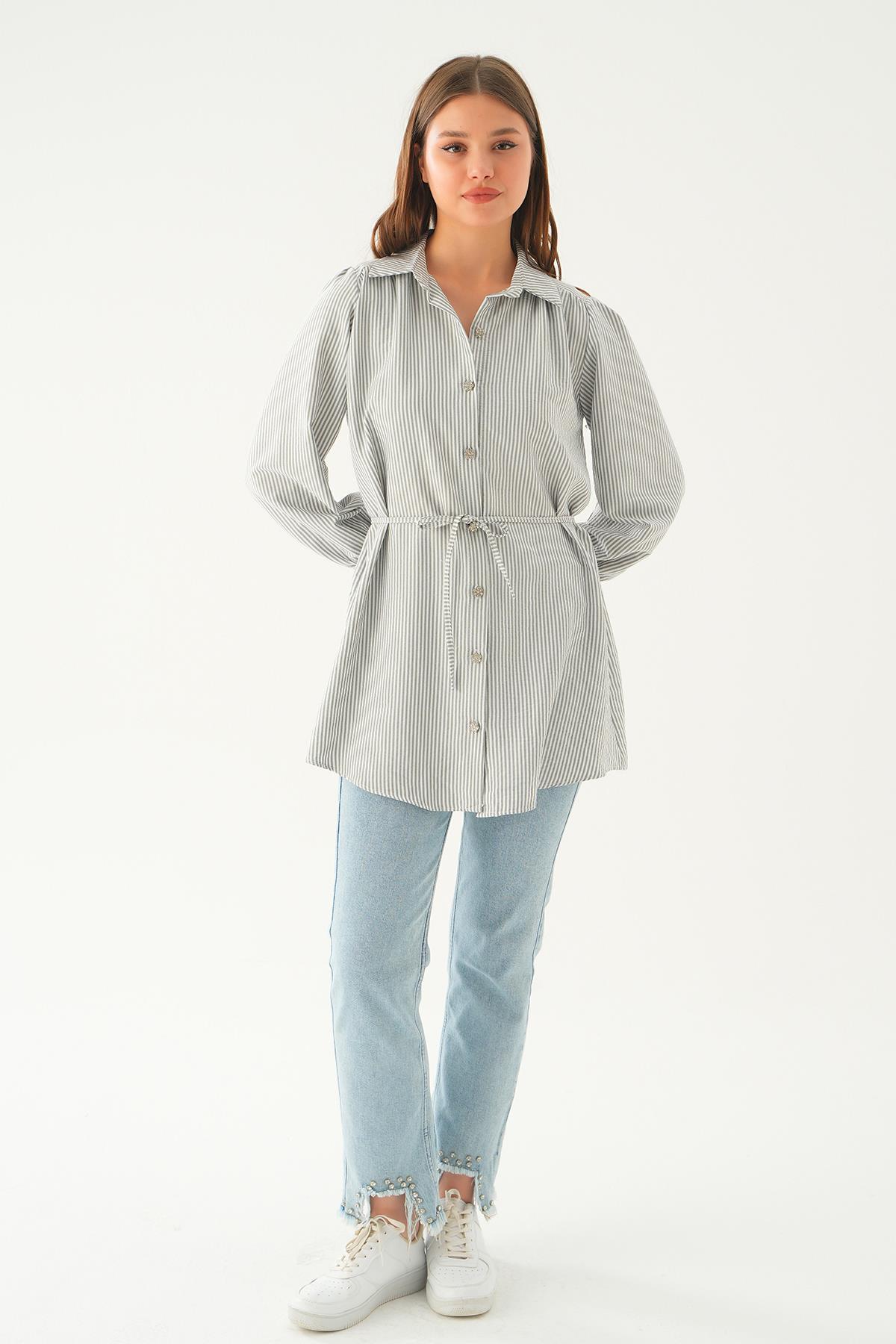 Siyah Bağlama Detay Çizgili Tunik 4242A