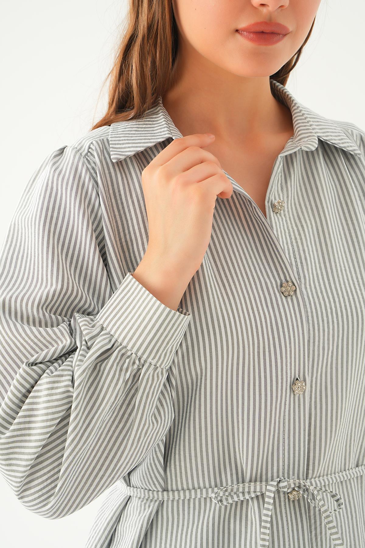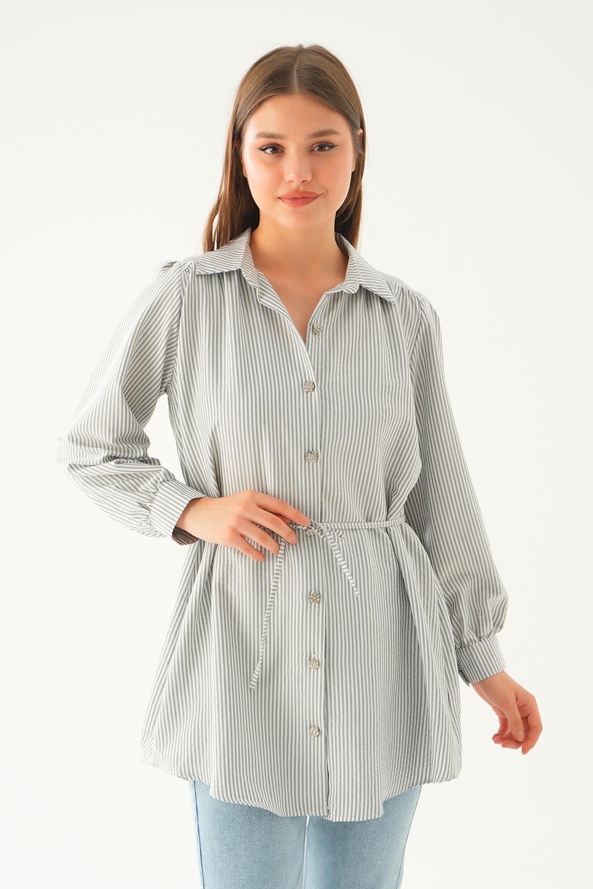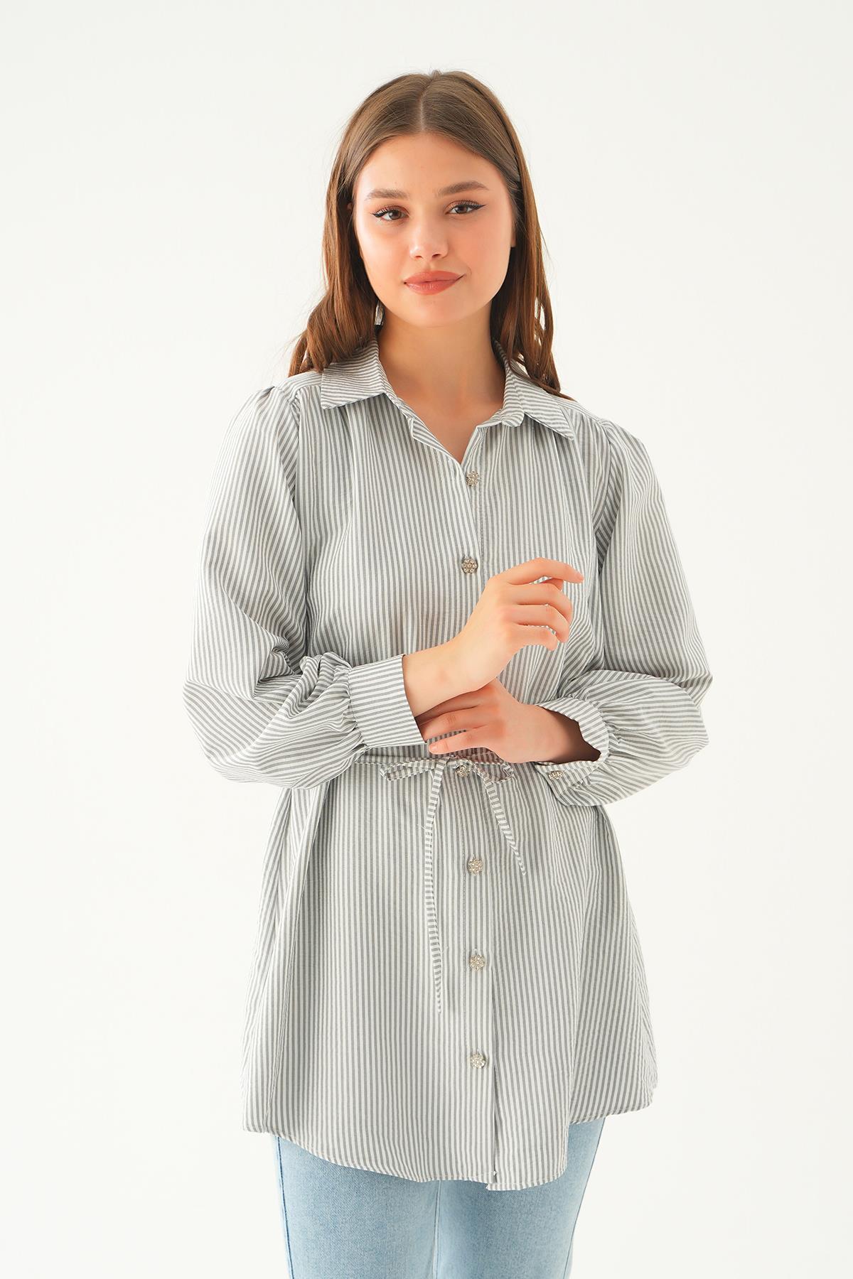 Siyah Bağlama Detay Çizgili Tunik 4242A