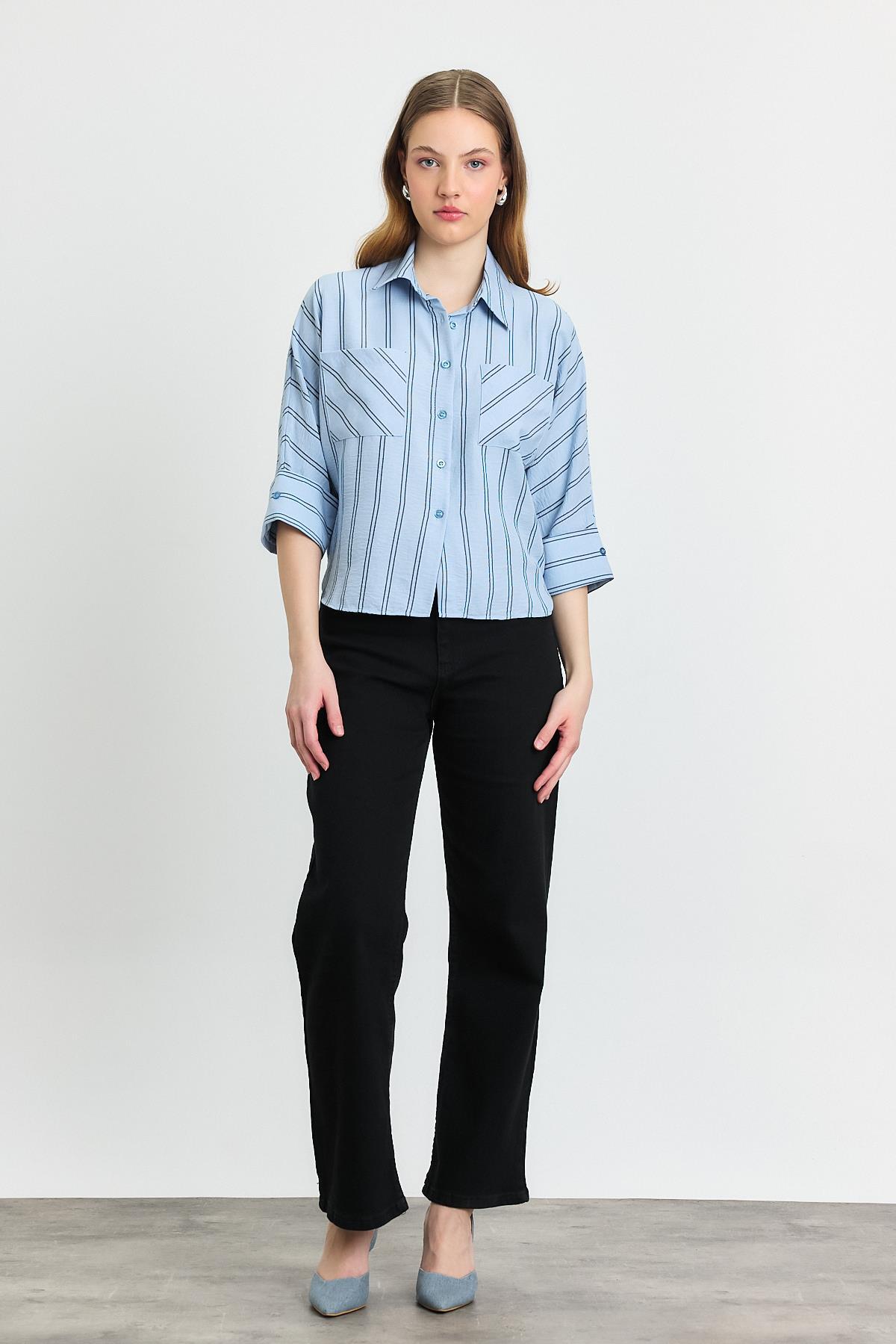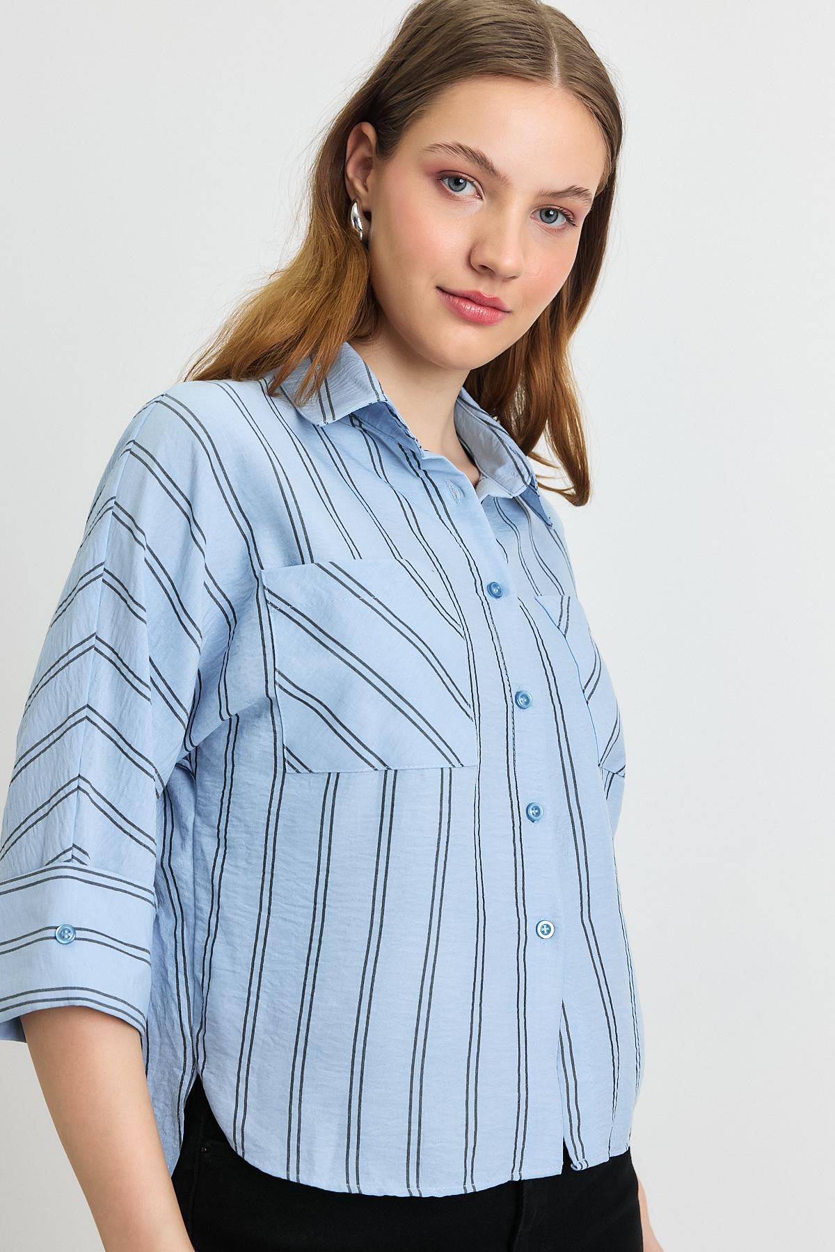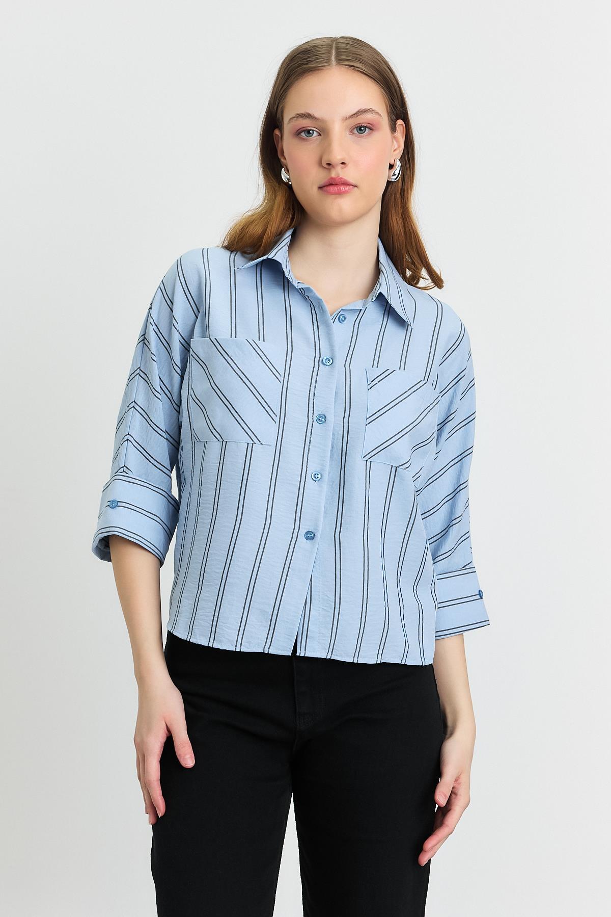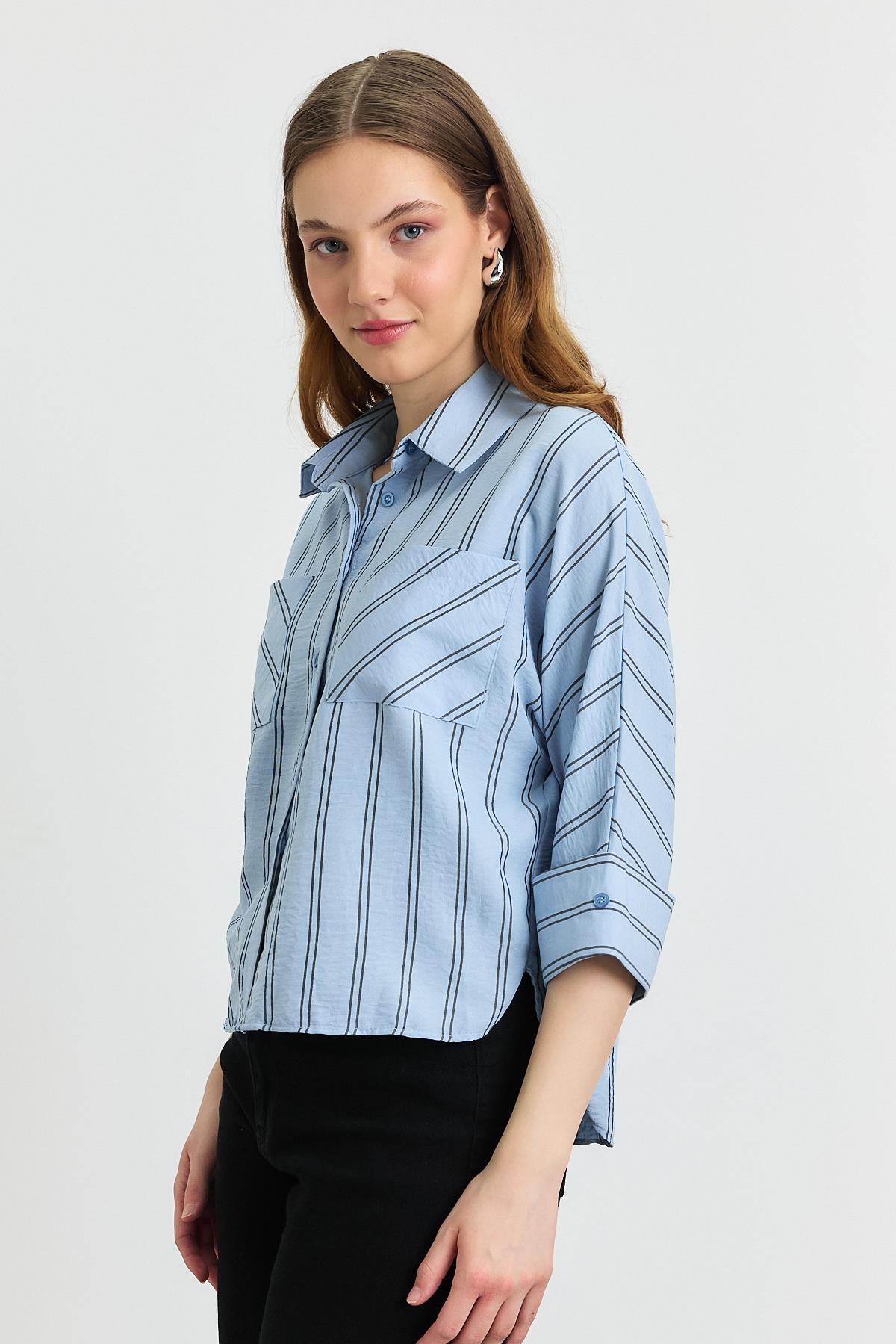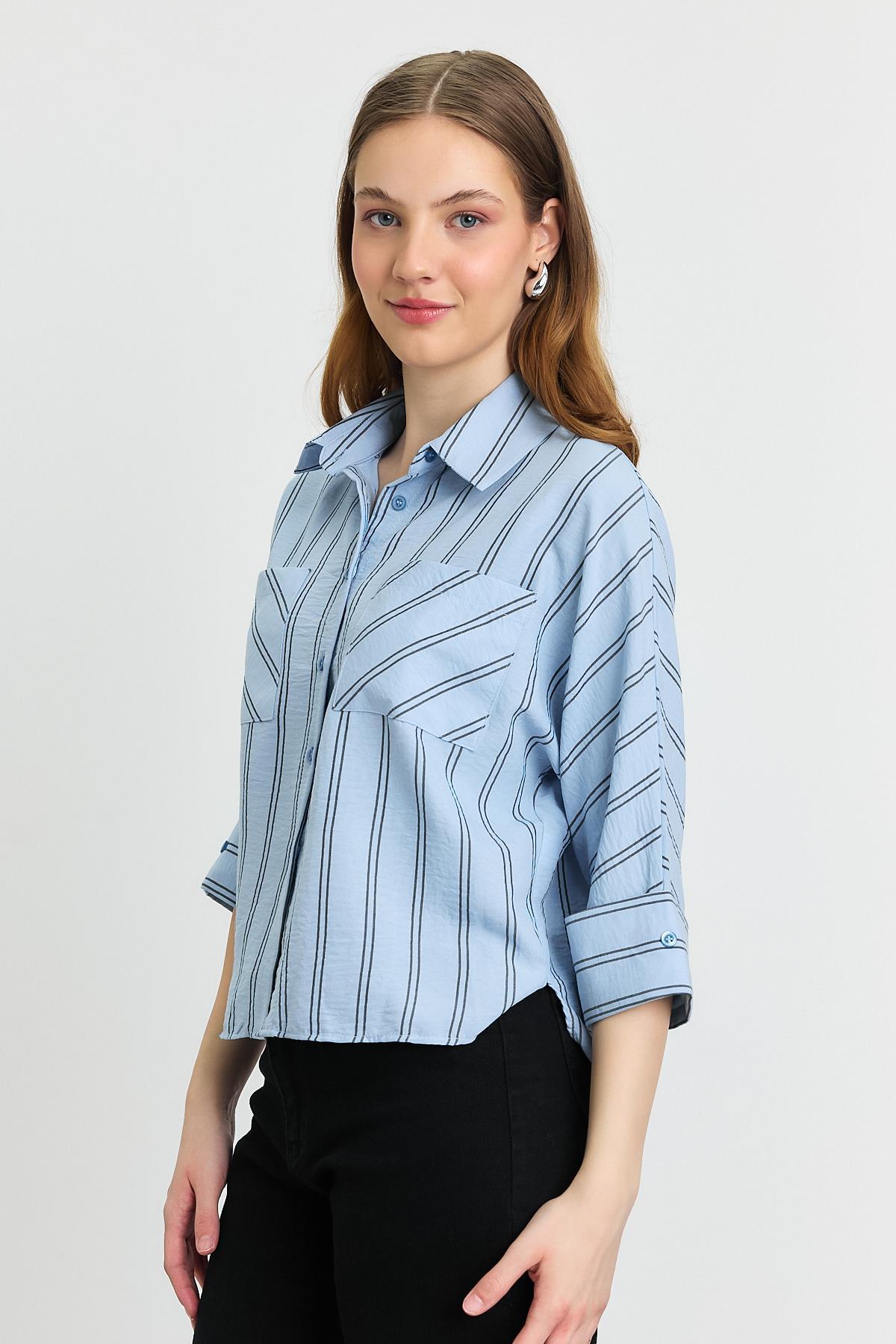 Mavi Çizgili Çift Cepli Gömlek 4272-1