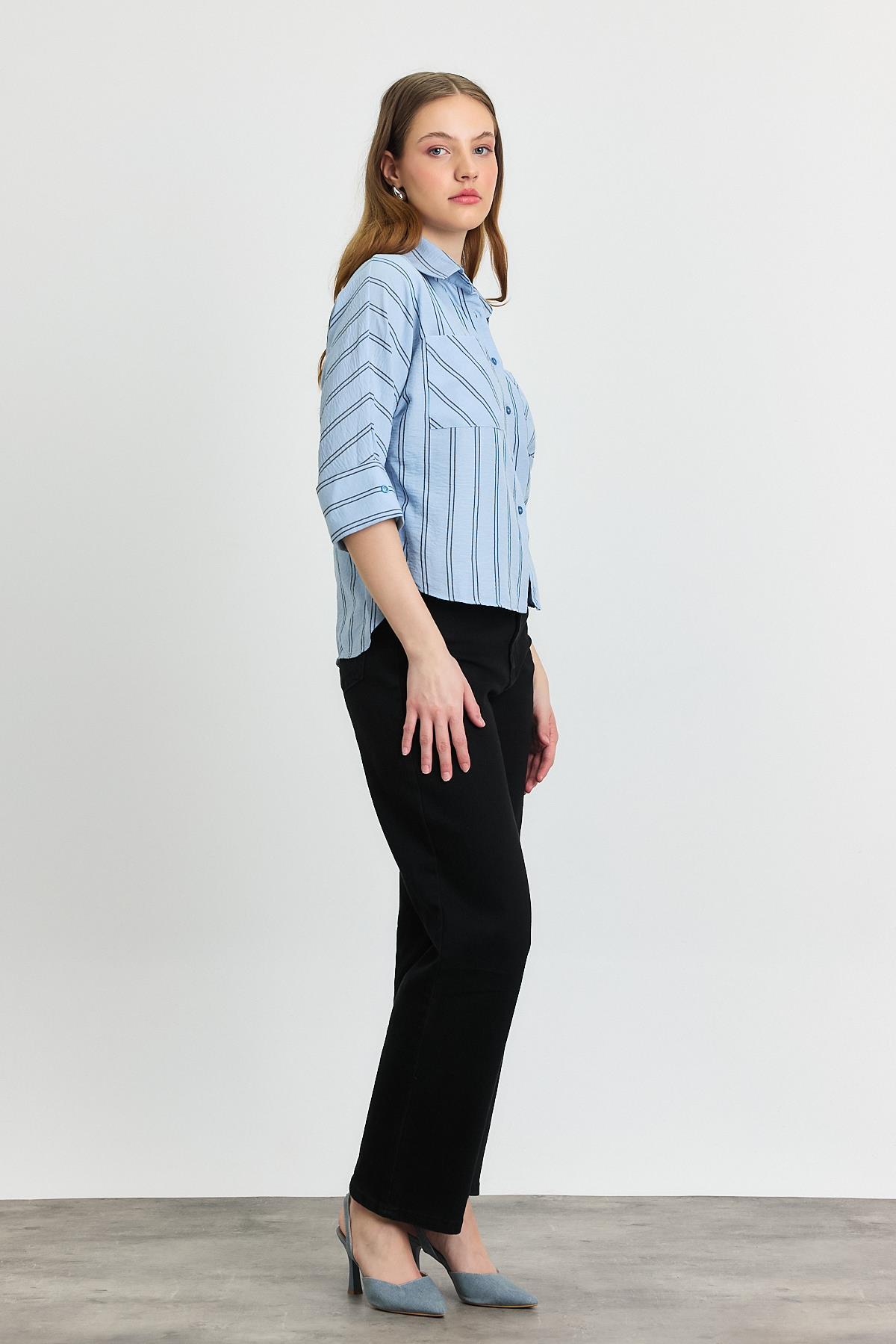 Mavi Çizgili Oversize Gömlek 5460 - RAYS Mavi Çizgili Oversize Gömlek 5460 - RAYS (1)