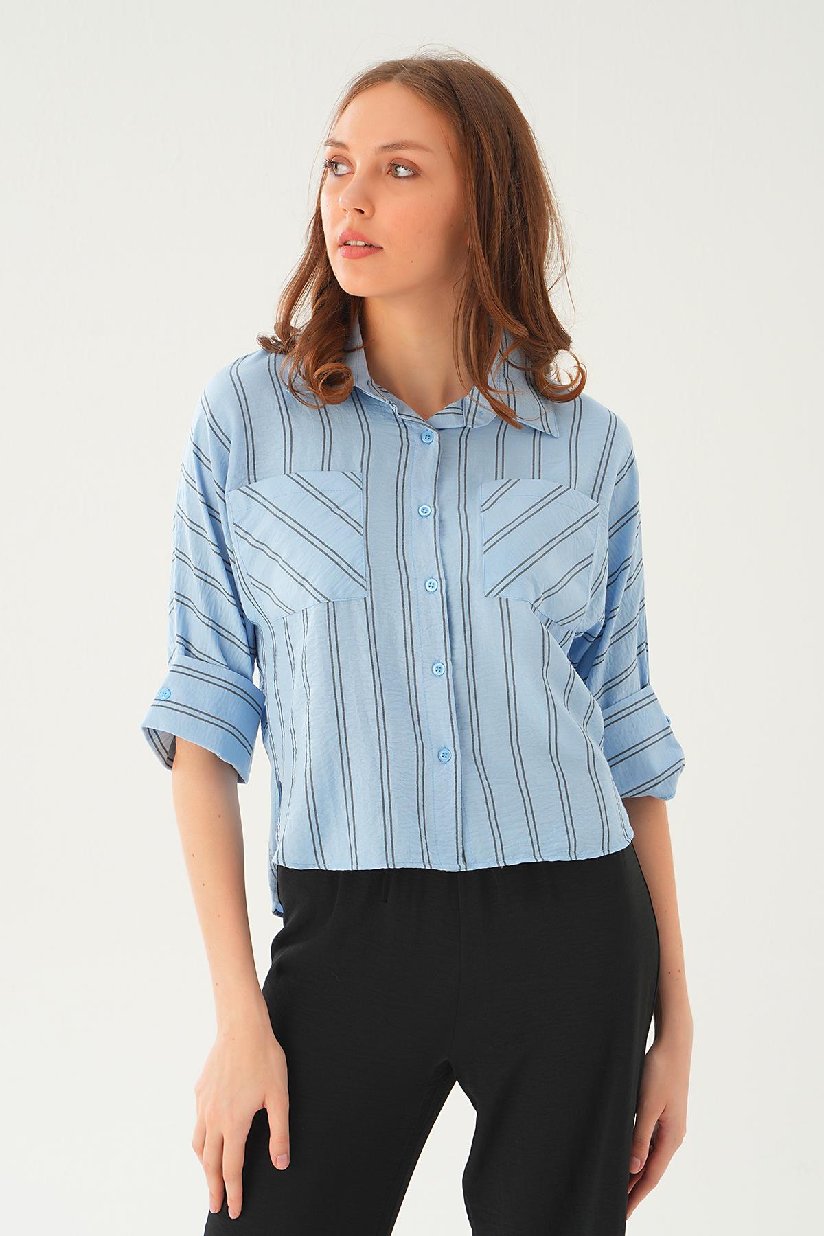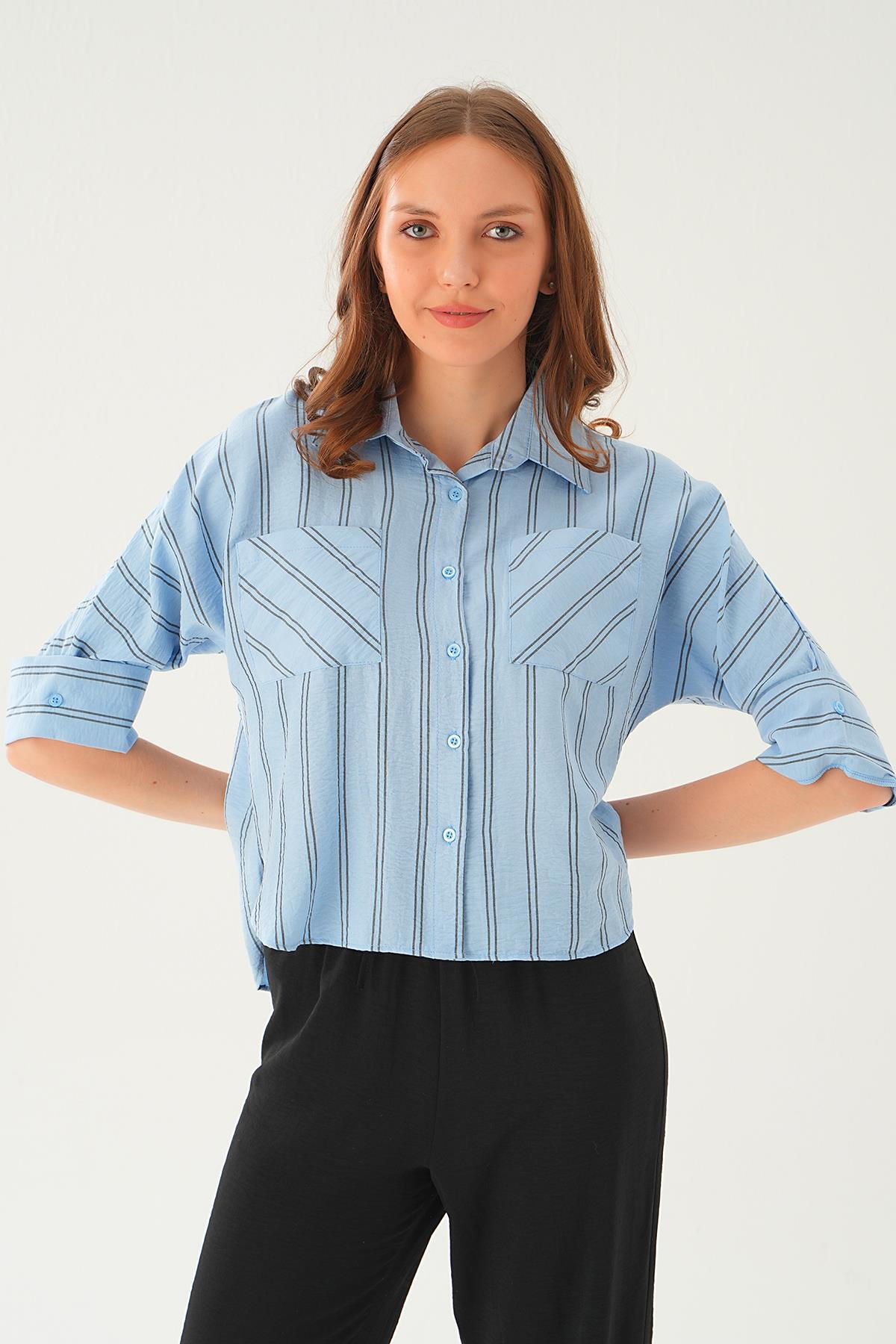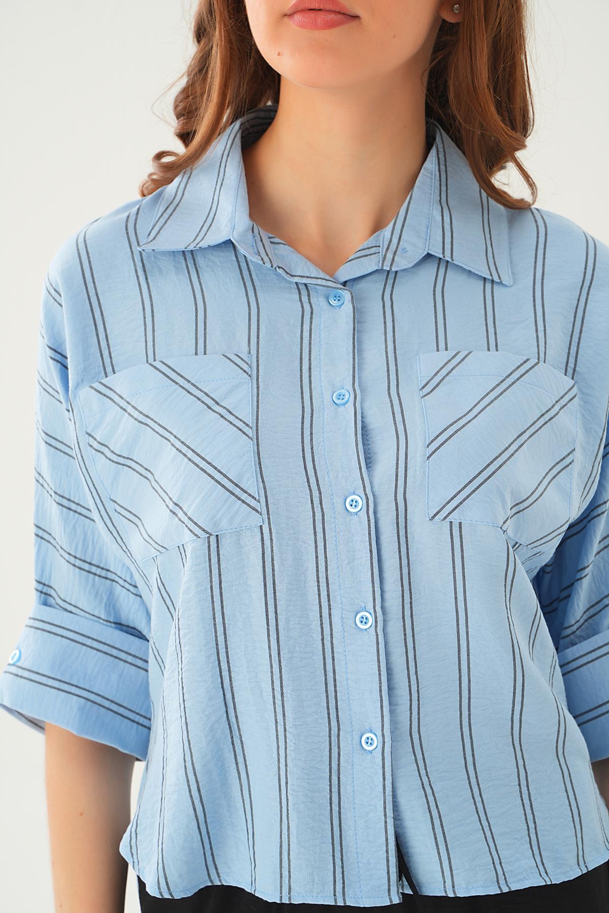 Mavi Çizgili Çift Cep Gömlek 4272A