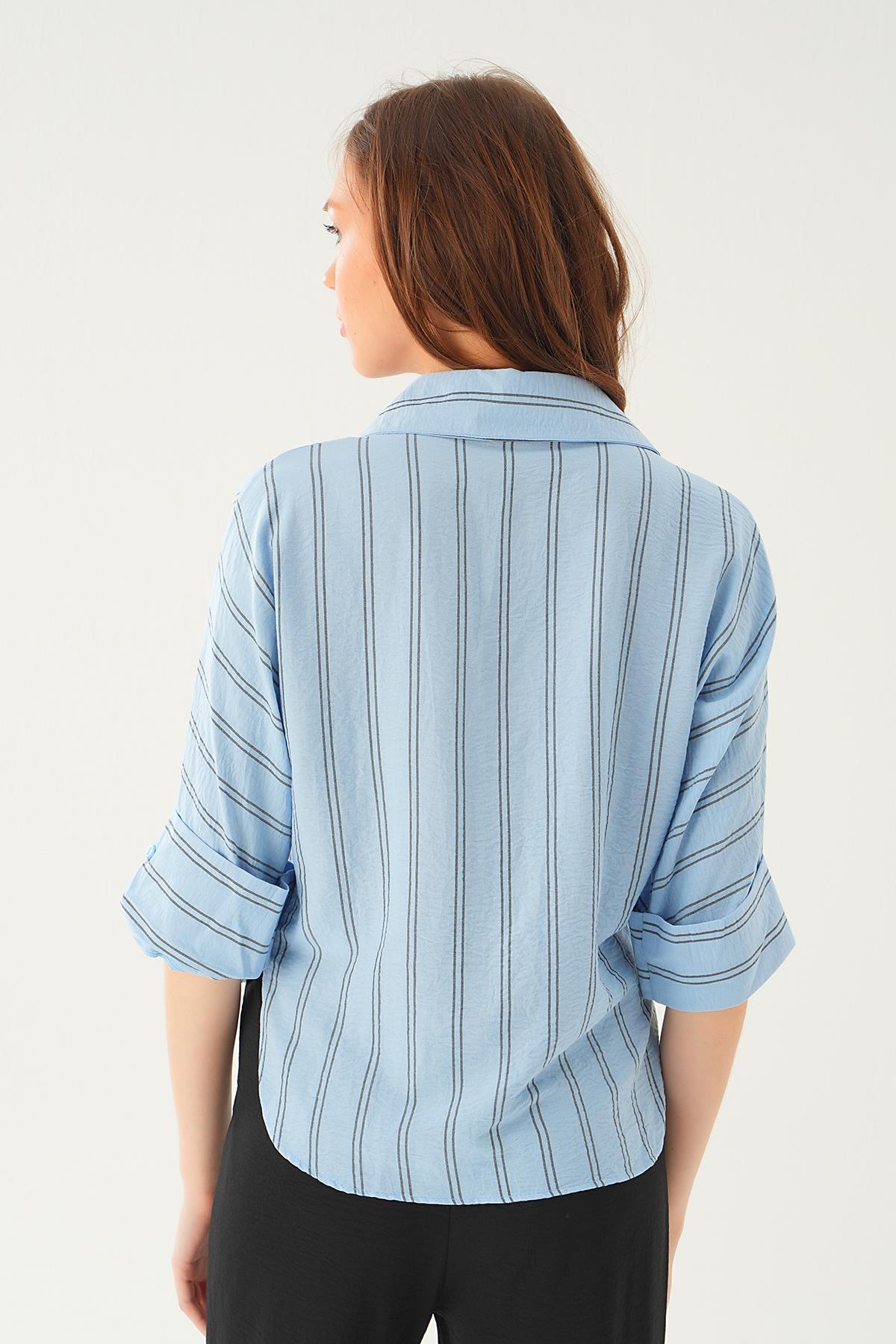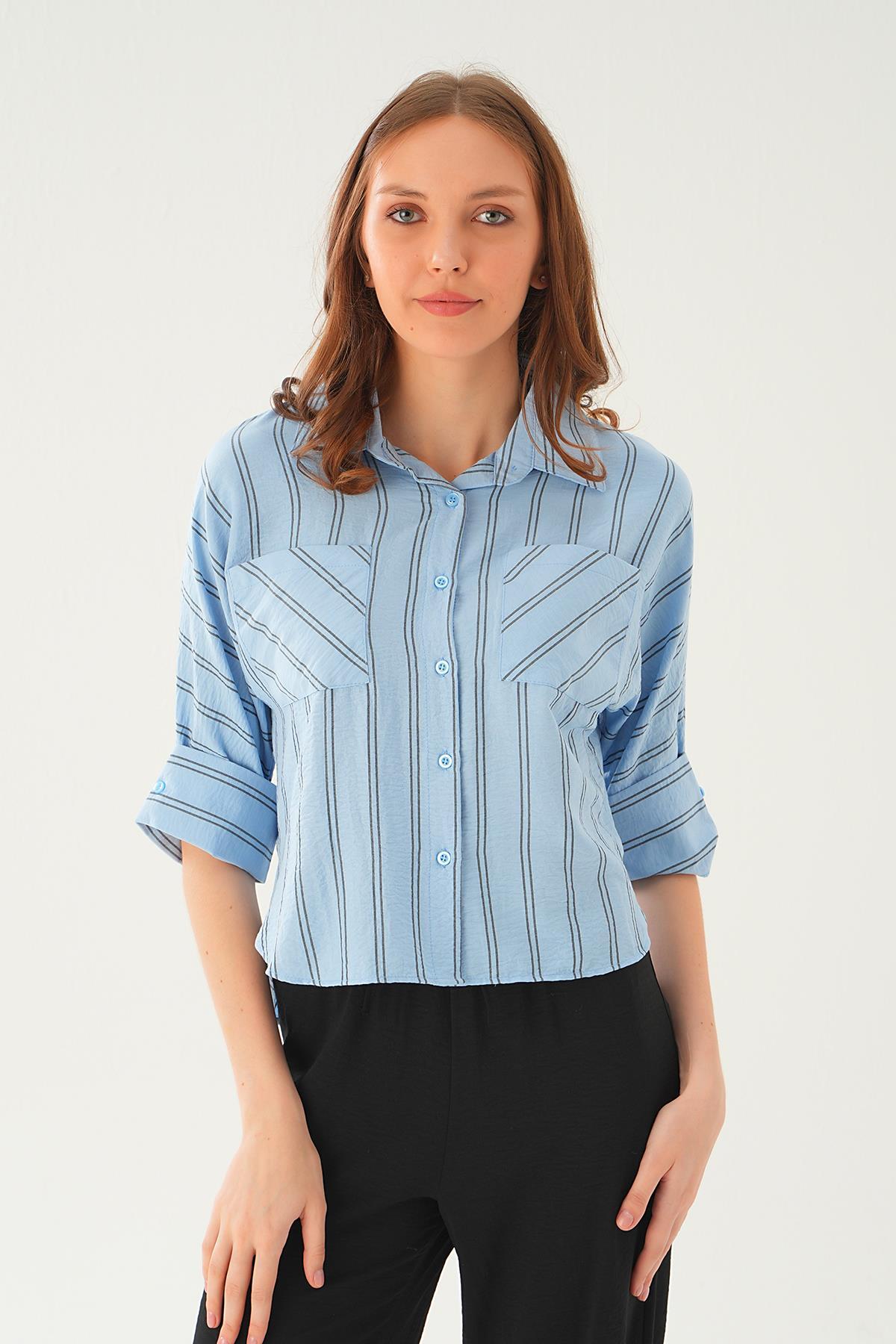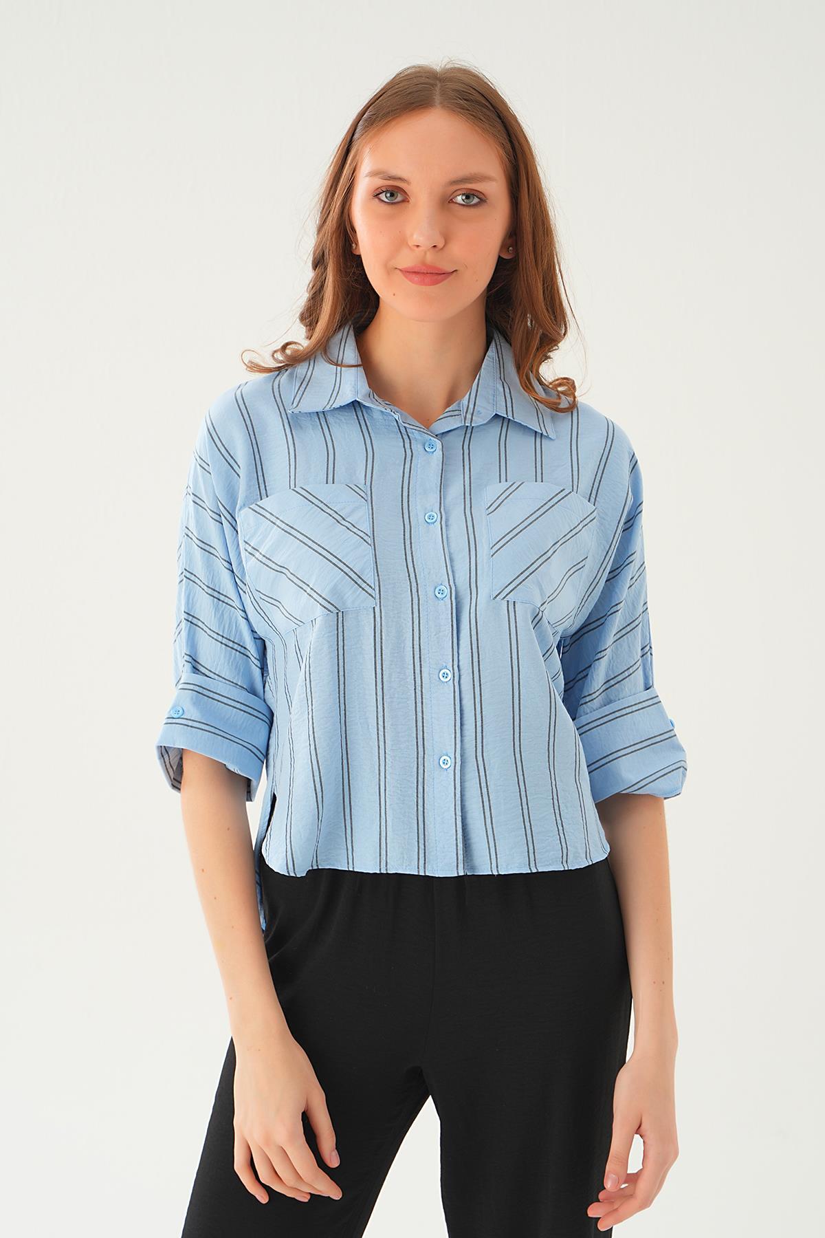 Mavi Çizgili Çift Cep Gömlek 4272A