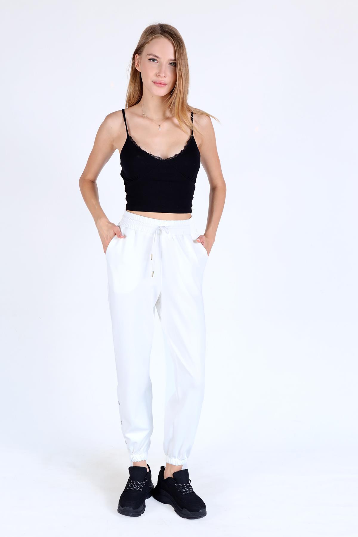 Beyaz Paça Çıtçıtlı Eşofman 4281A