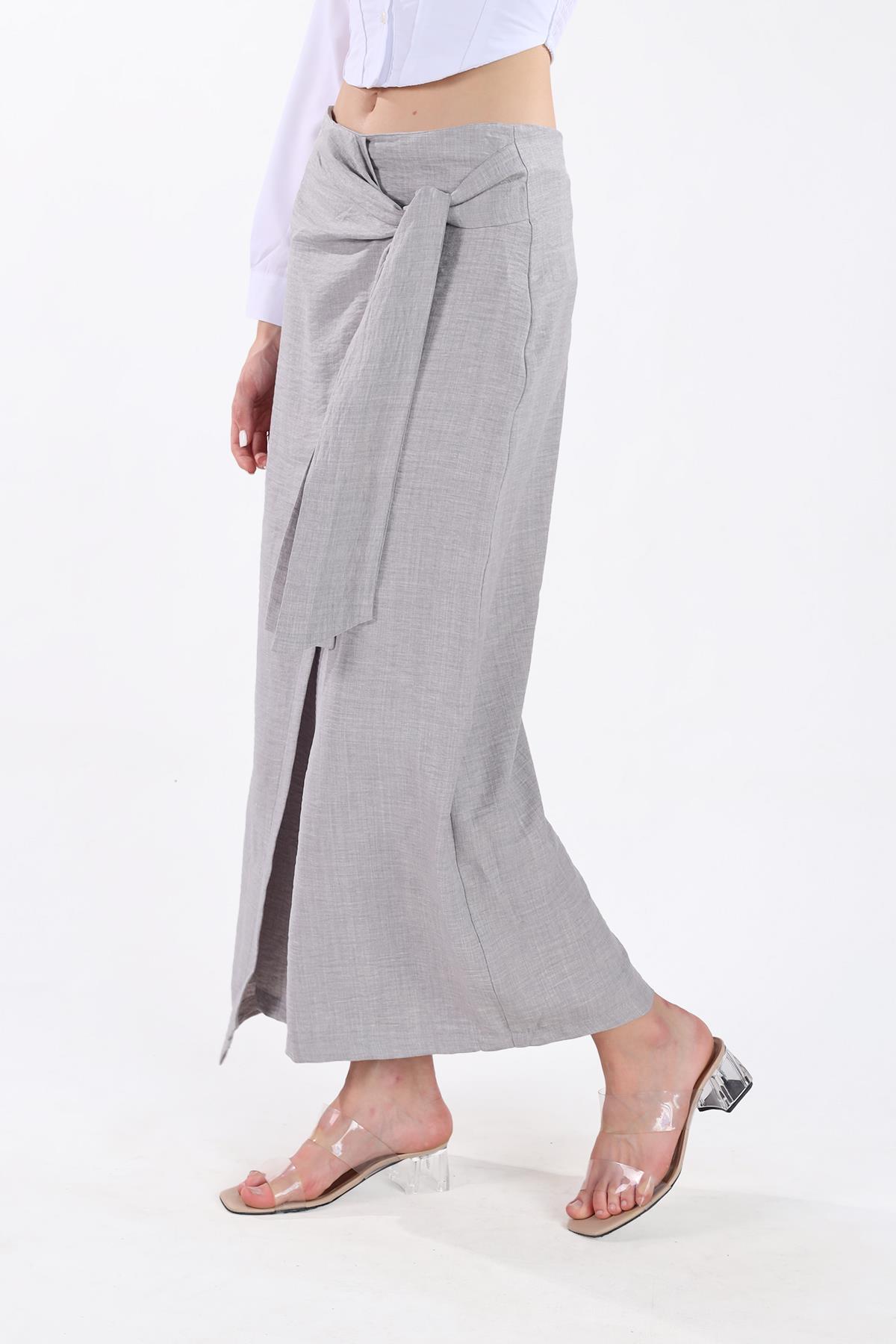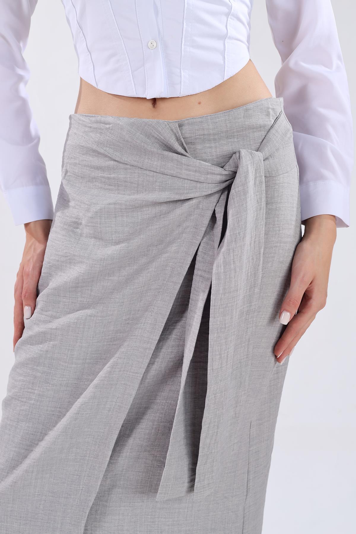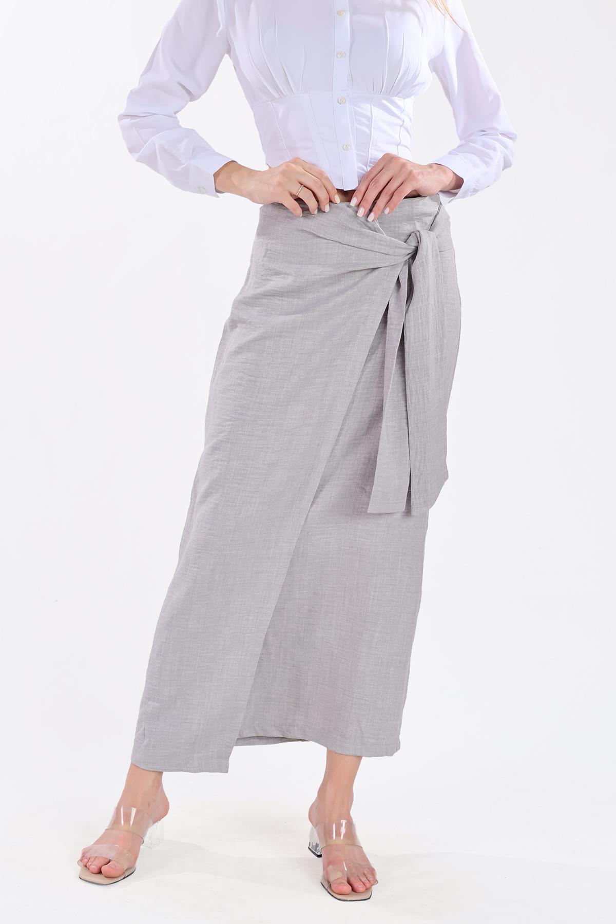 Gri Belden Bağlamalı Etek 4283A