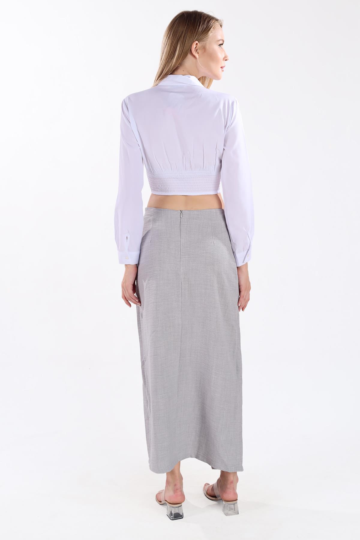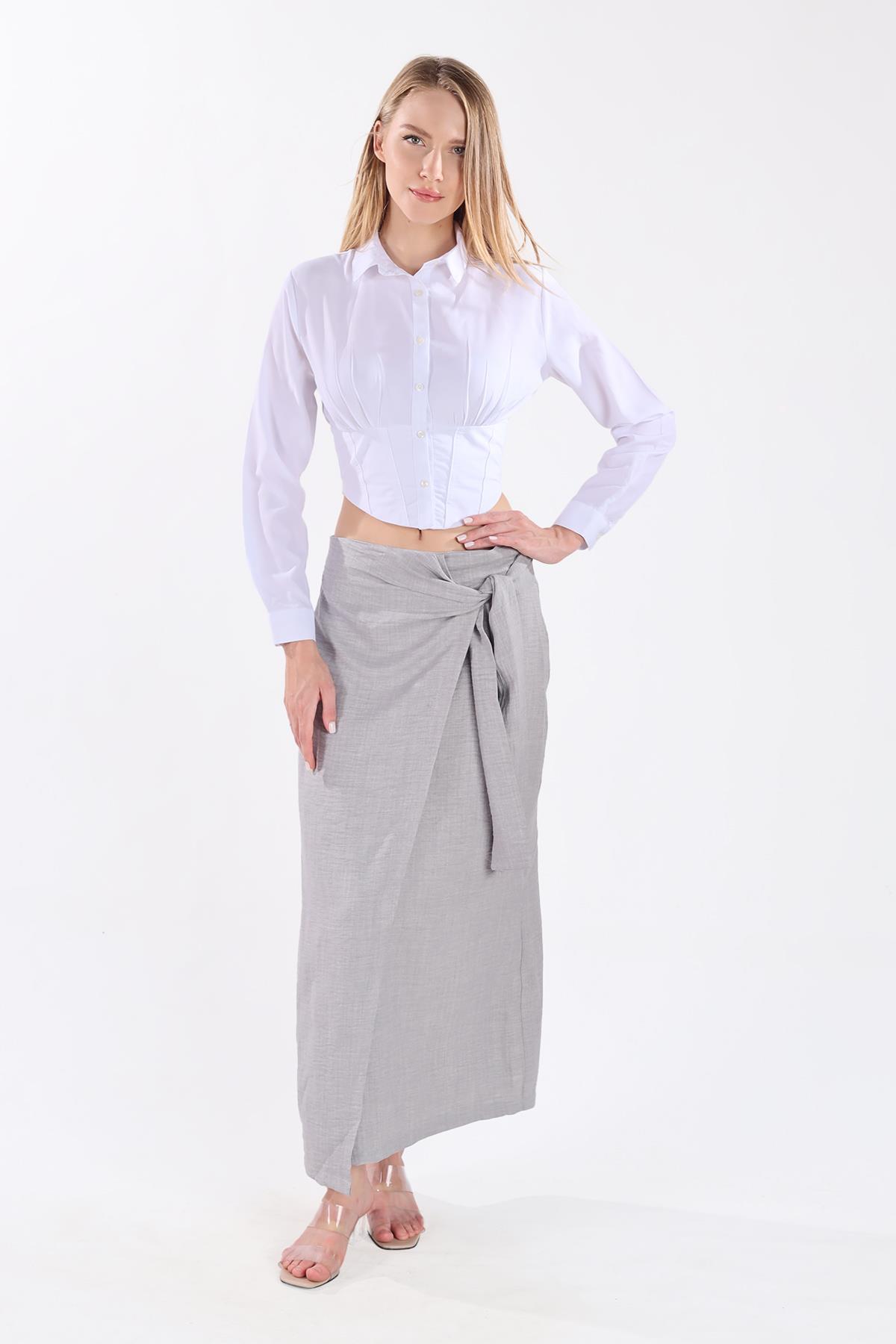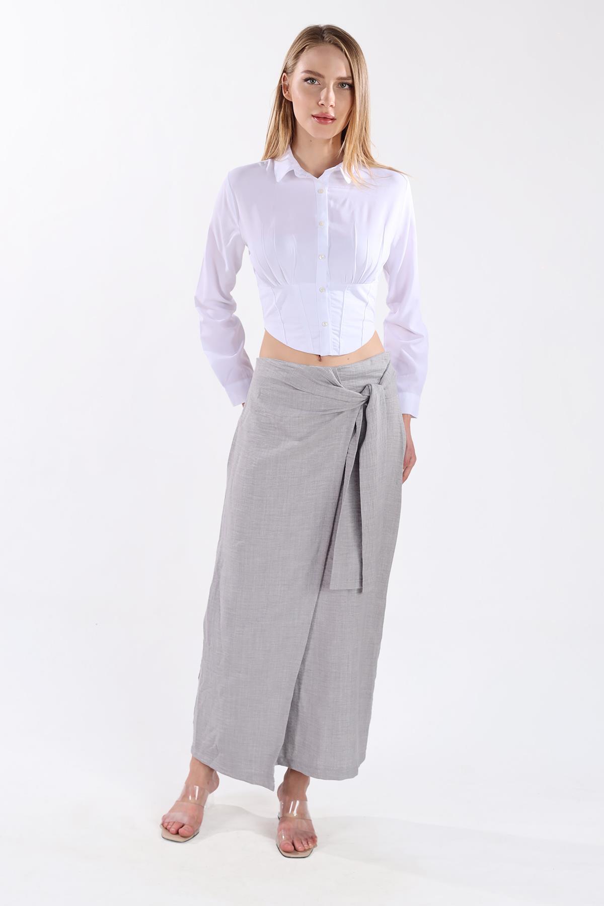Gri Belden Bağlamalı Etek 4283A
