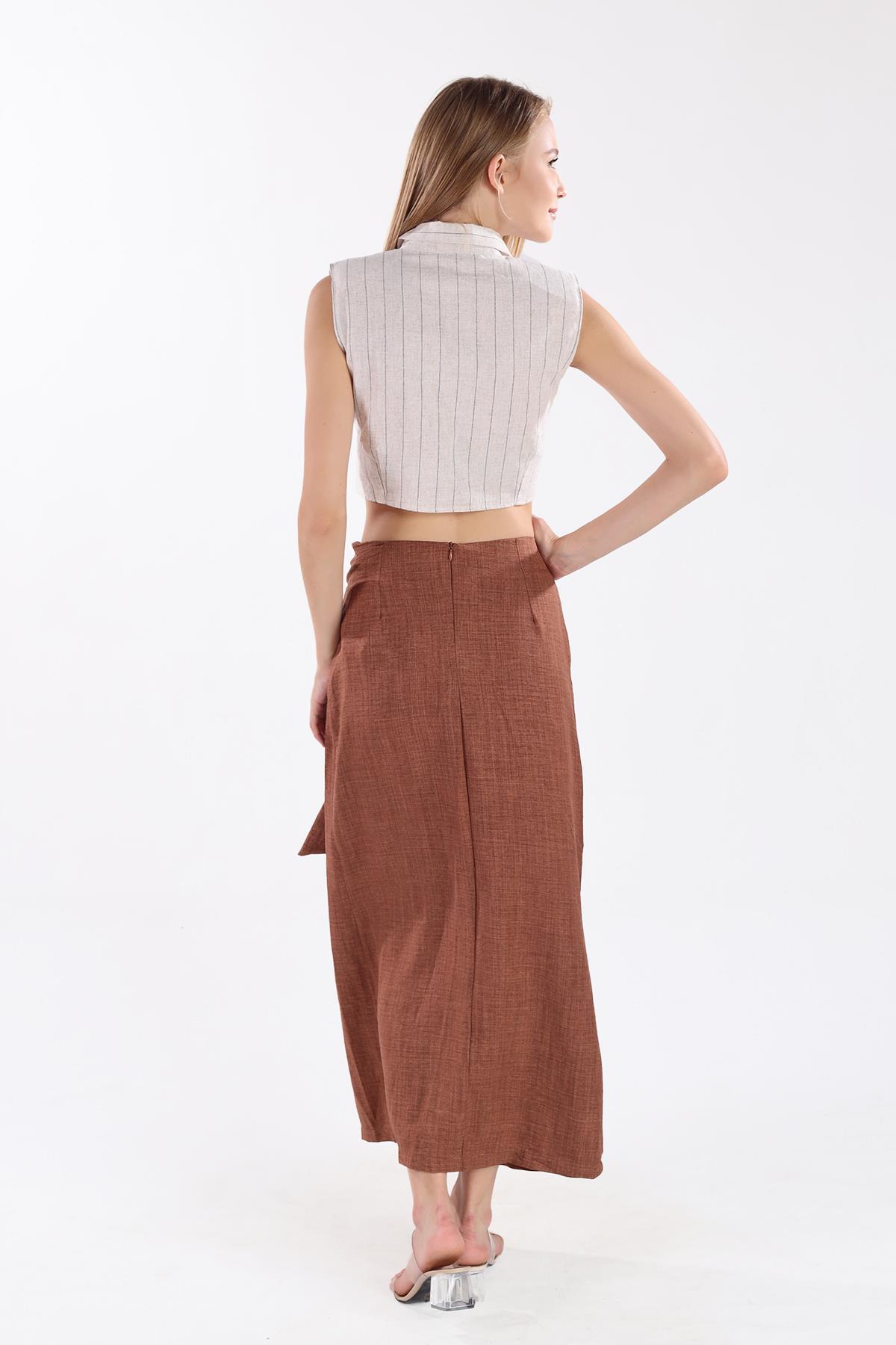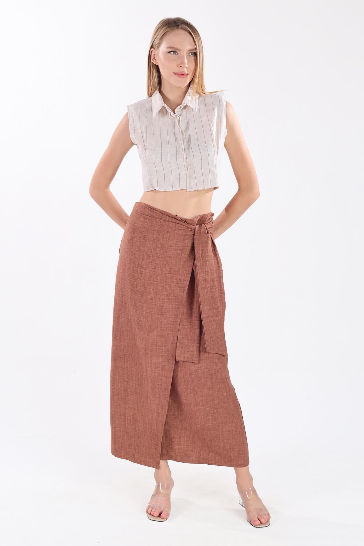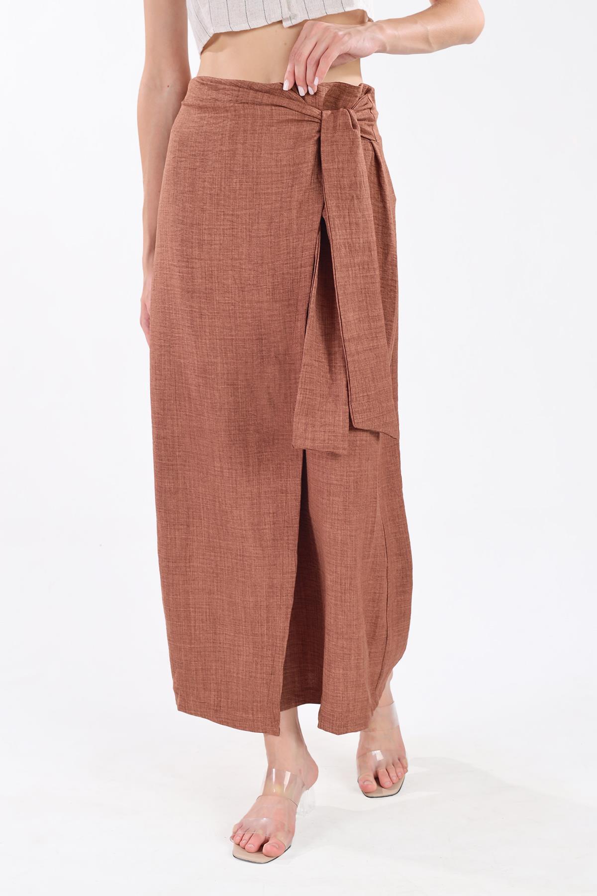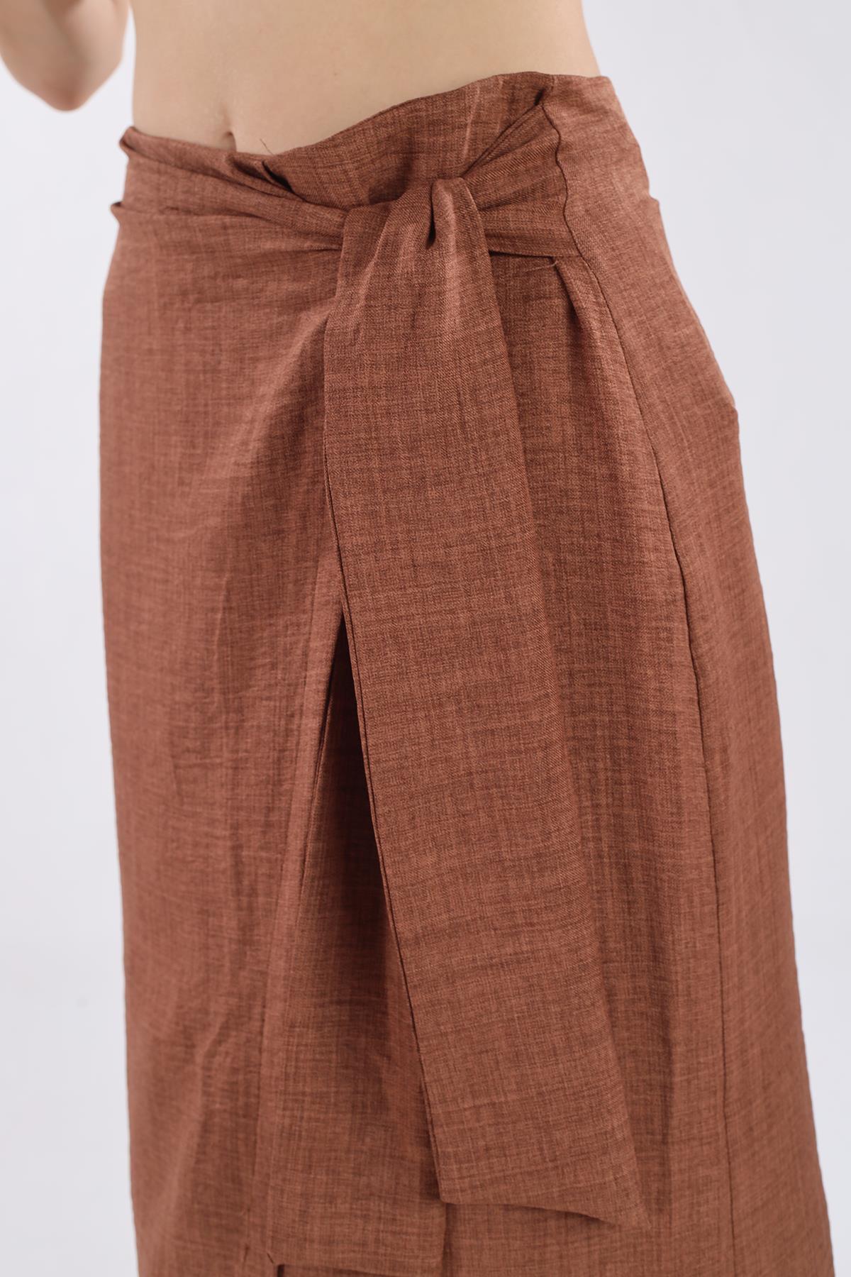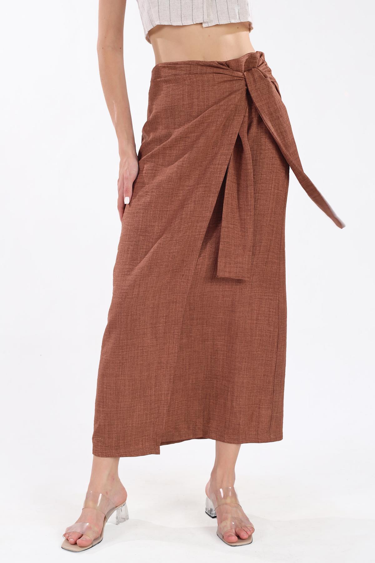 Kahve Belden Bağlamalı Etek 4283A
