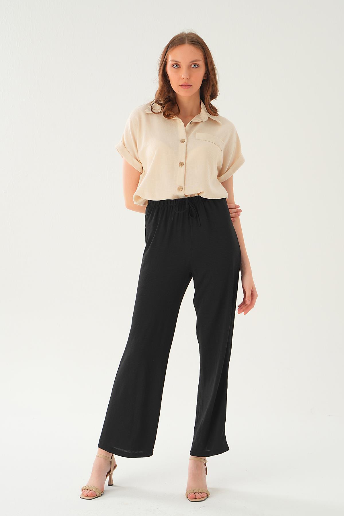Siyah Pileli Palazzo Pantolon 3871