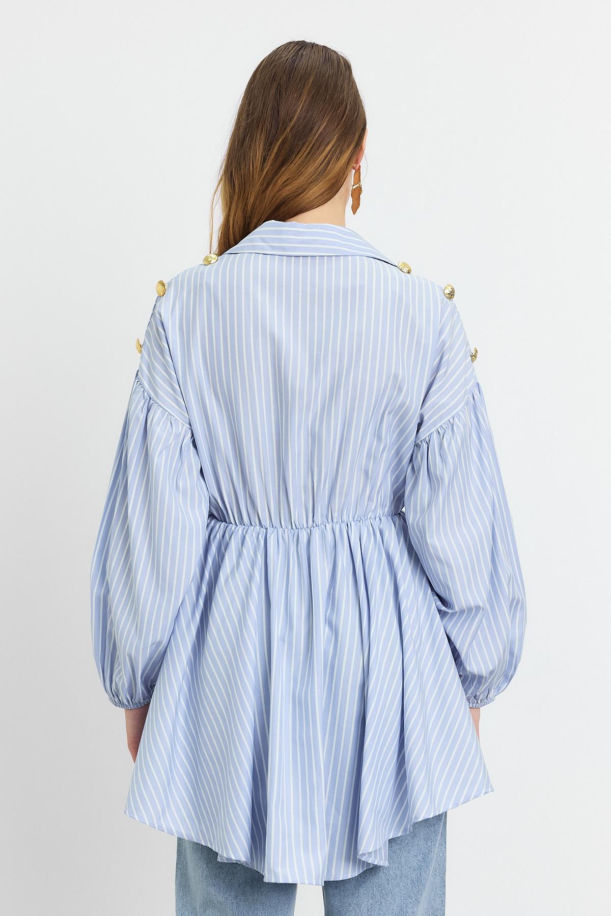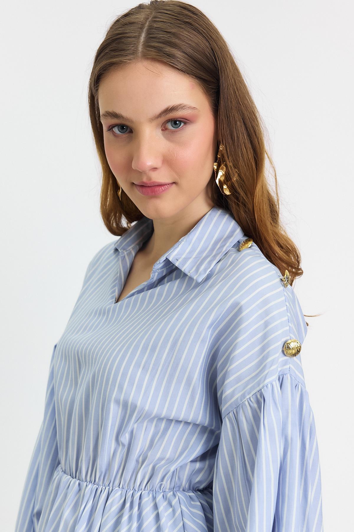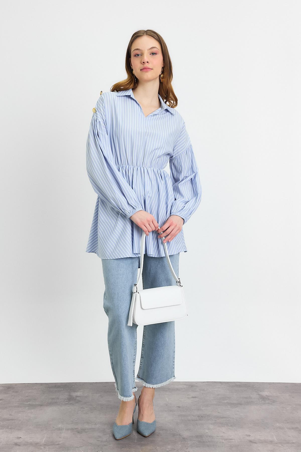 Mavi Çizgili Bel Büzgülü Tunik 4291A