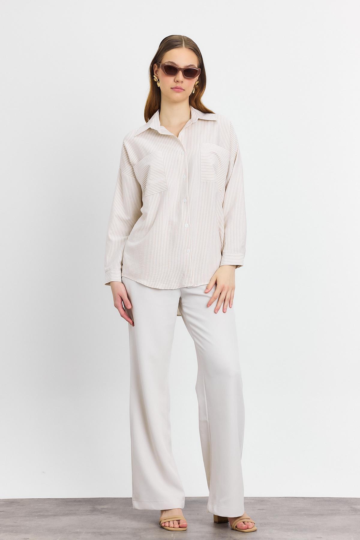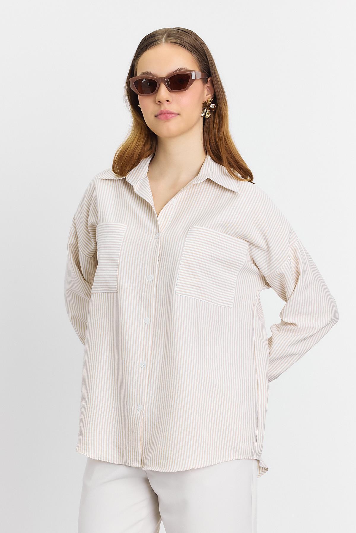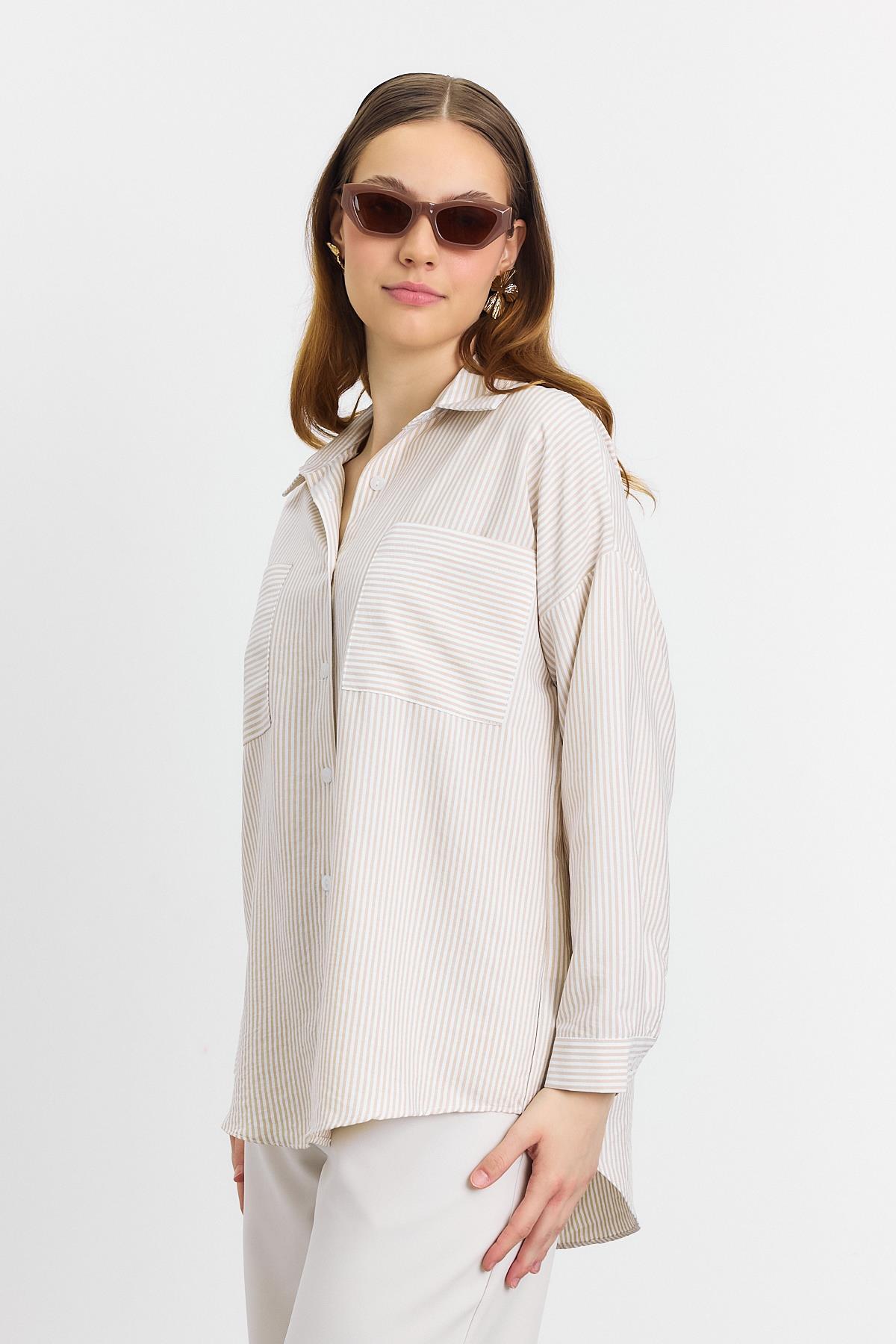 Vizon Çizgili Salaş Gömlek 5475 - RAYS Vizon Çizgili Salaş Gömlek 5475 - RAYS (1)