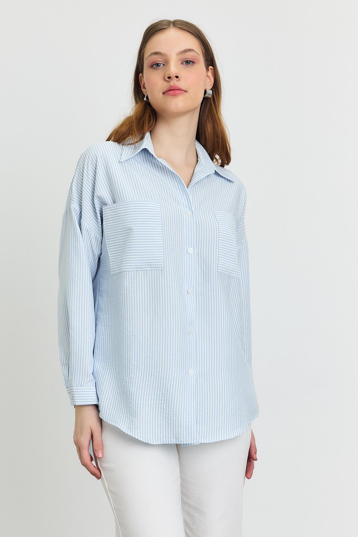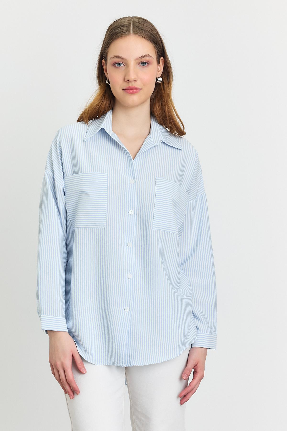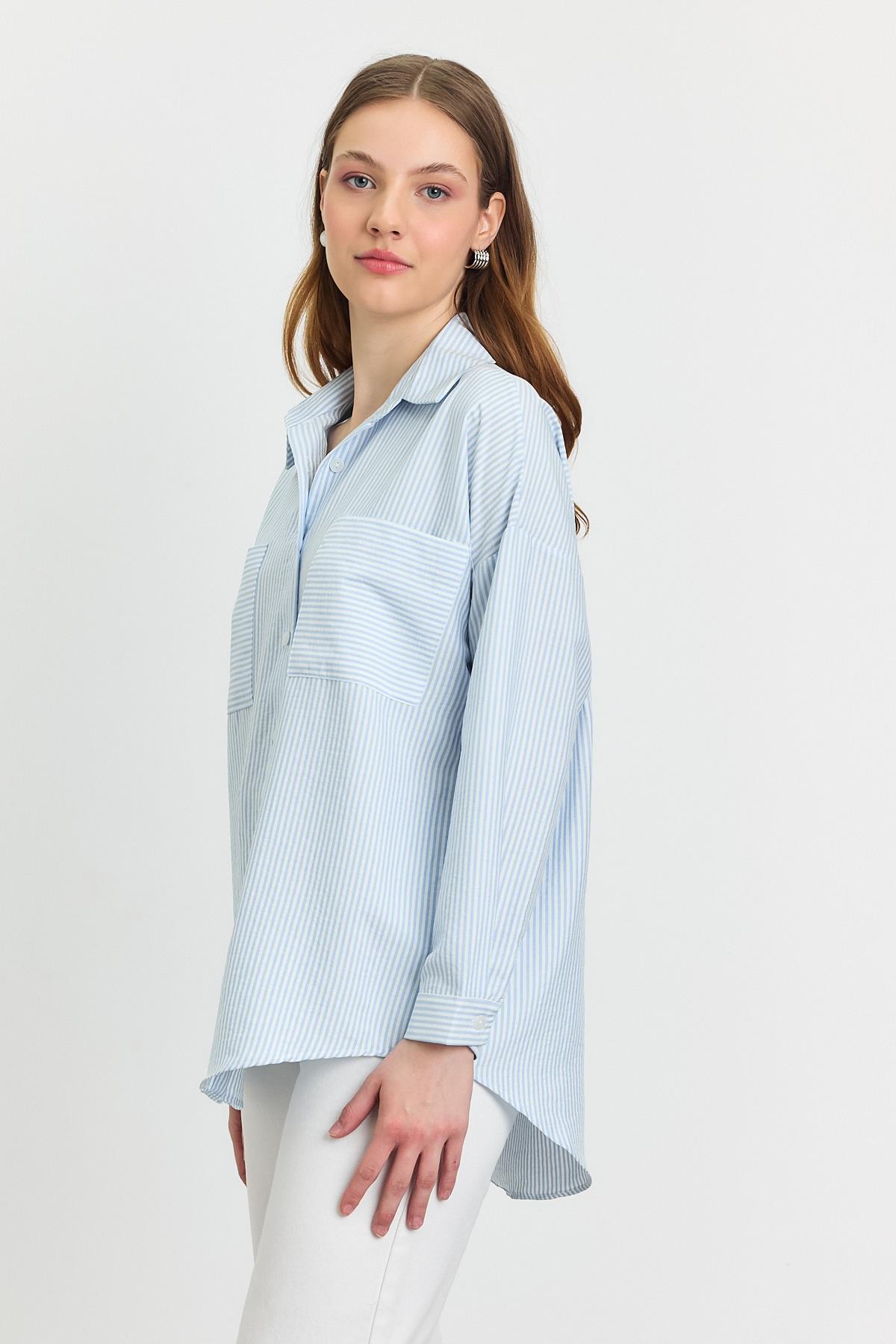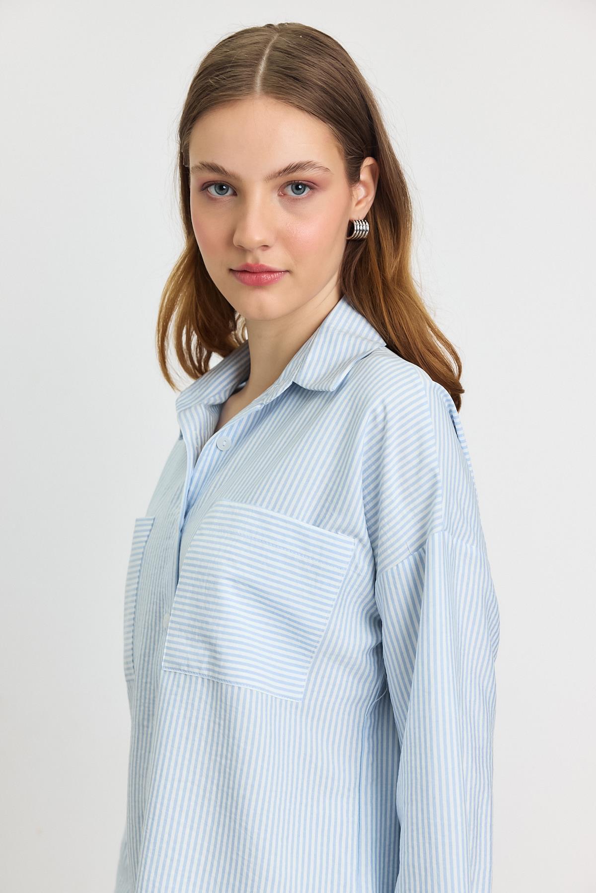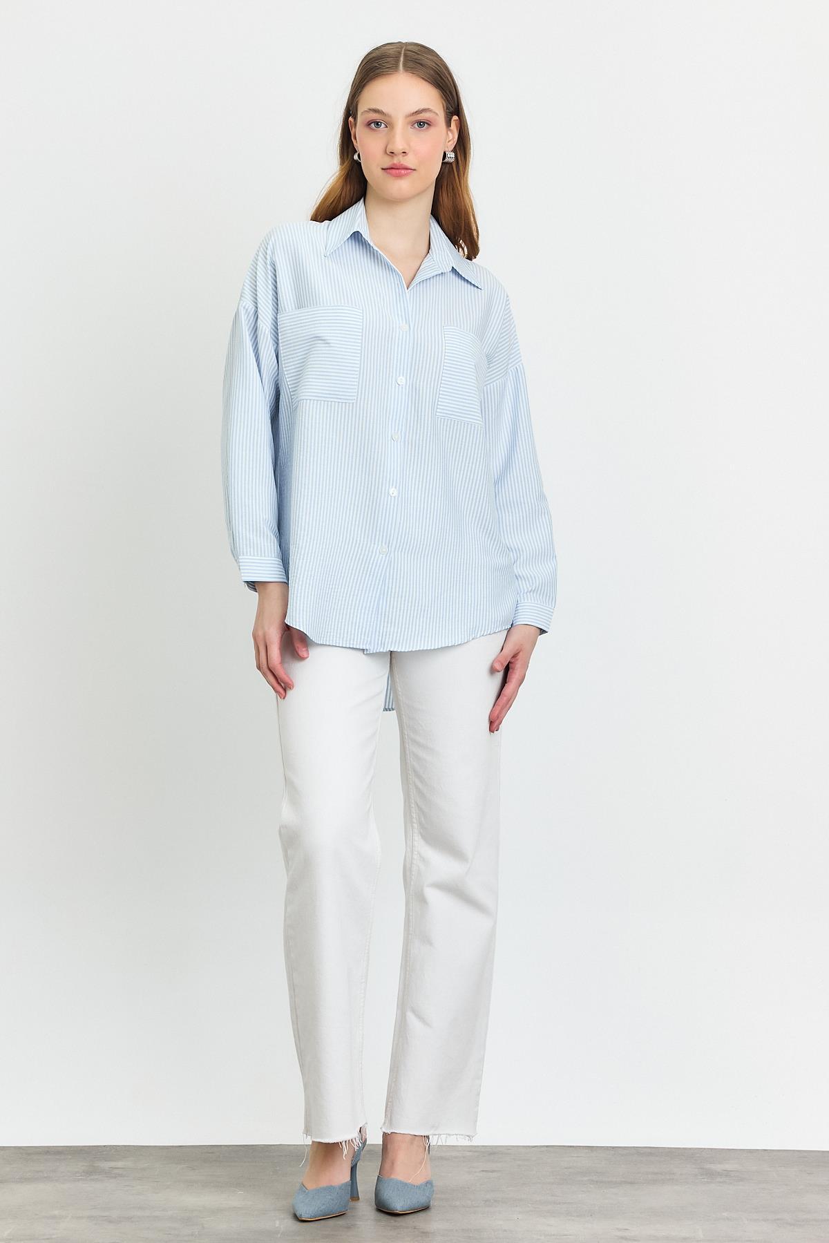 Mavi Çizgili Oversize Gömlek 5460 - RAYS Mavi Çizgili Oversize Gömlek 5460 - RAYS (1)