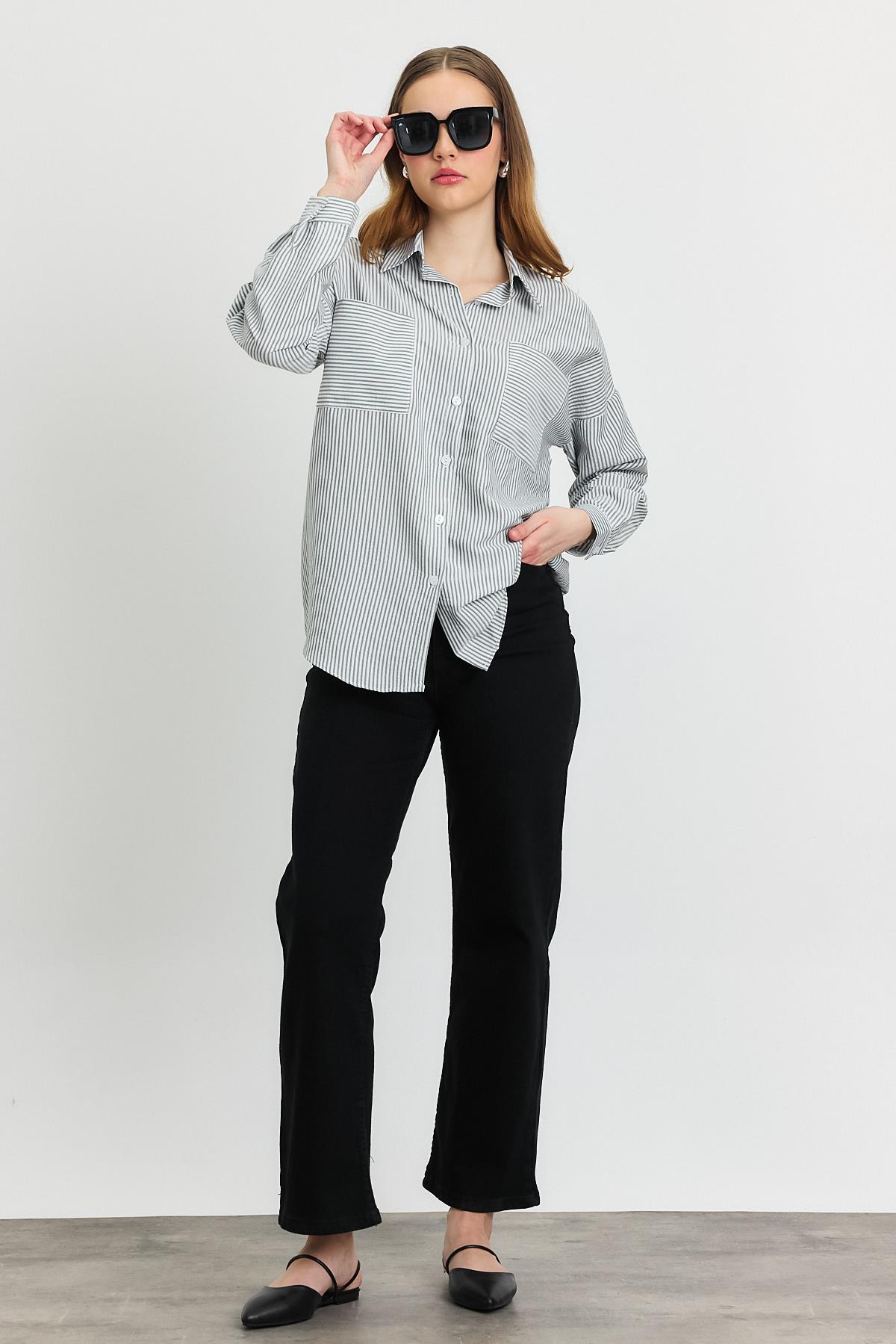 Siyah Çizgili Salaş Gömlek 5475