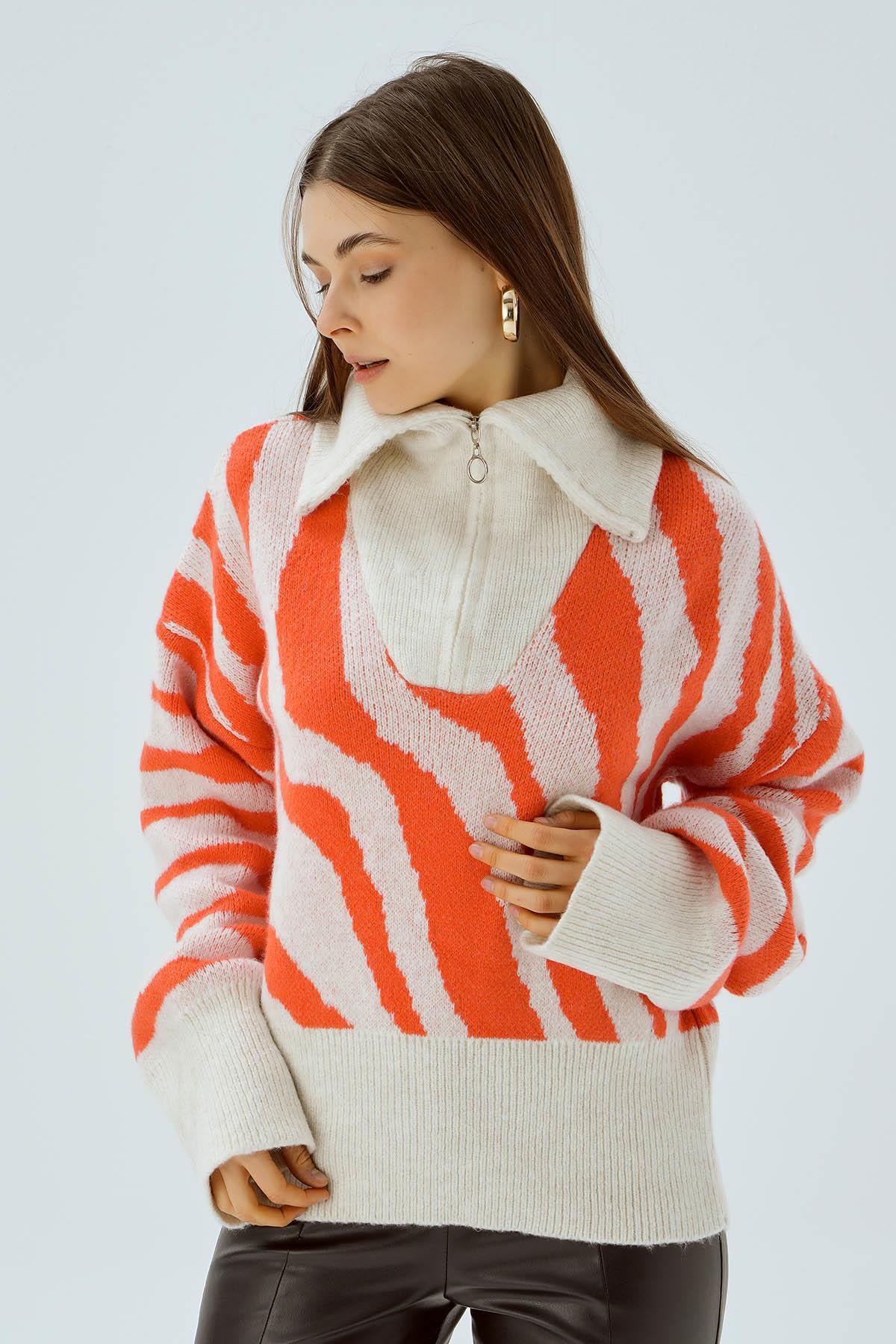 4295 Fermuarlı Örgü Kazak Kemik