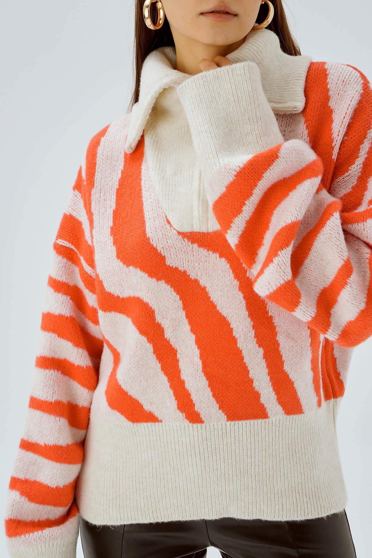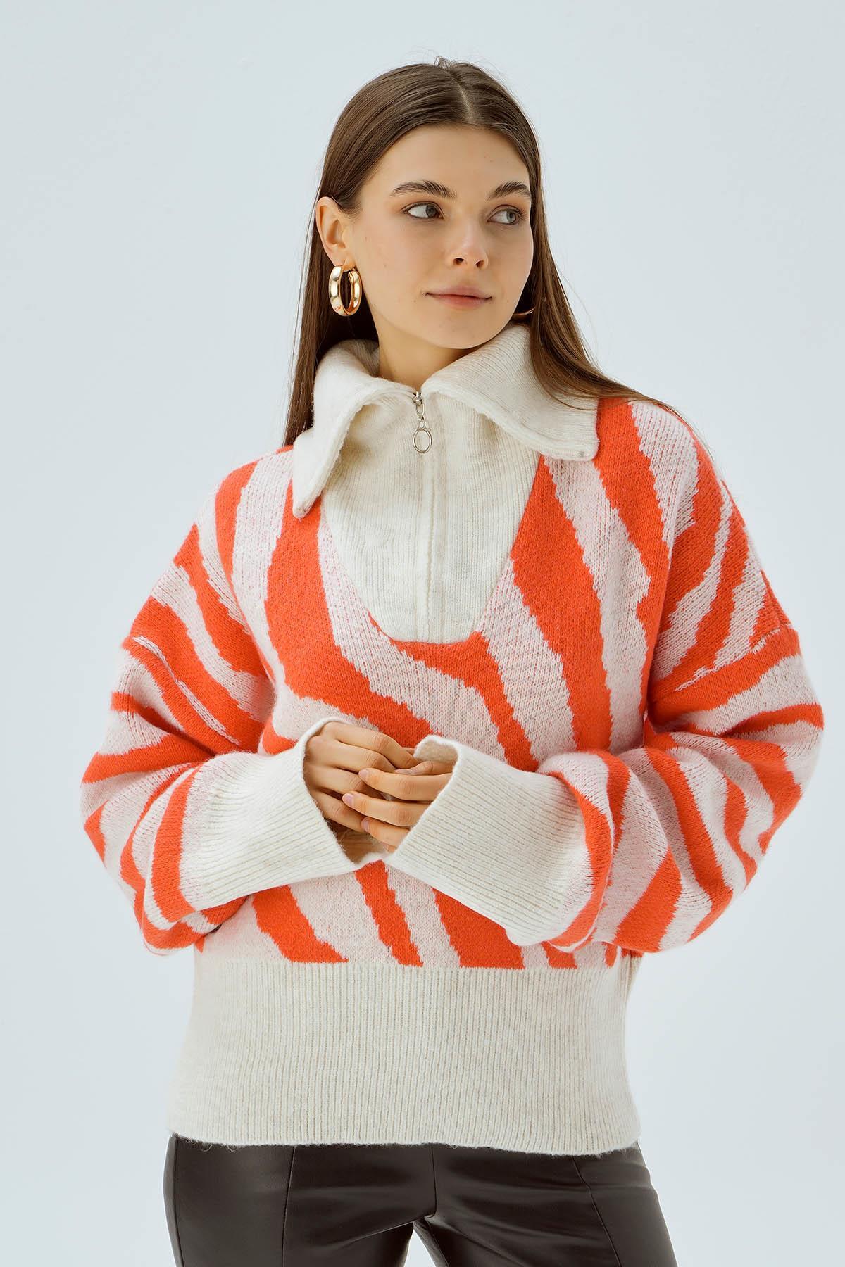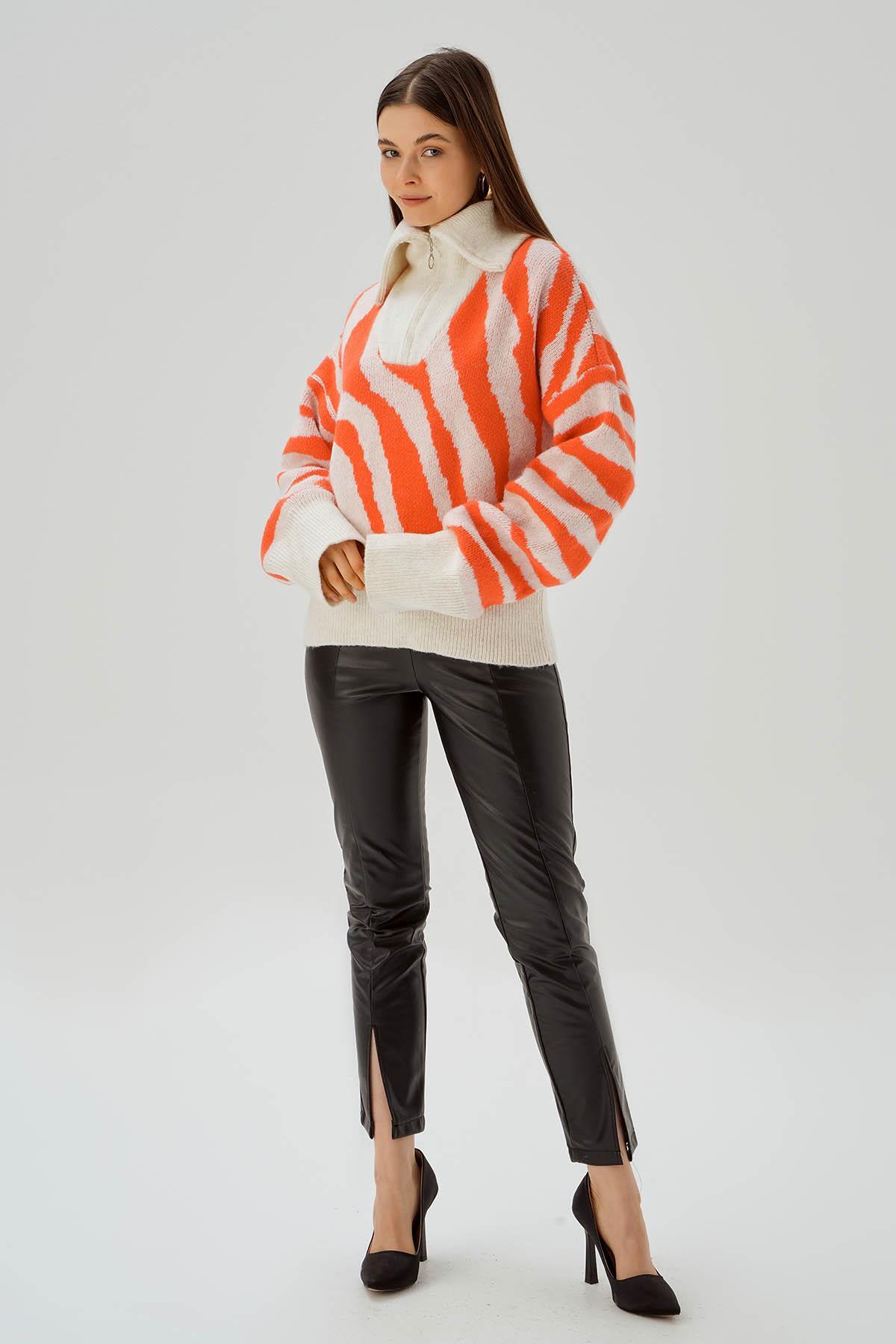 Kemik Fermuarlı Örgü Kazak 4295