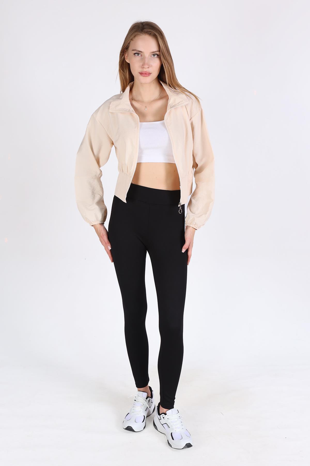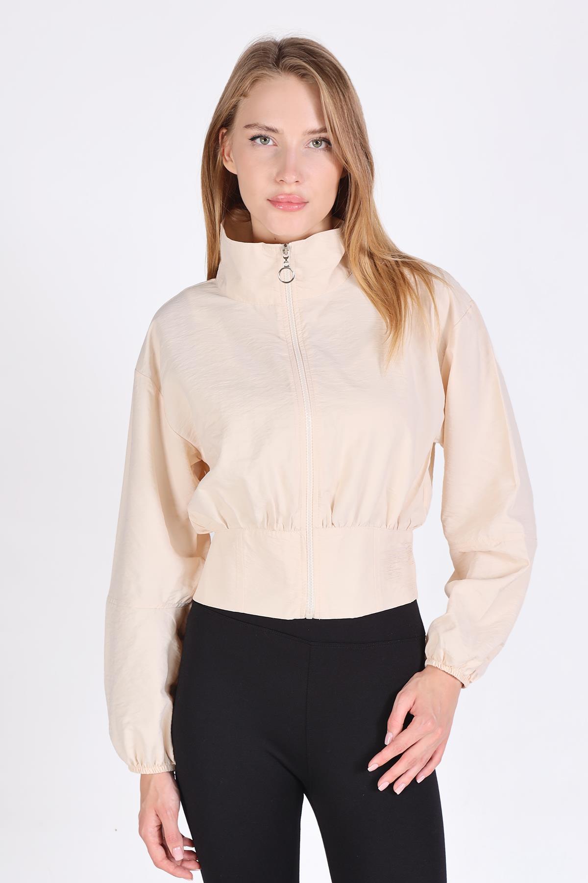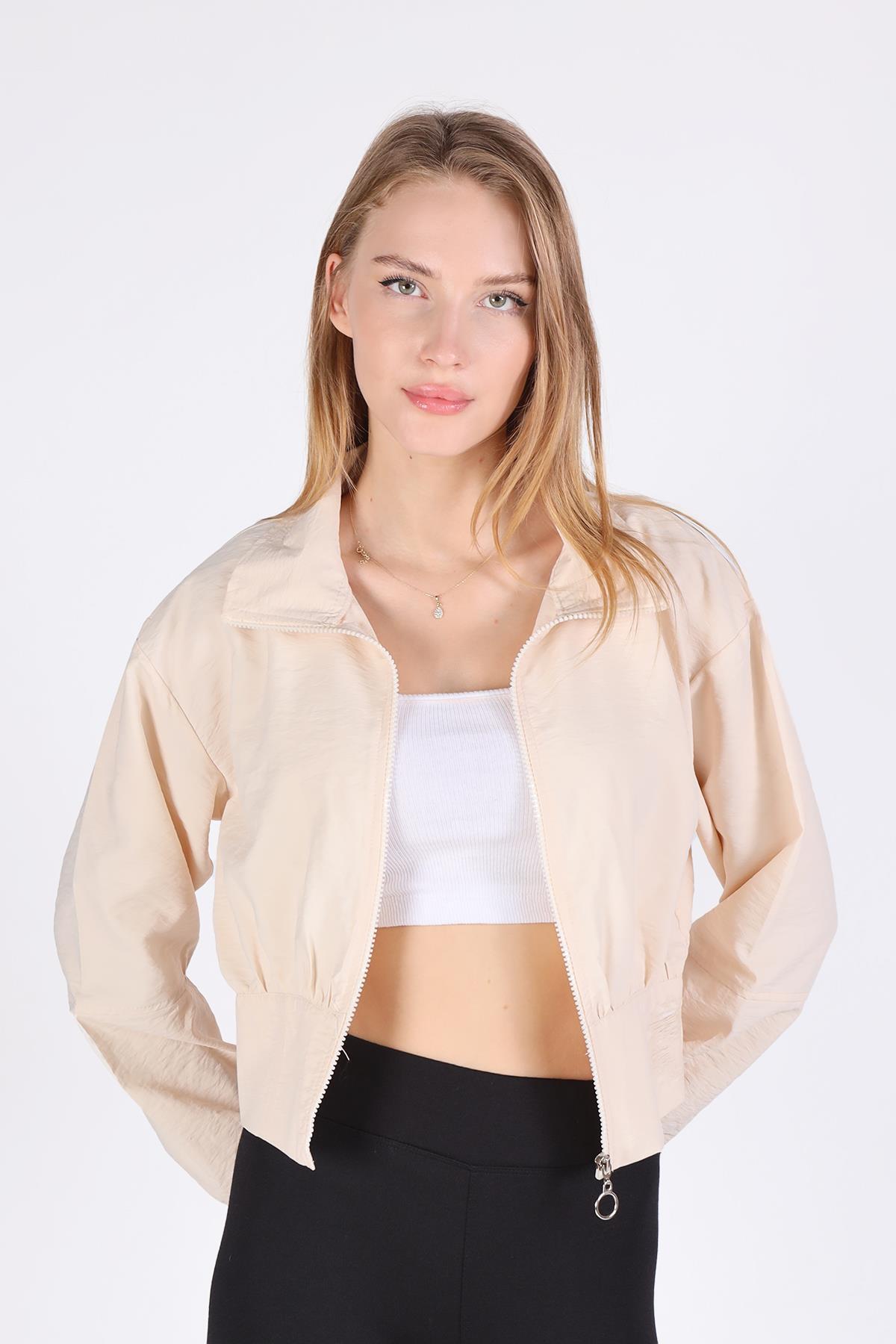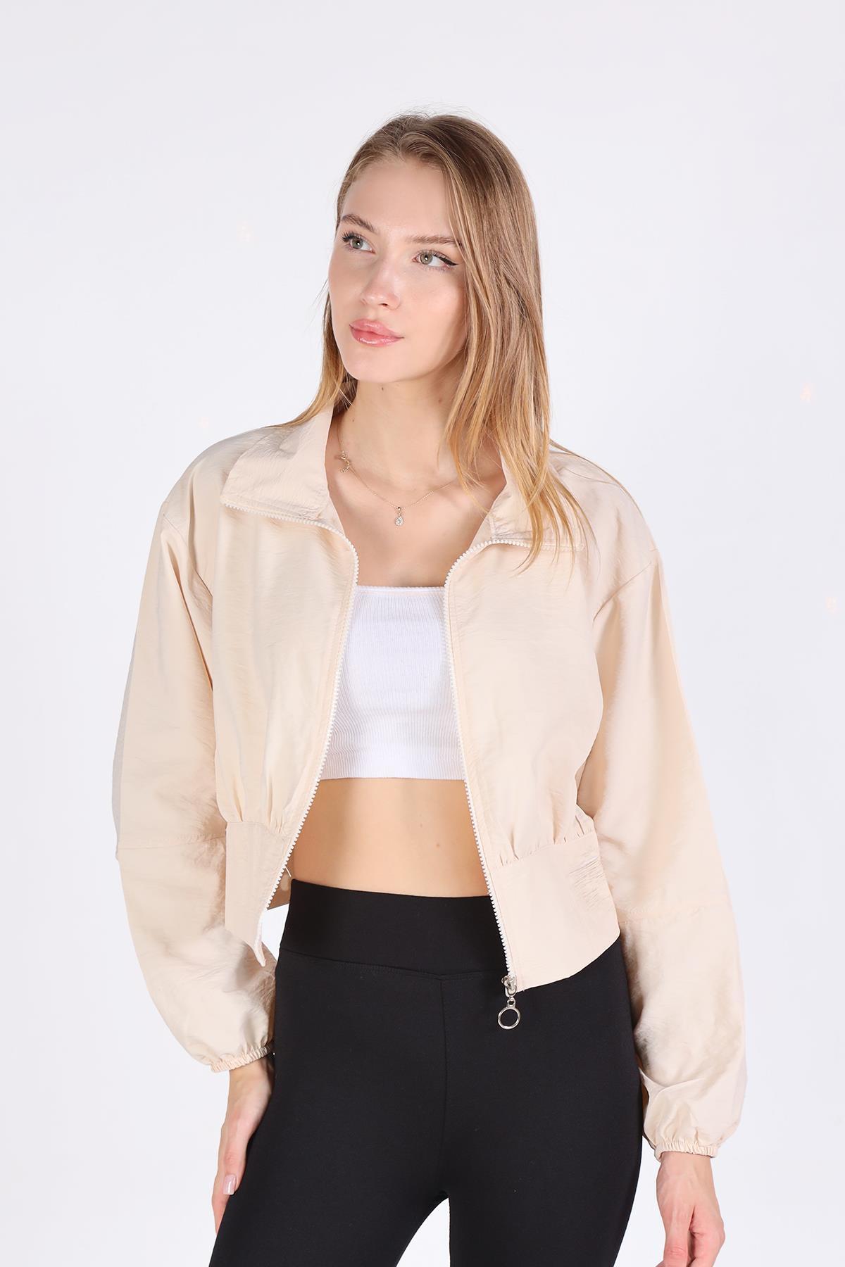 4296A Önü Fermuarlı Kısa Ceket Taş