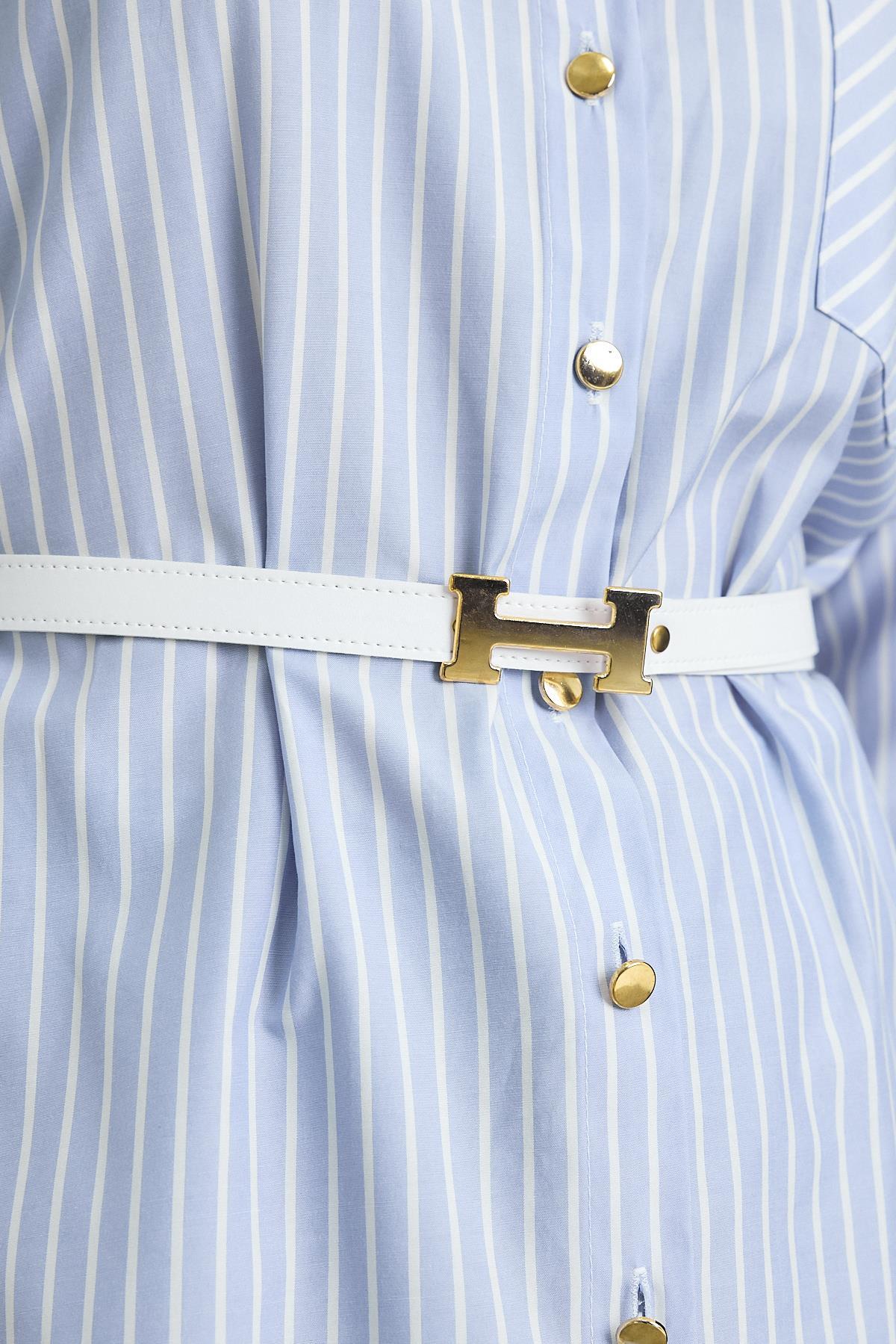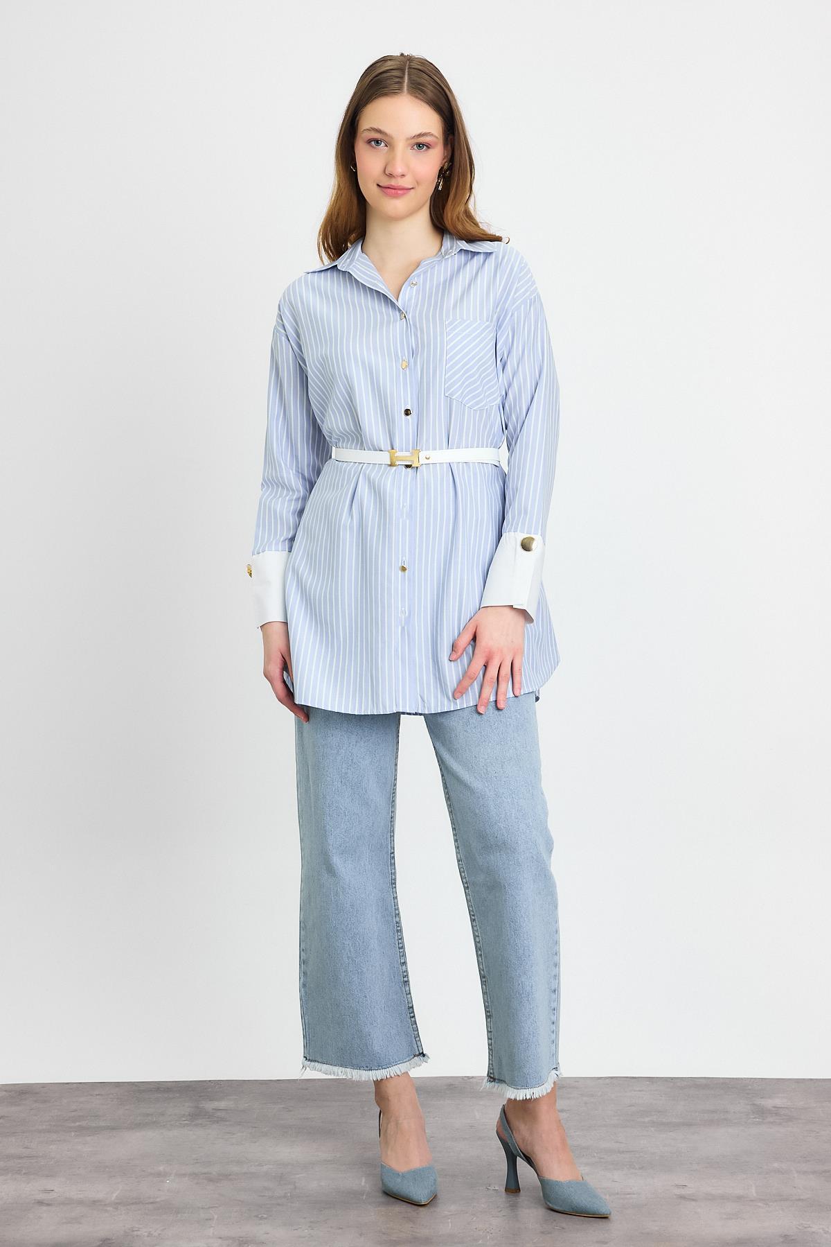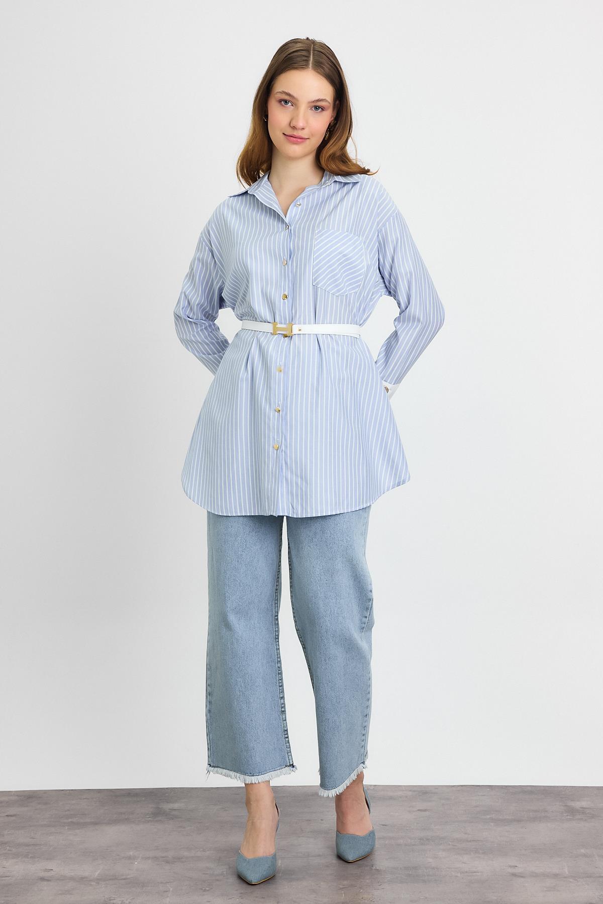 4298A Çizgili Kemerli Tunik Mavi