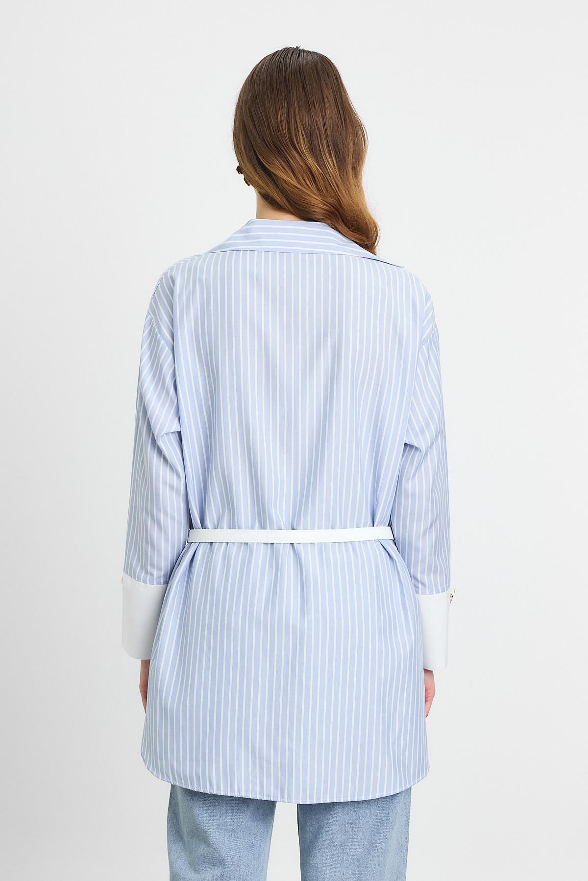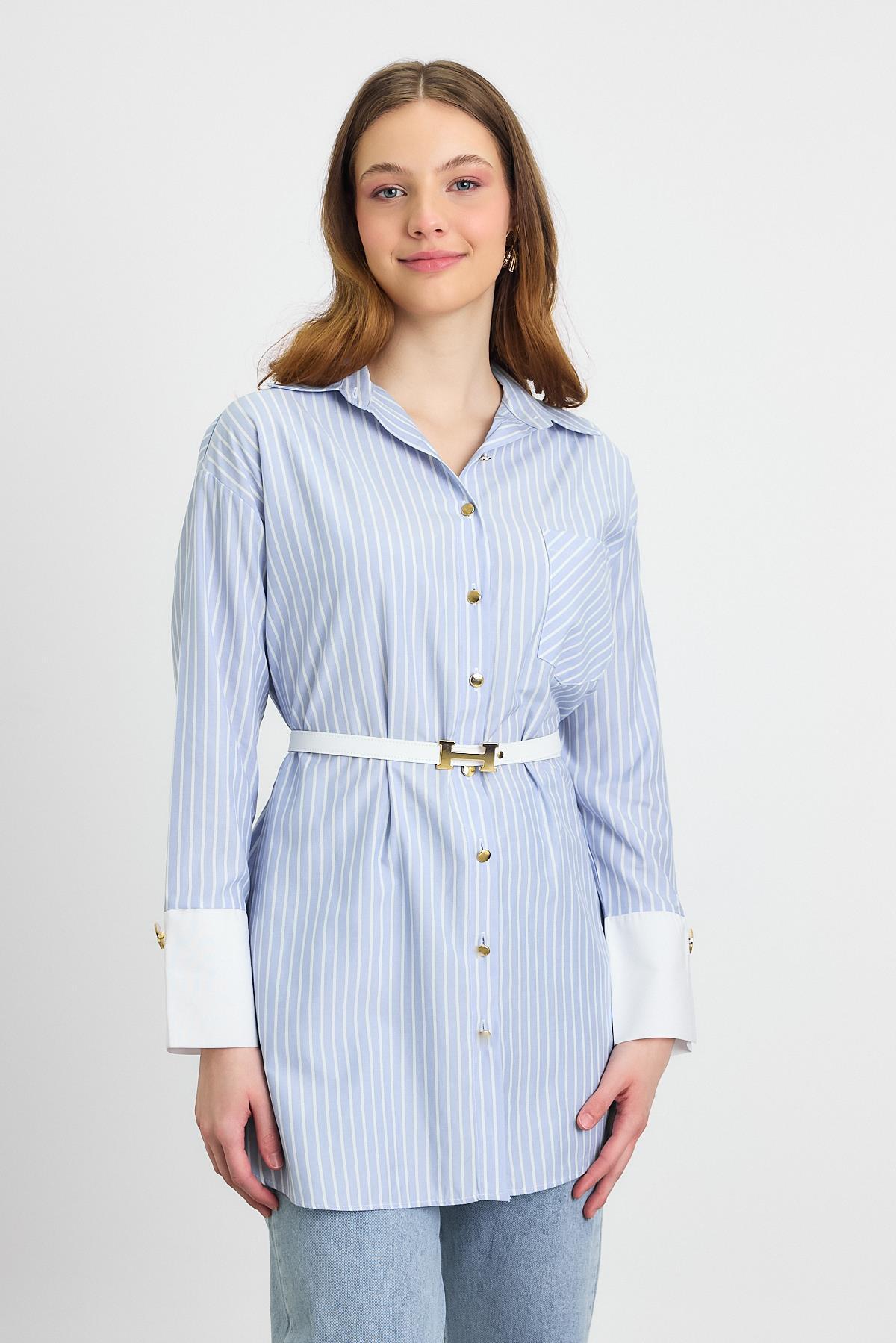 Mavi Çizgili Kemerli Tunik 4298A