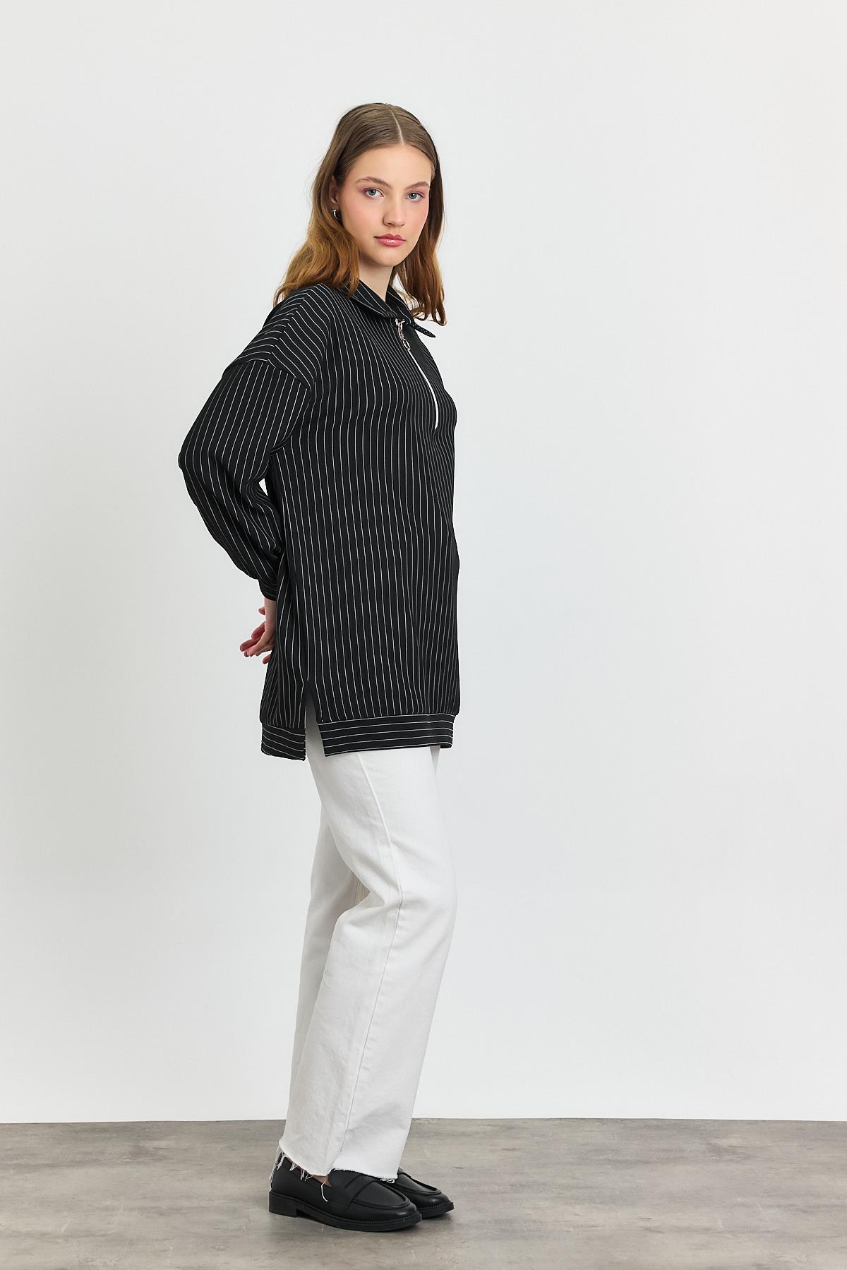 4302A Yarım Fermuarlı Tunik Siyah