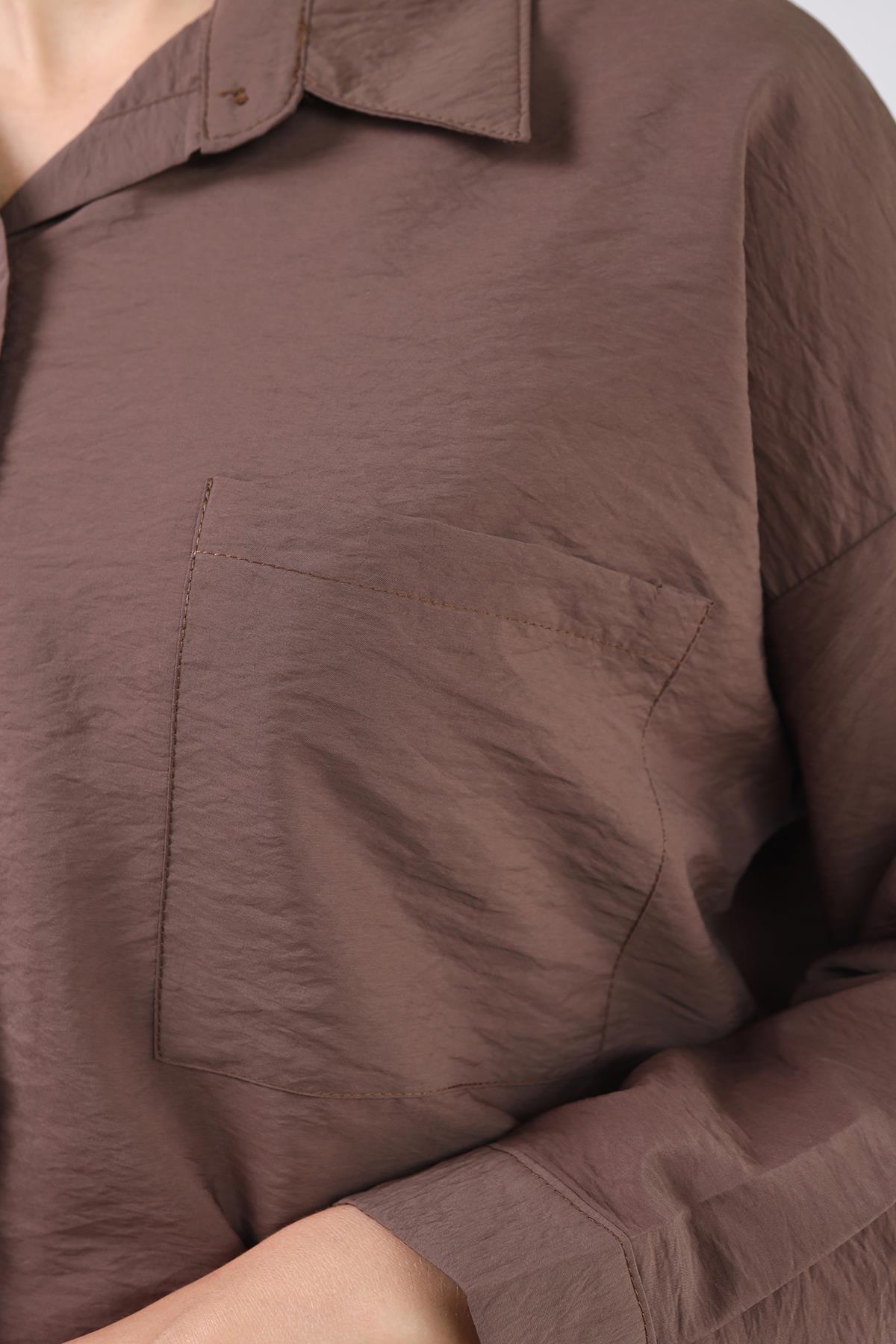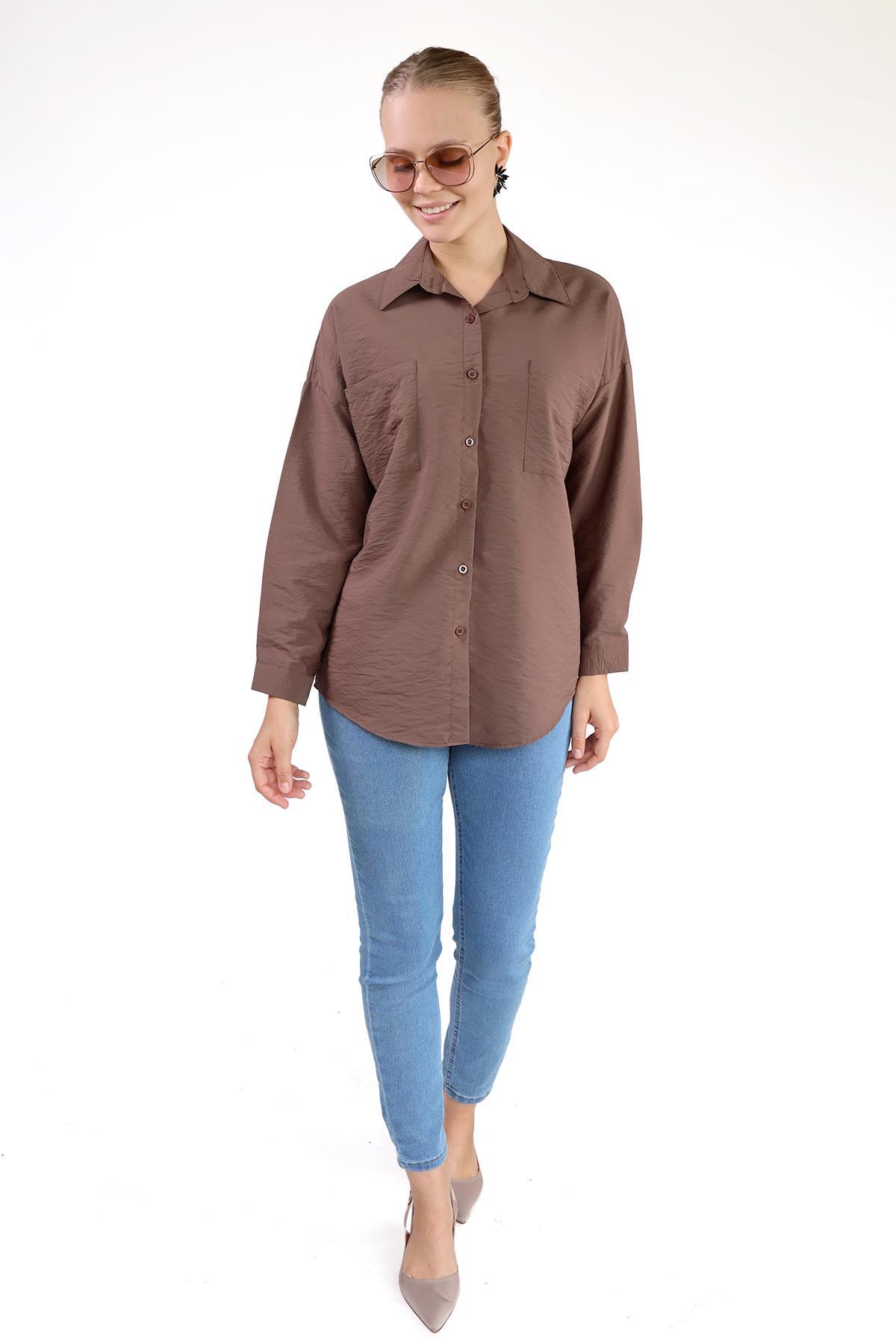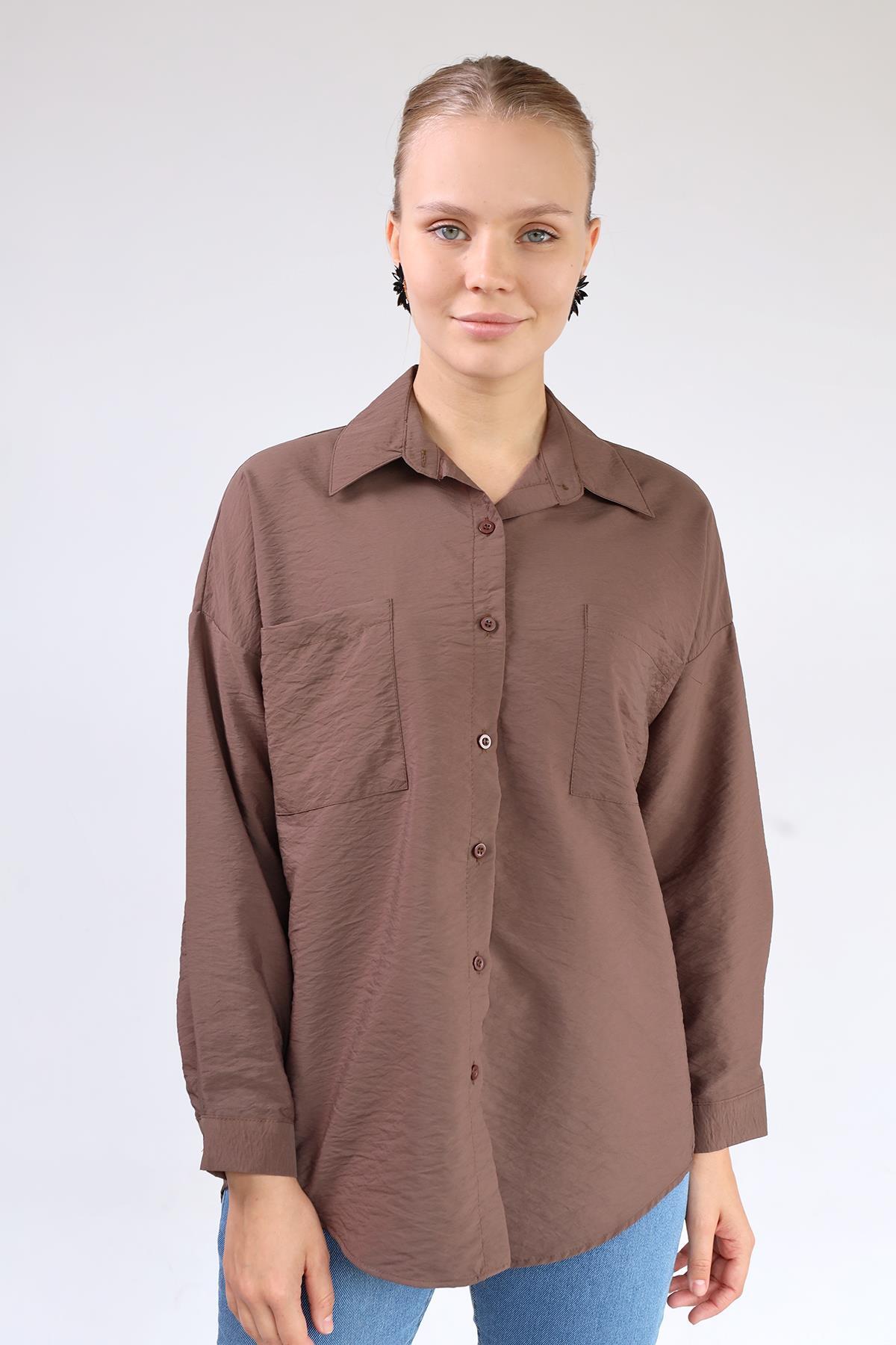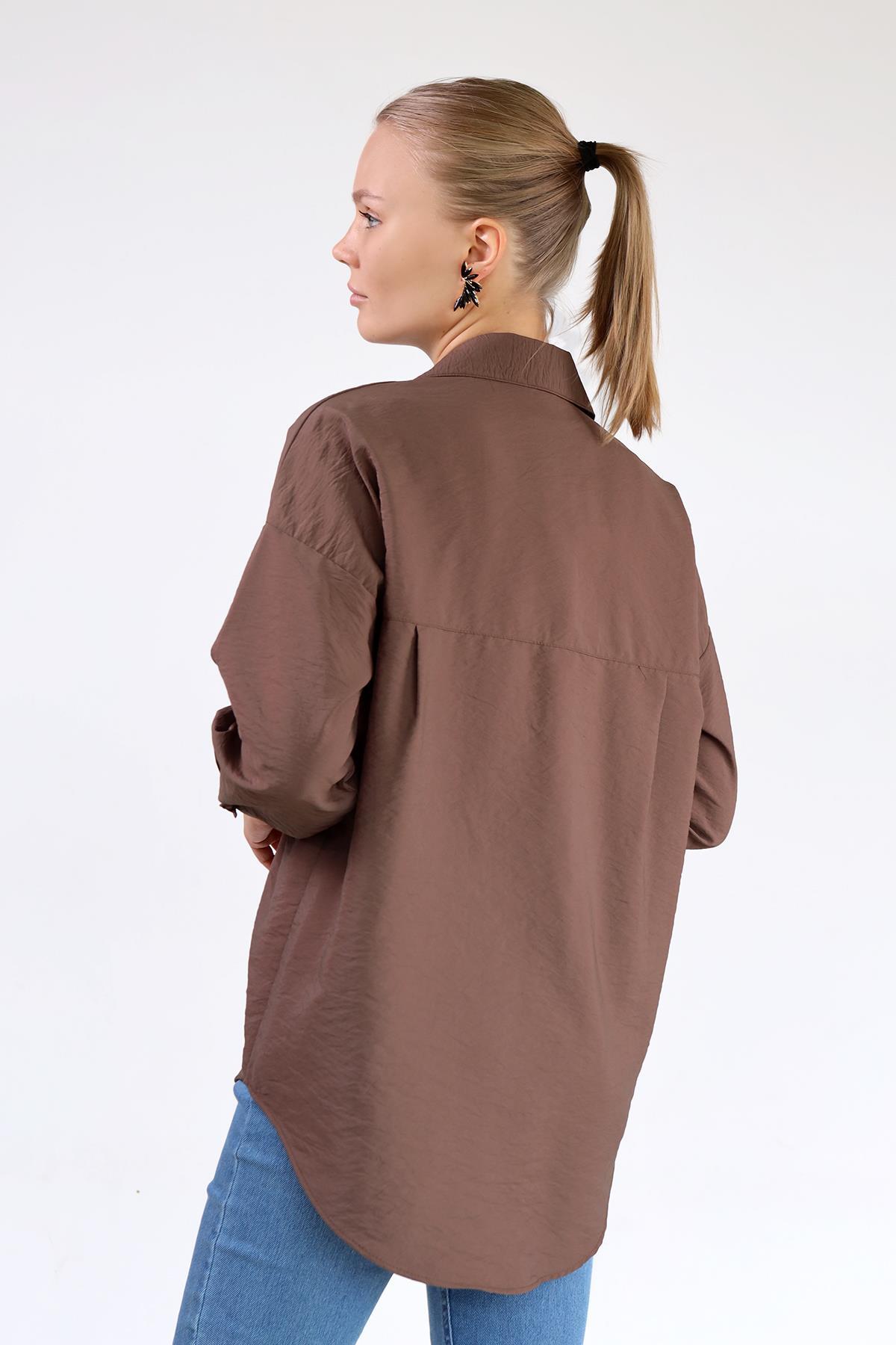 Kahve Büyük Cep Detay Oversize Gömlek 4304A