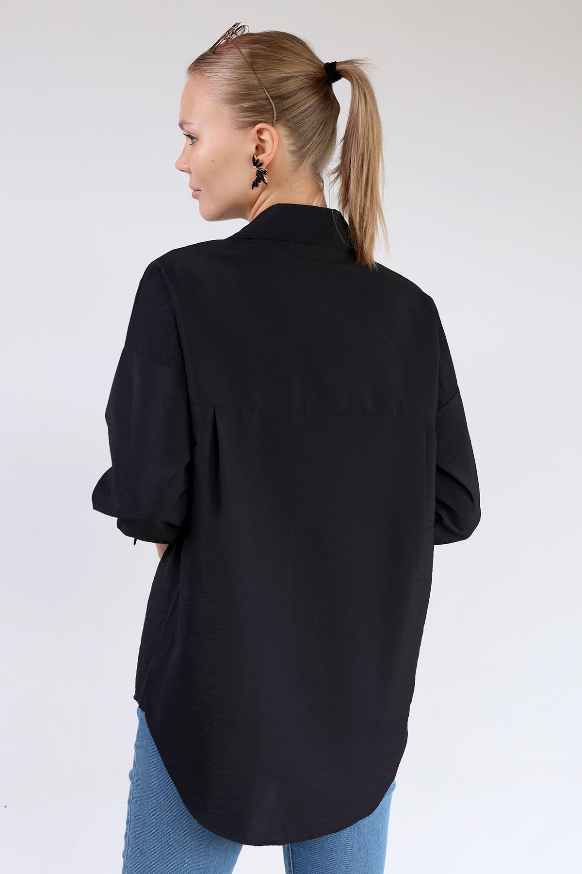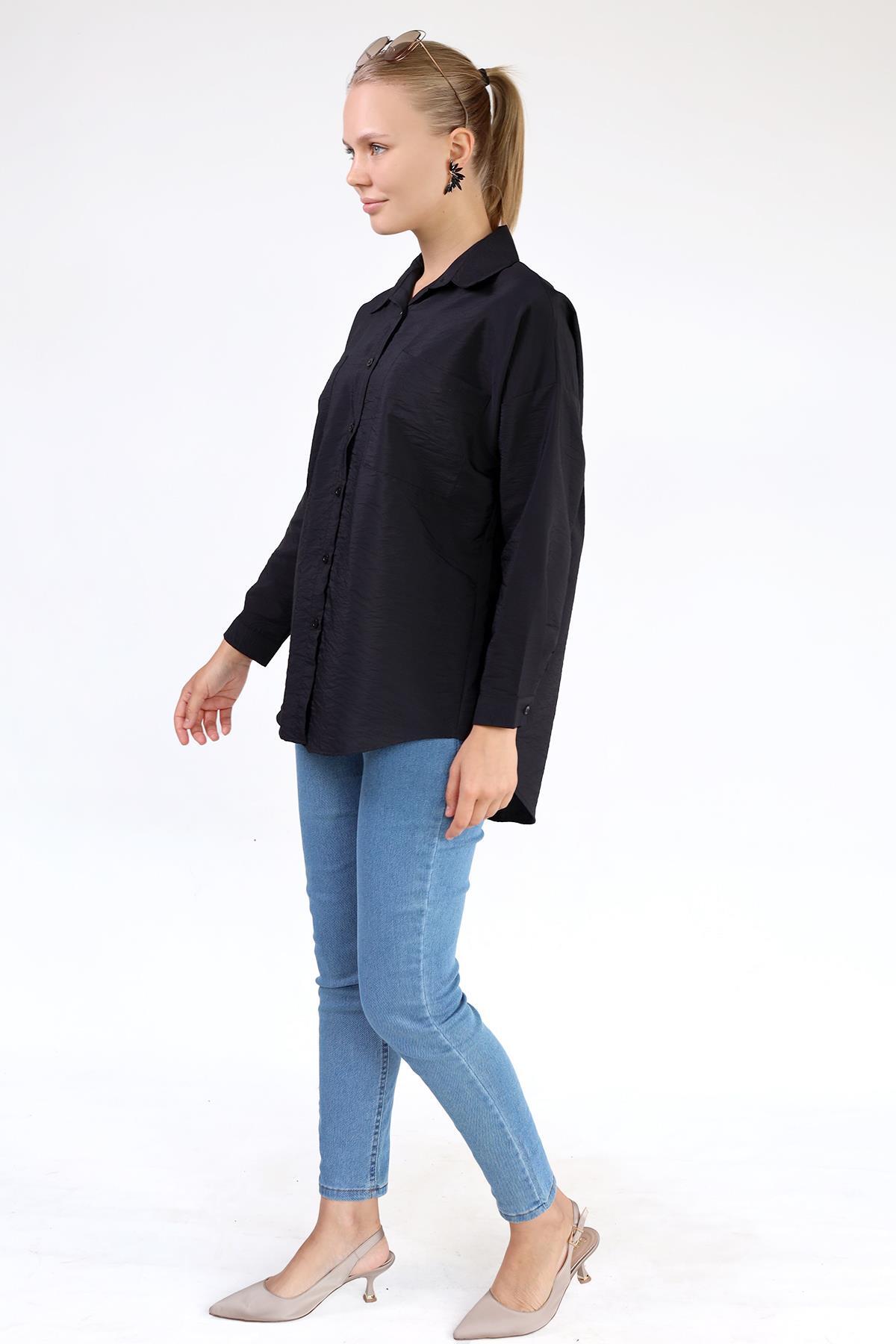 4304A Büyük Cep Detay Oversize Gömlek Siyah