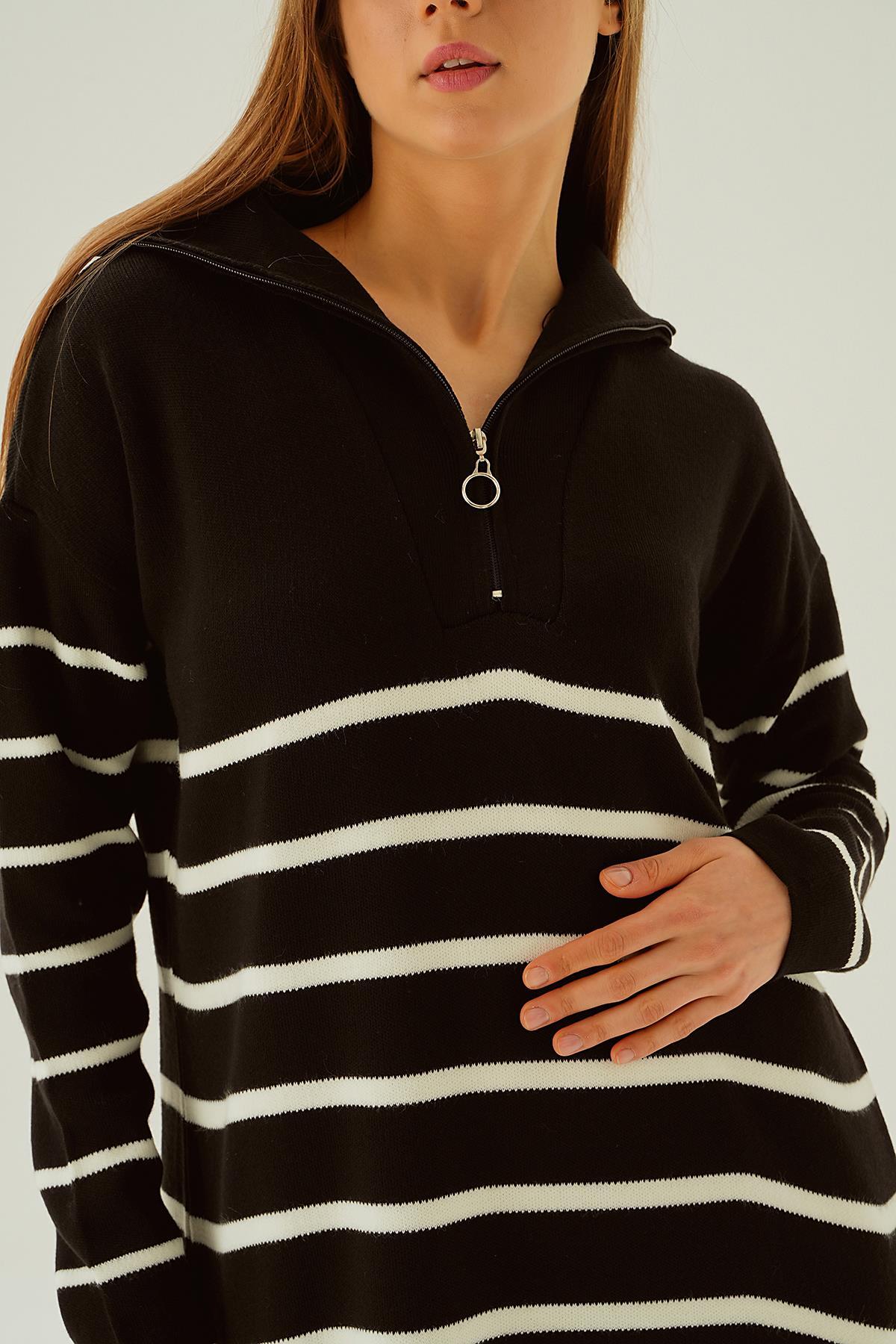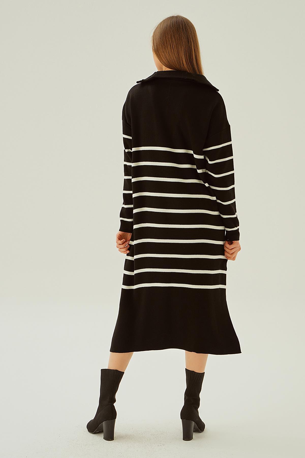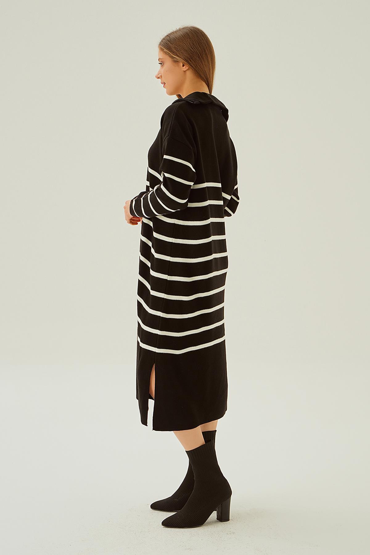 Siyah Çizgili Fermuarlı Elbise 4310
