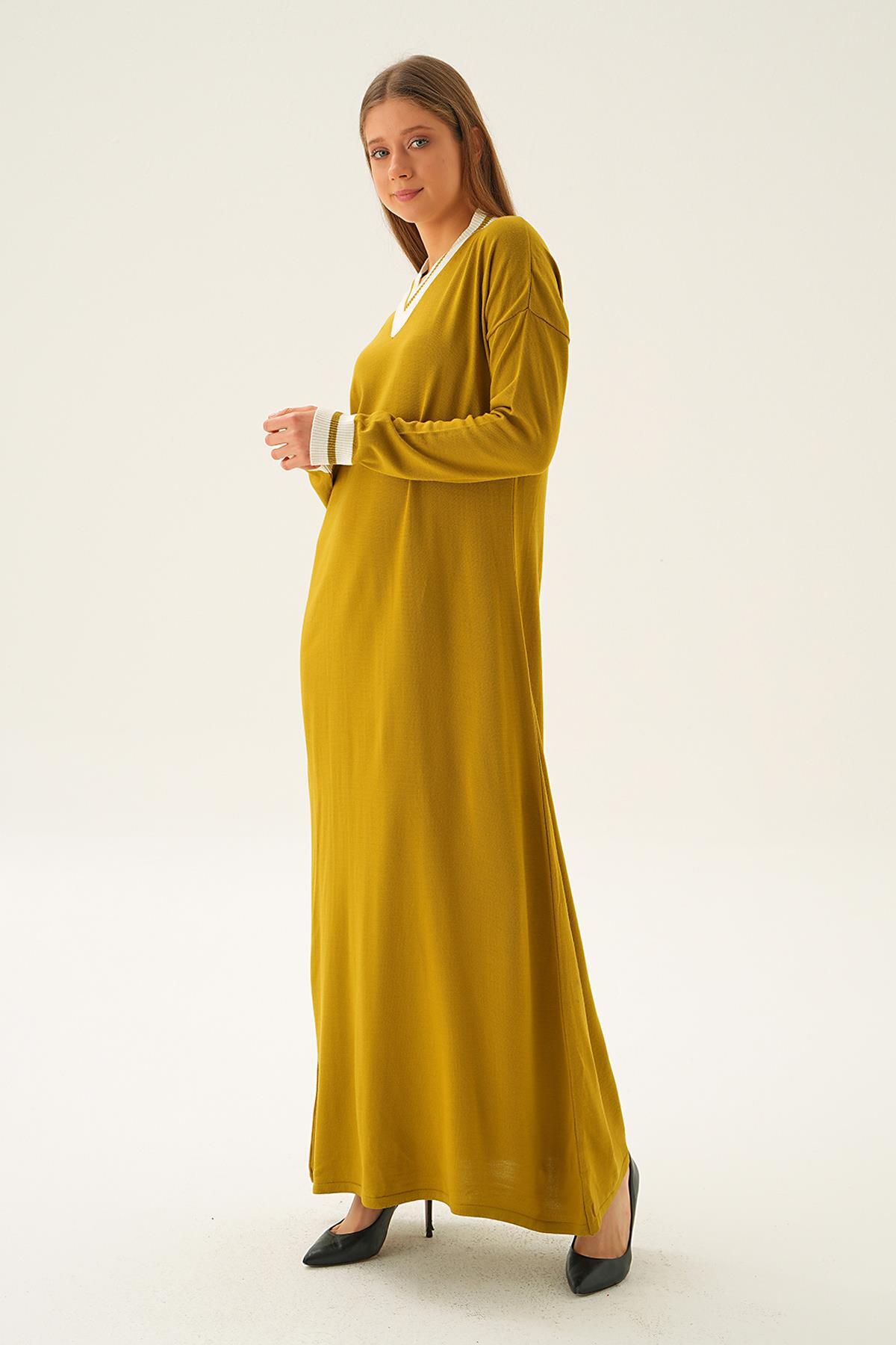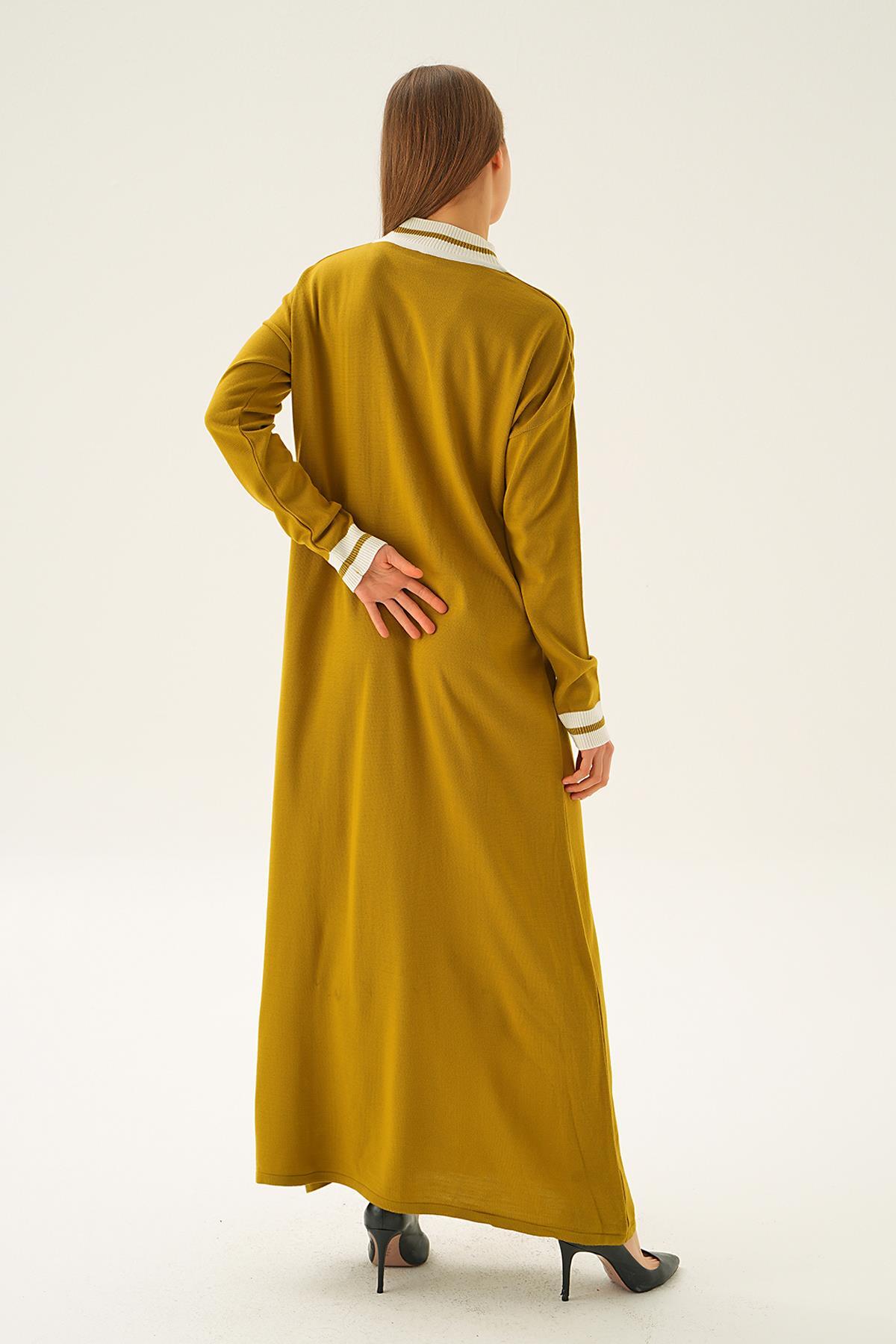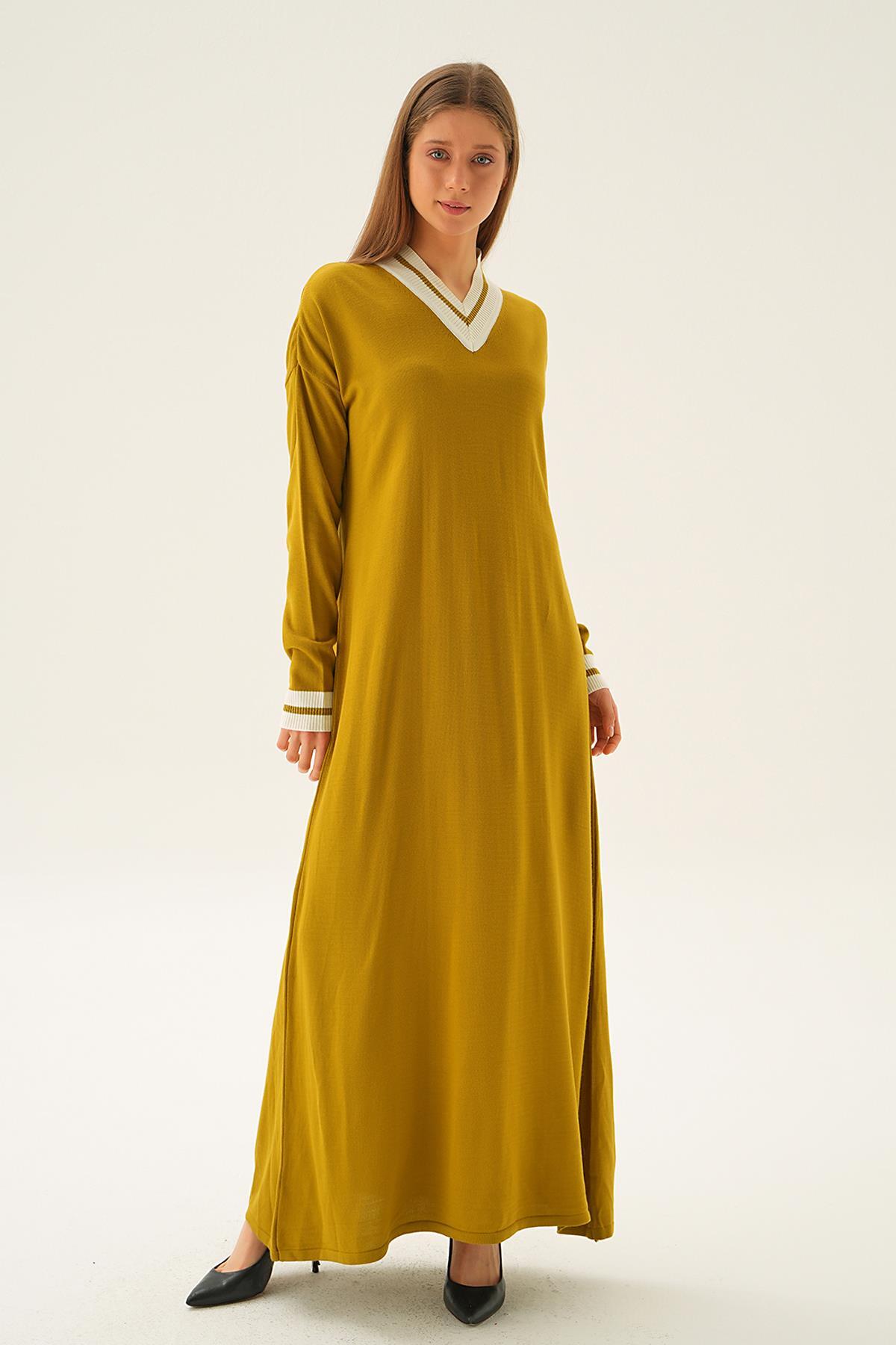 Yağ Yeşili Ribana Detay Triko Elbise 4320