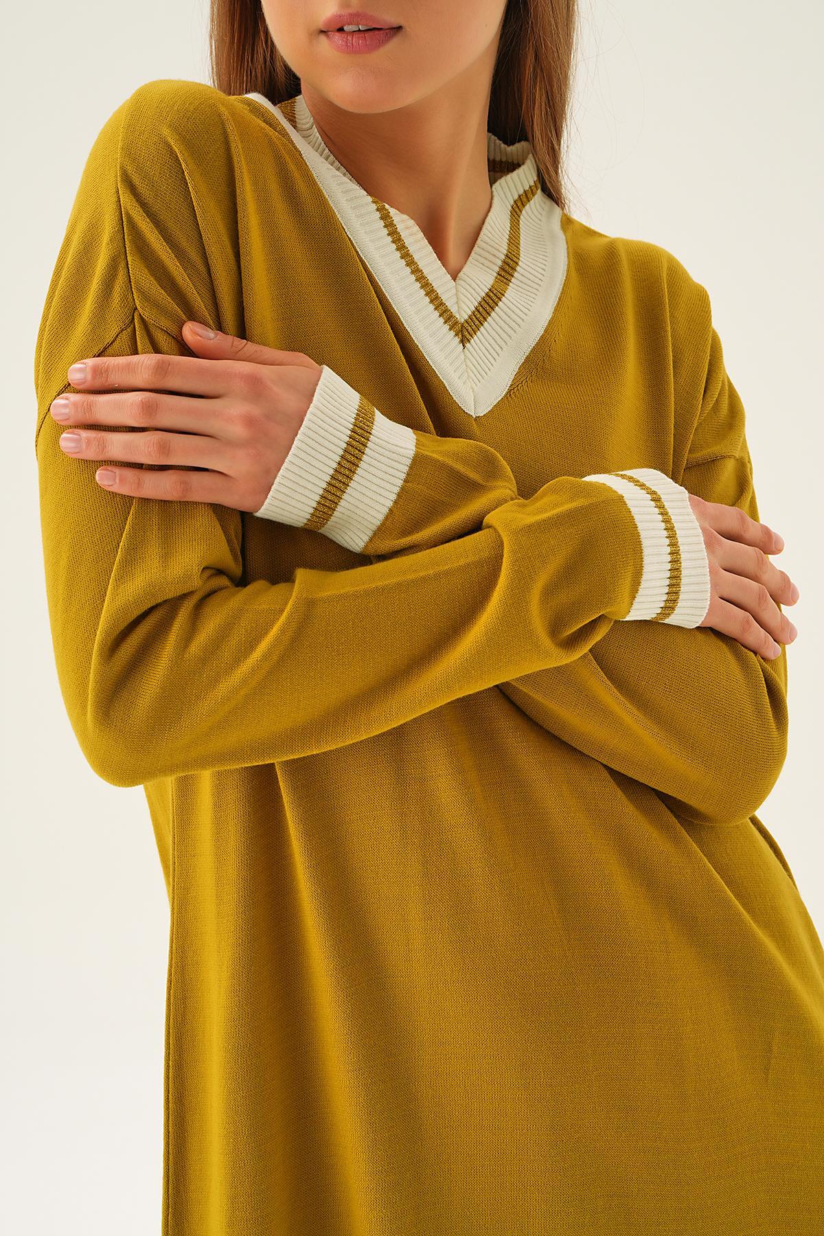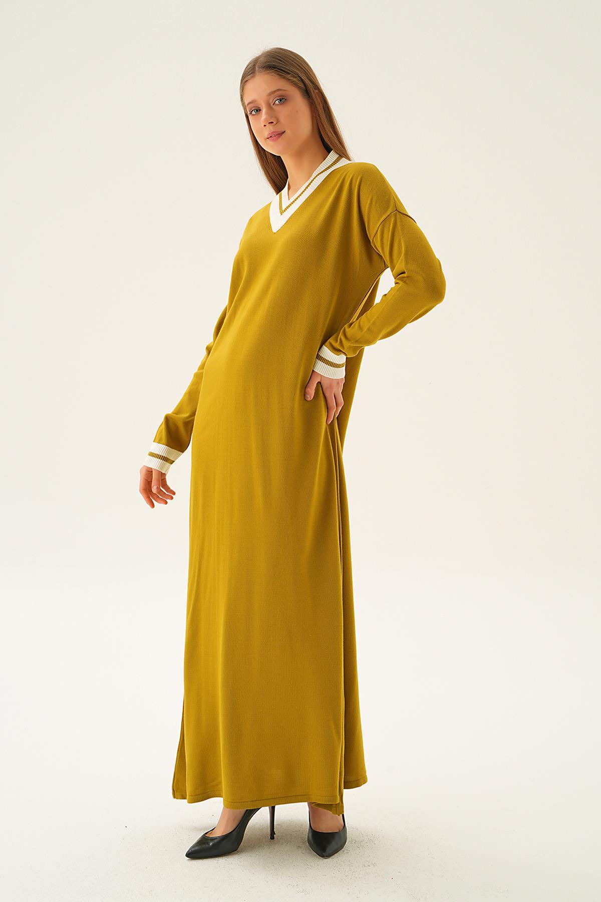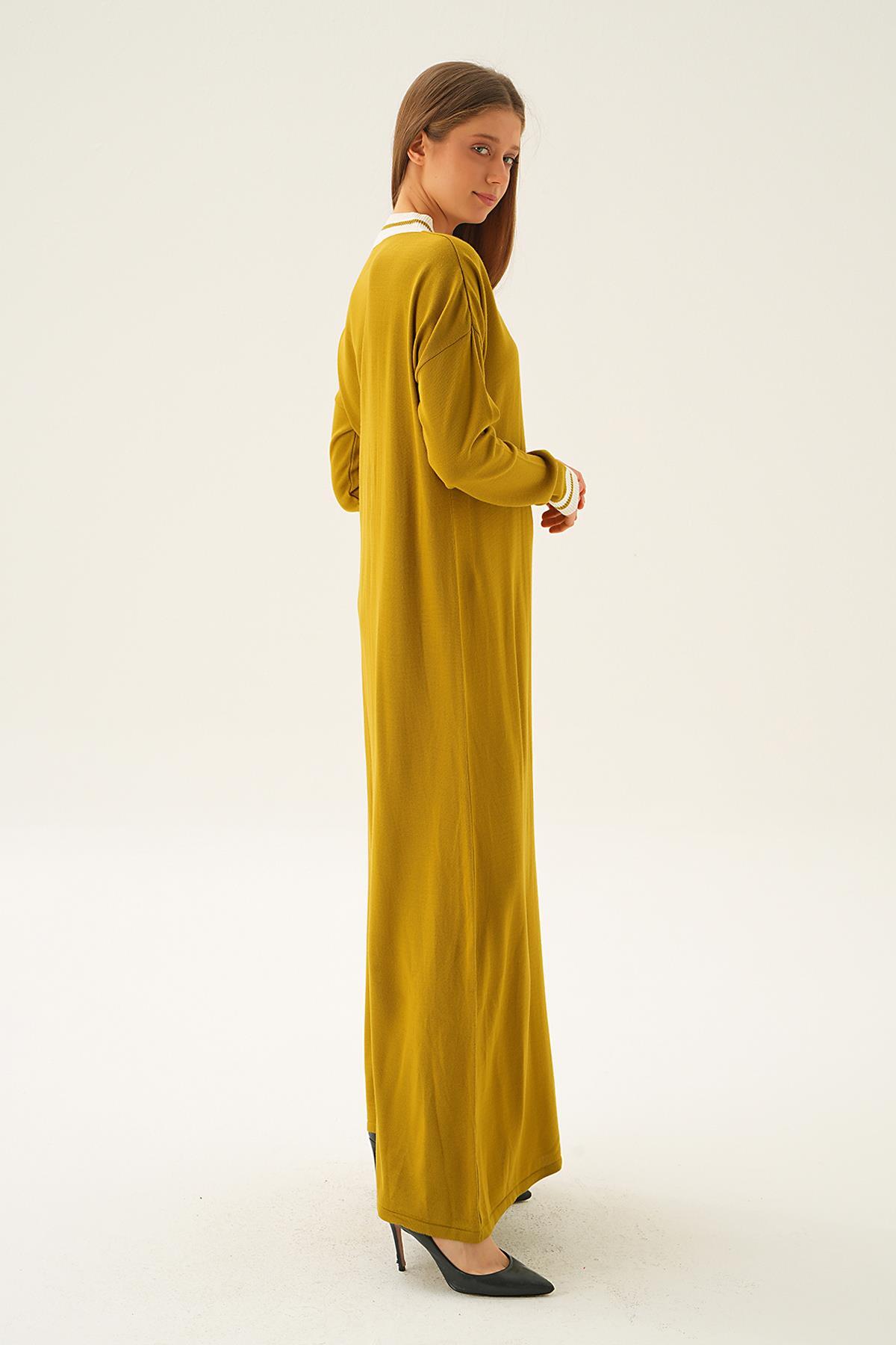 Yağ Yeşili Ribana Detay Triko Elbise 4320
