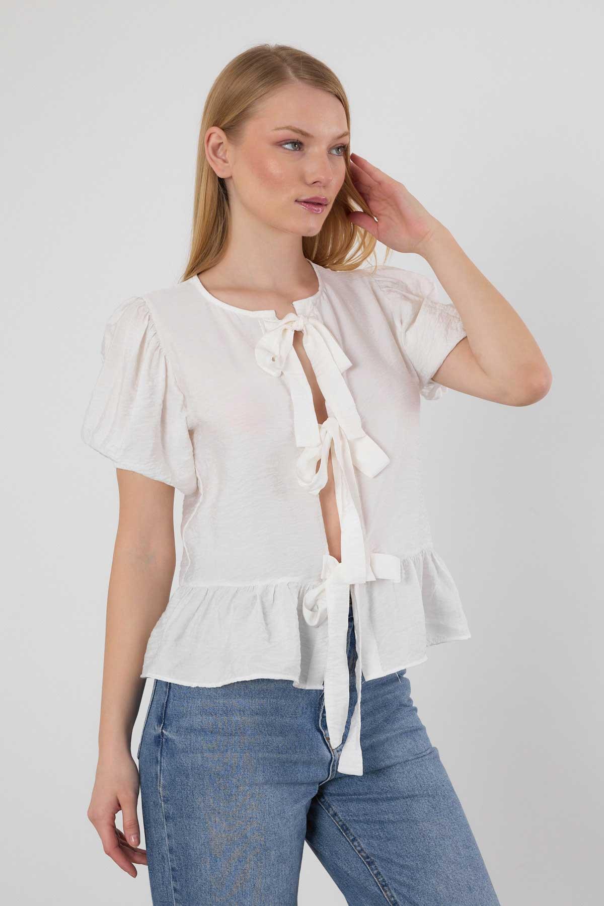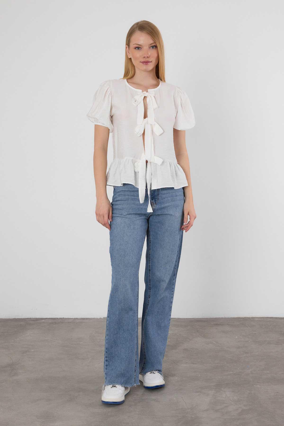 Beyaz Ön Bağlama Detay Bluz 4334A