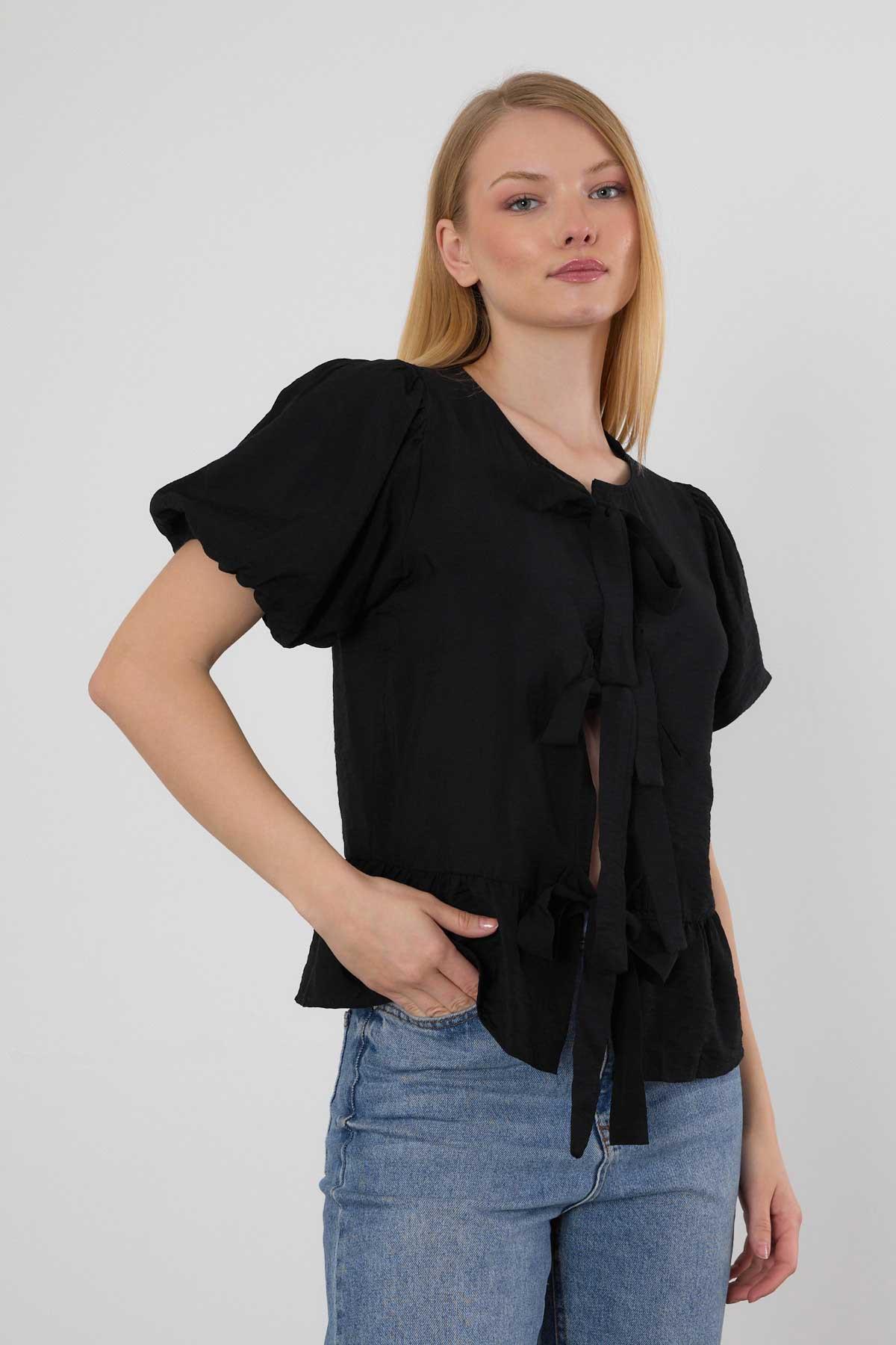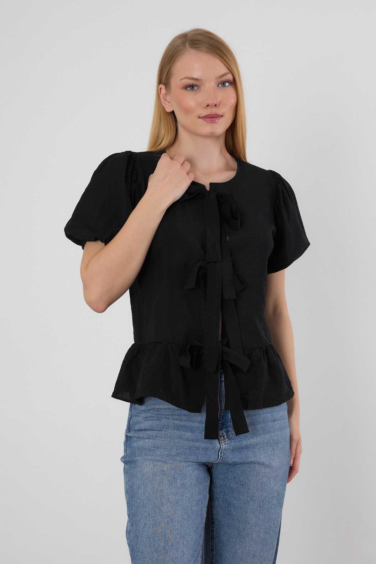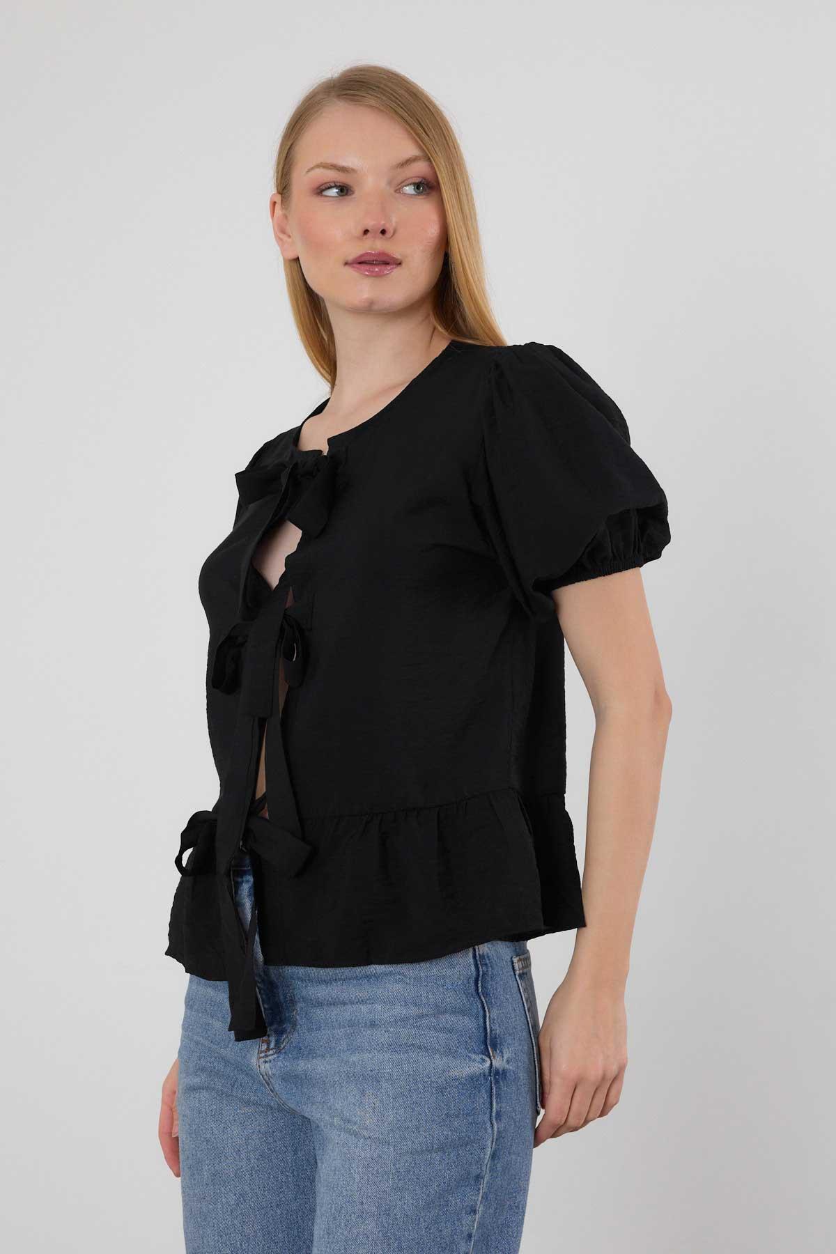 4334A ön Bağlama Detay Bluz Siyah