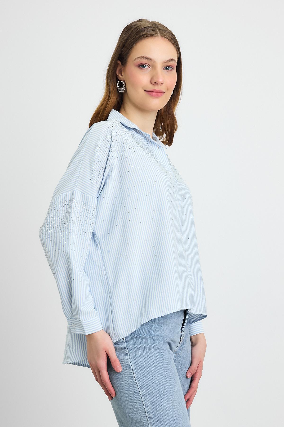 4340A Taş Detay Gömlek Mavi