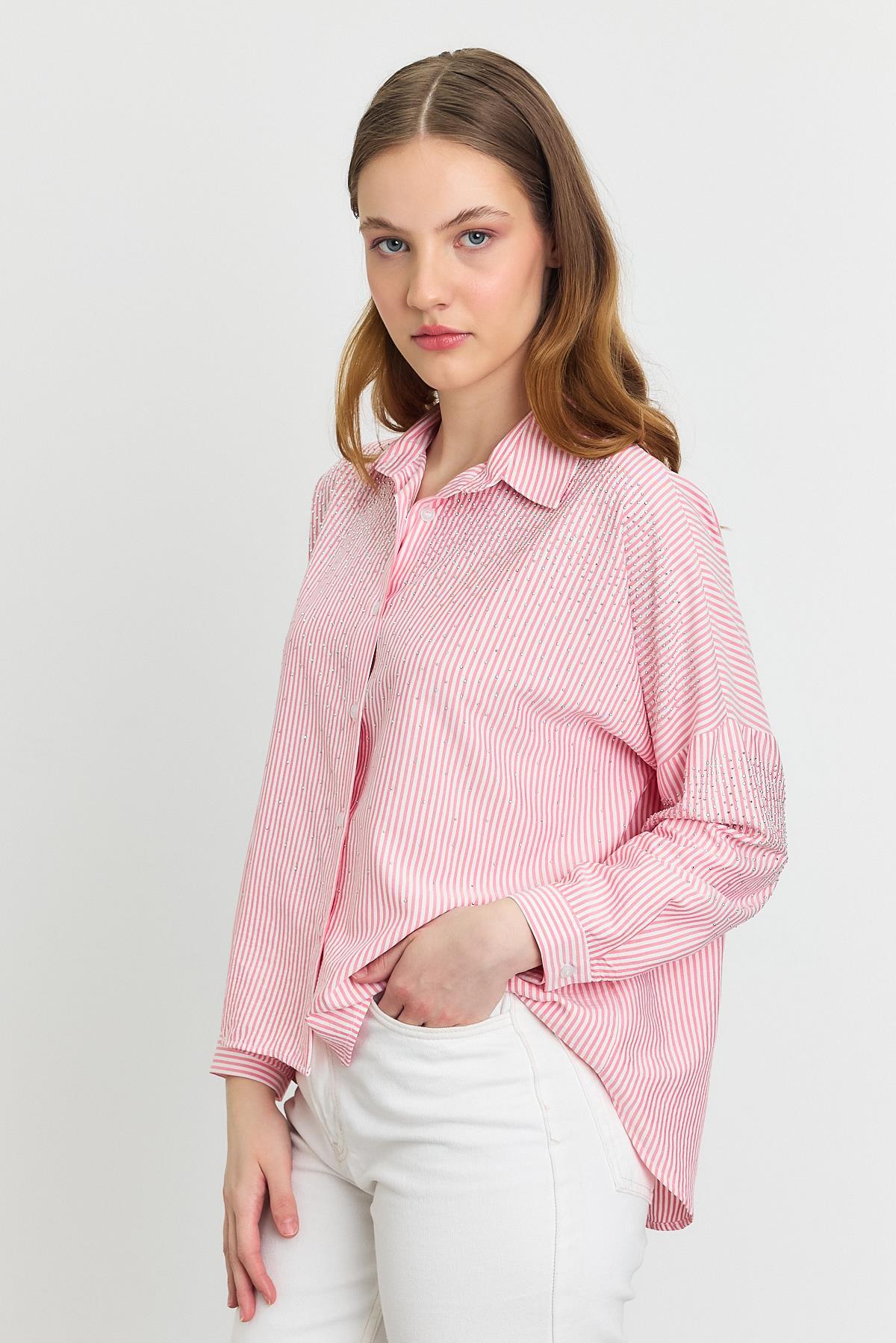 Pembe Çizgili Oversize Gömlek 5460 - RAYS Pembe Çizgili Oversize Gömlek 5460 - RAYS (1)