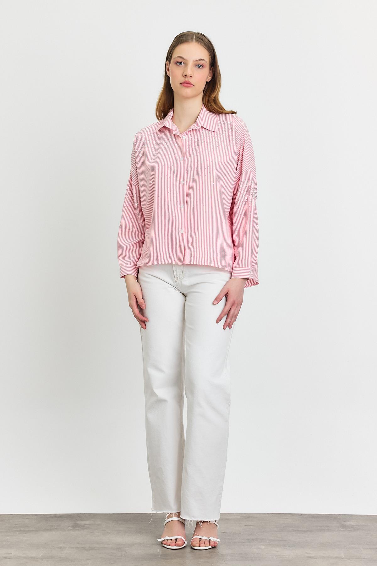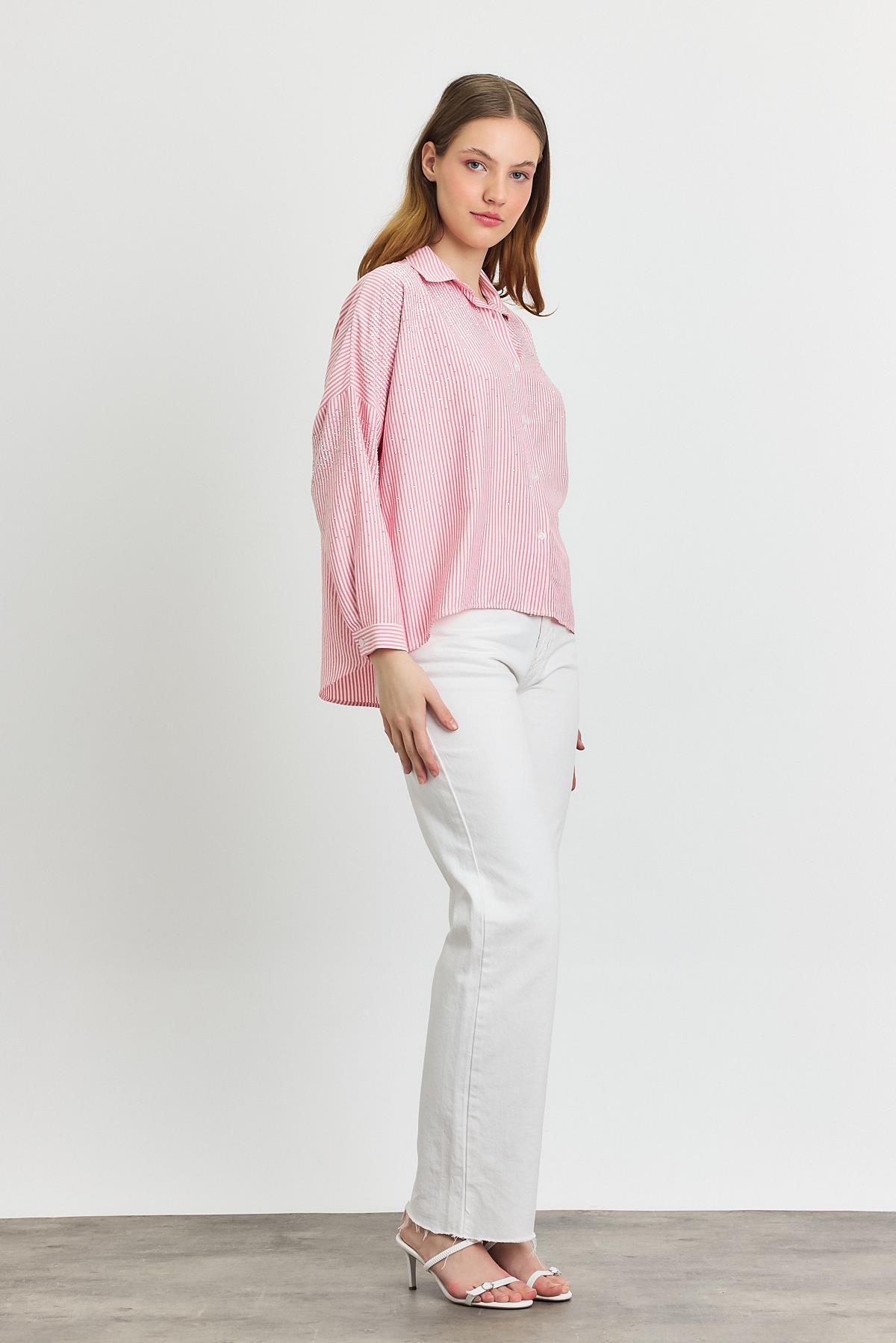 Pembe Çizgili Salaş Gömlek 5475 - RAYS Pembe Çizgili Salaş Gömlek 5475 - RAYS (1)