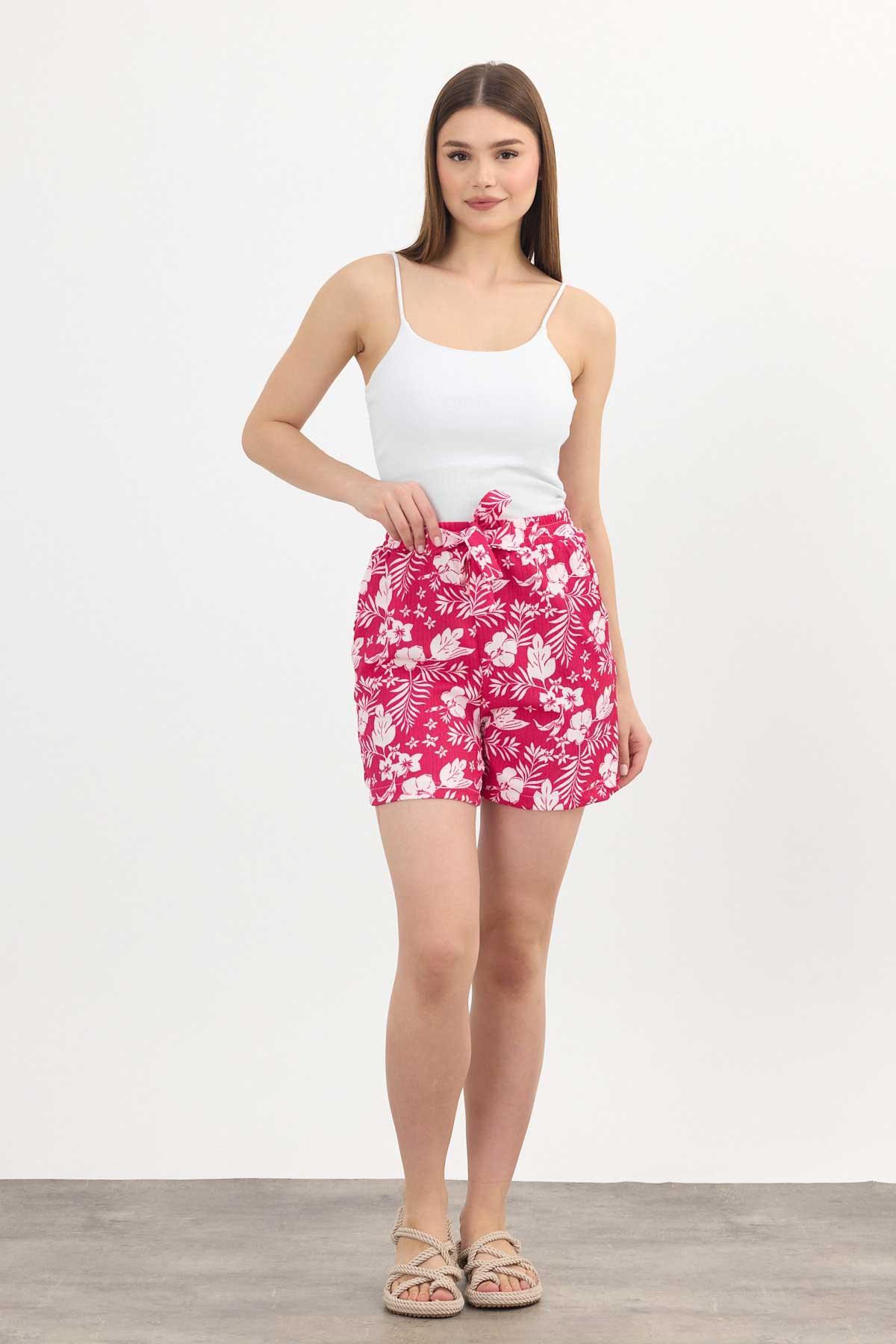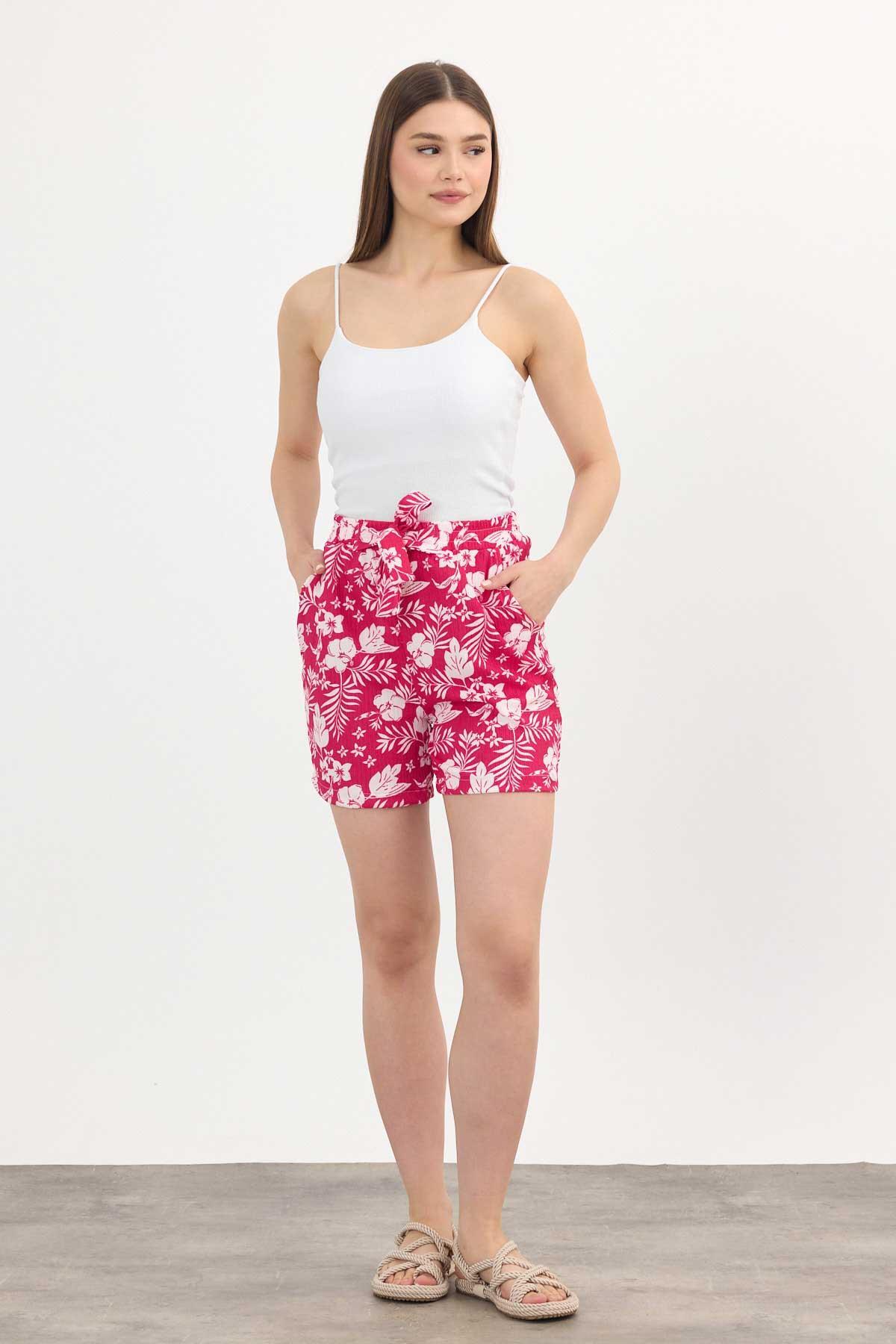 Şeker Pembe Çiçek Desenli Şort 4356A