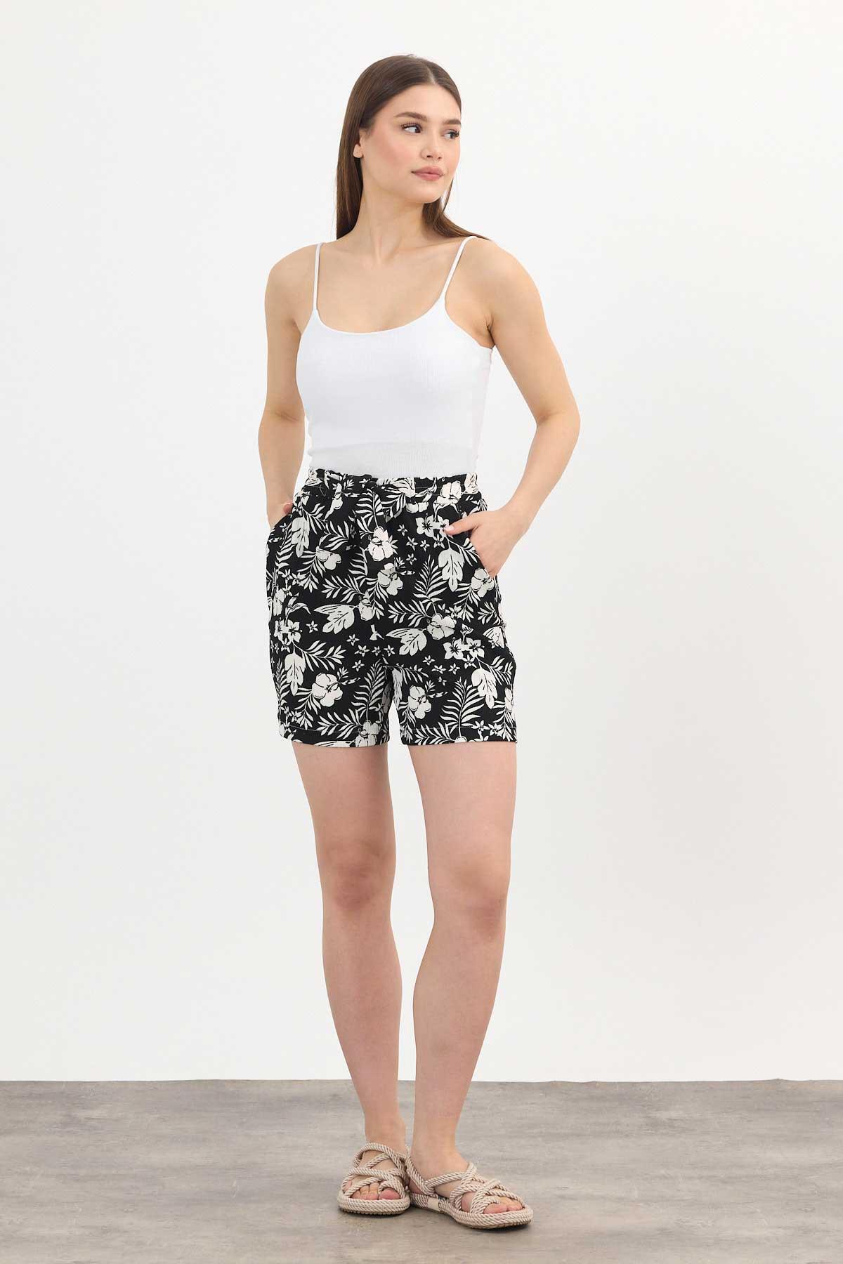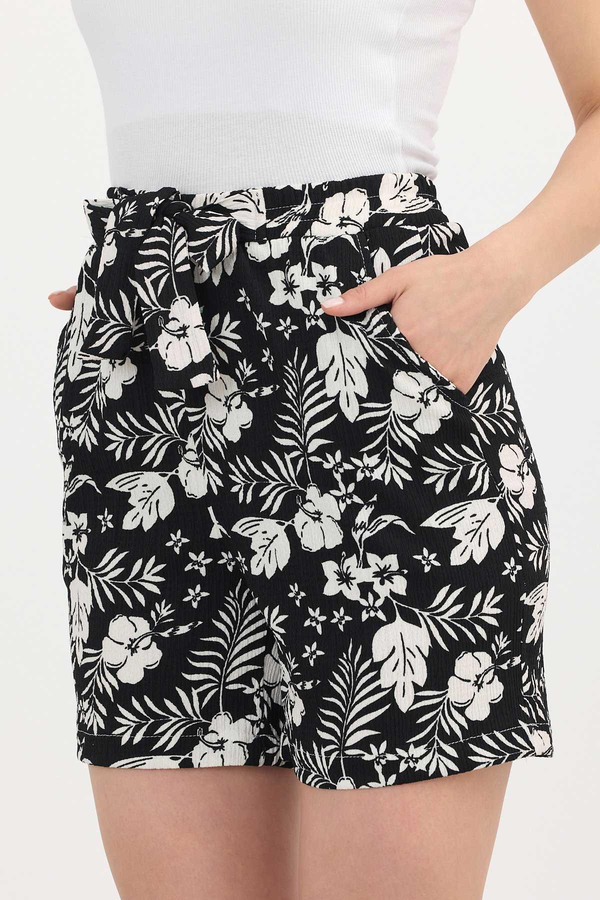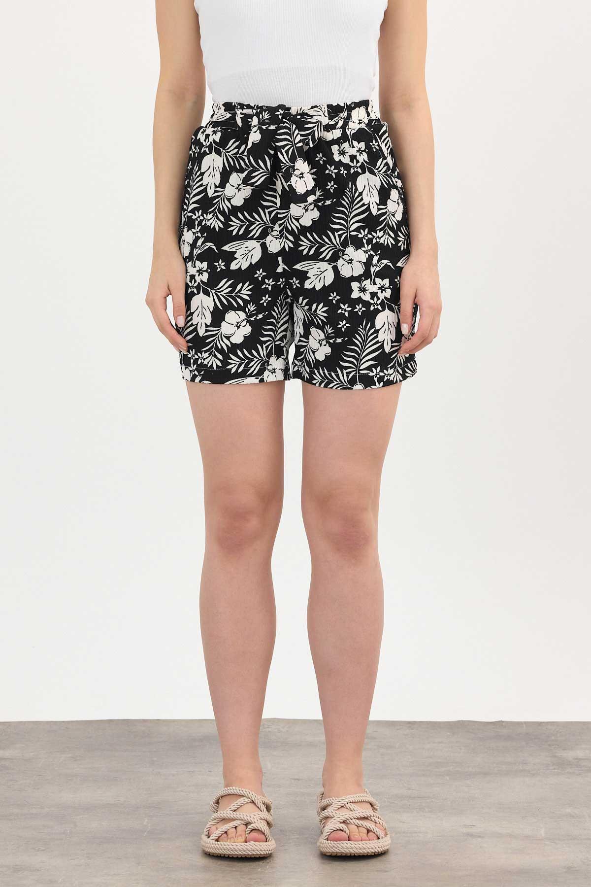 Siyah Çiçek Desenli Şort 4356A