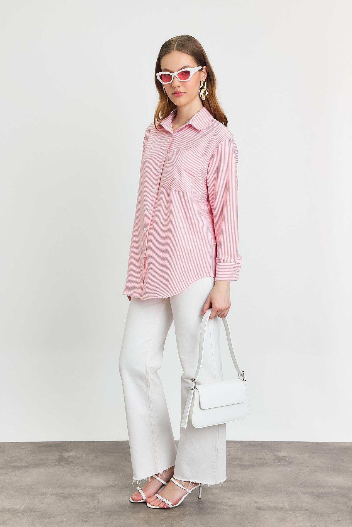 Pembe Çizgili Salaş Gömlek 5475