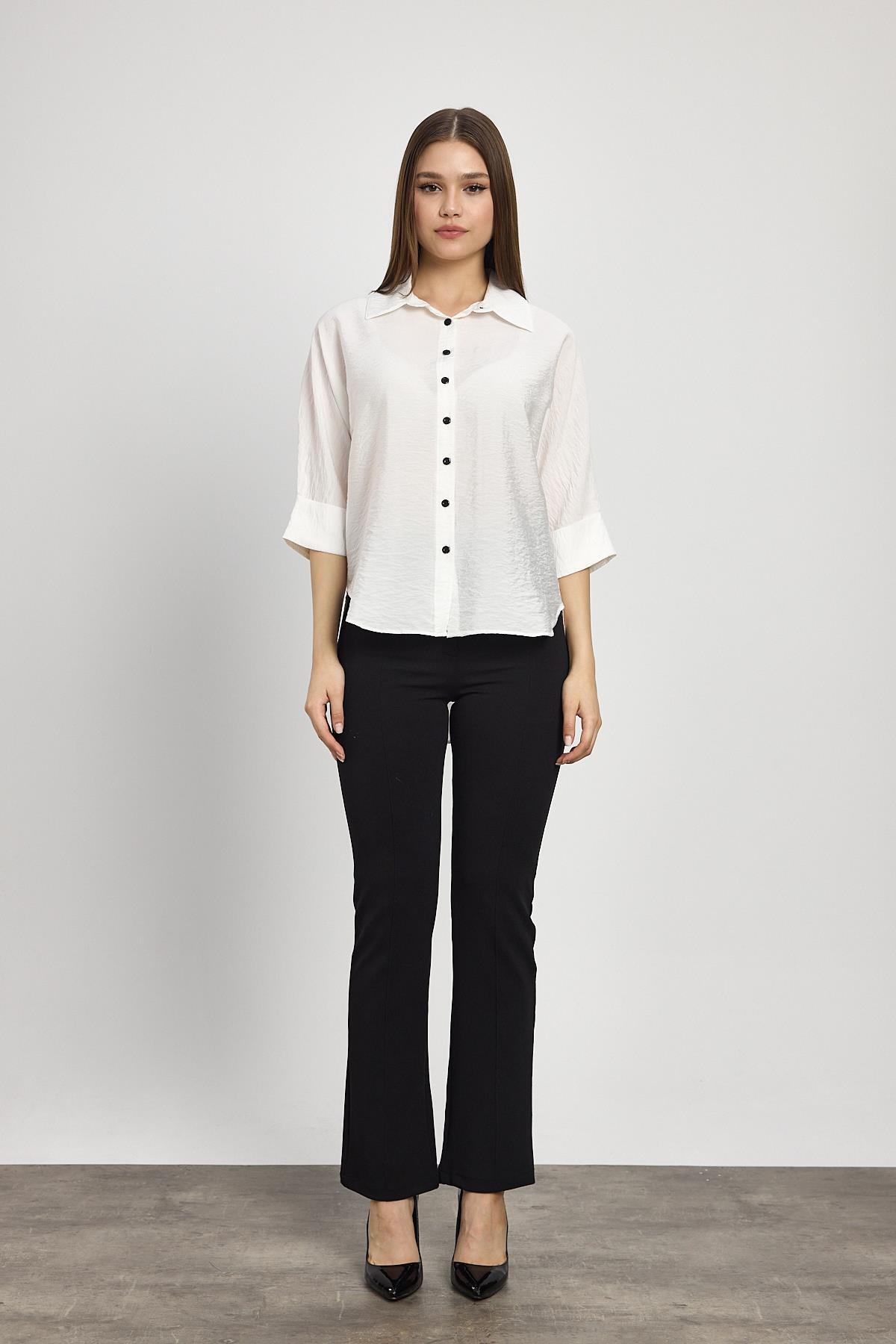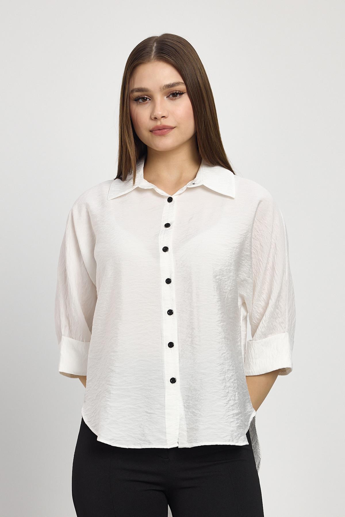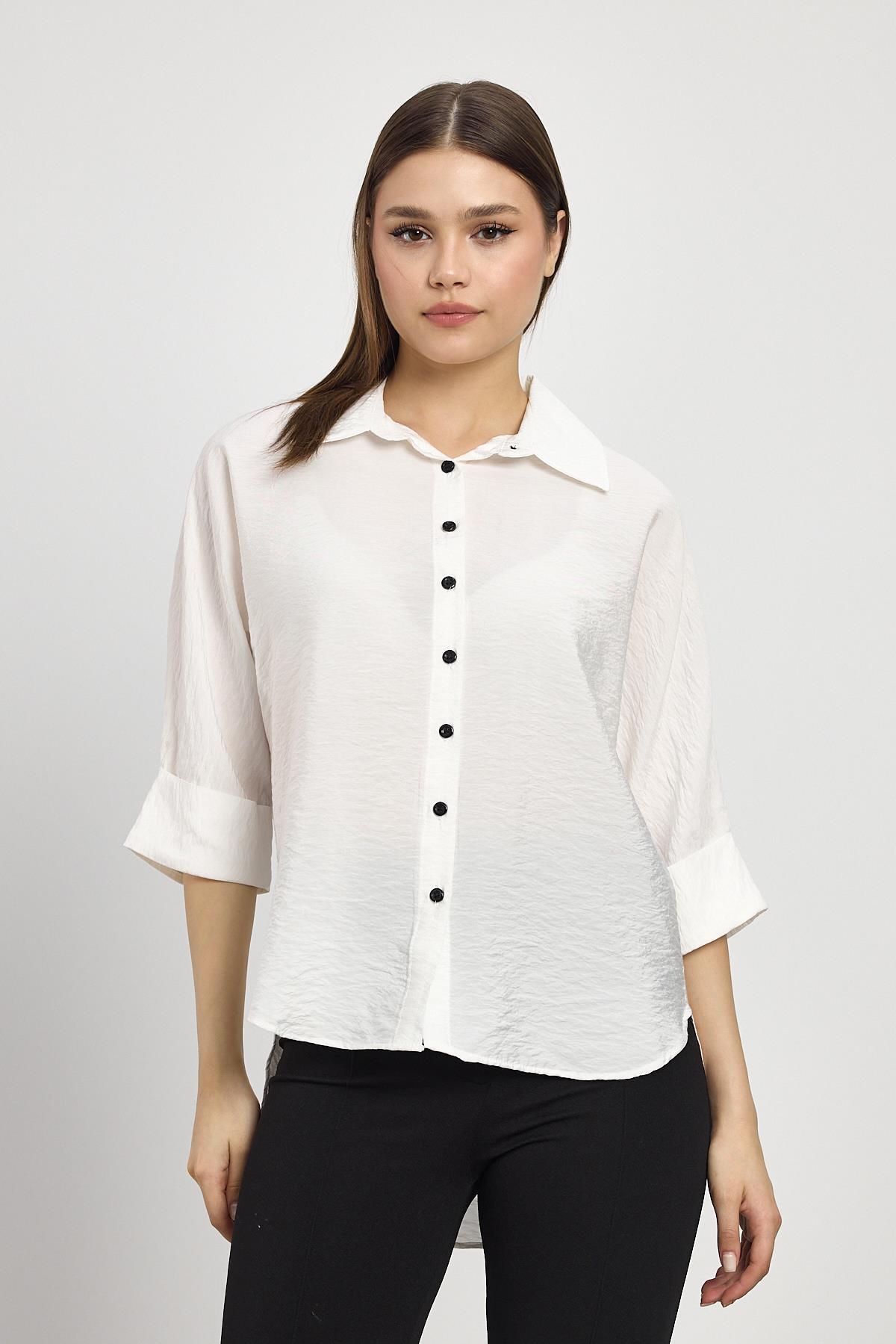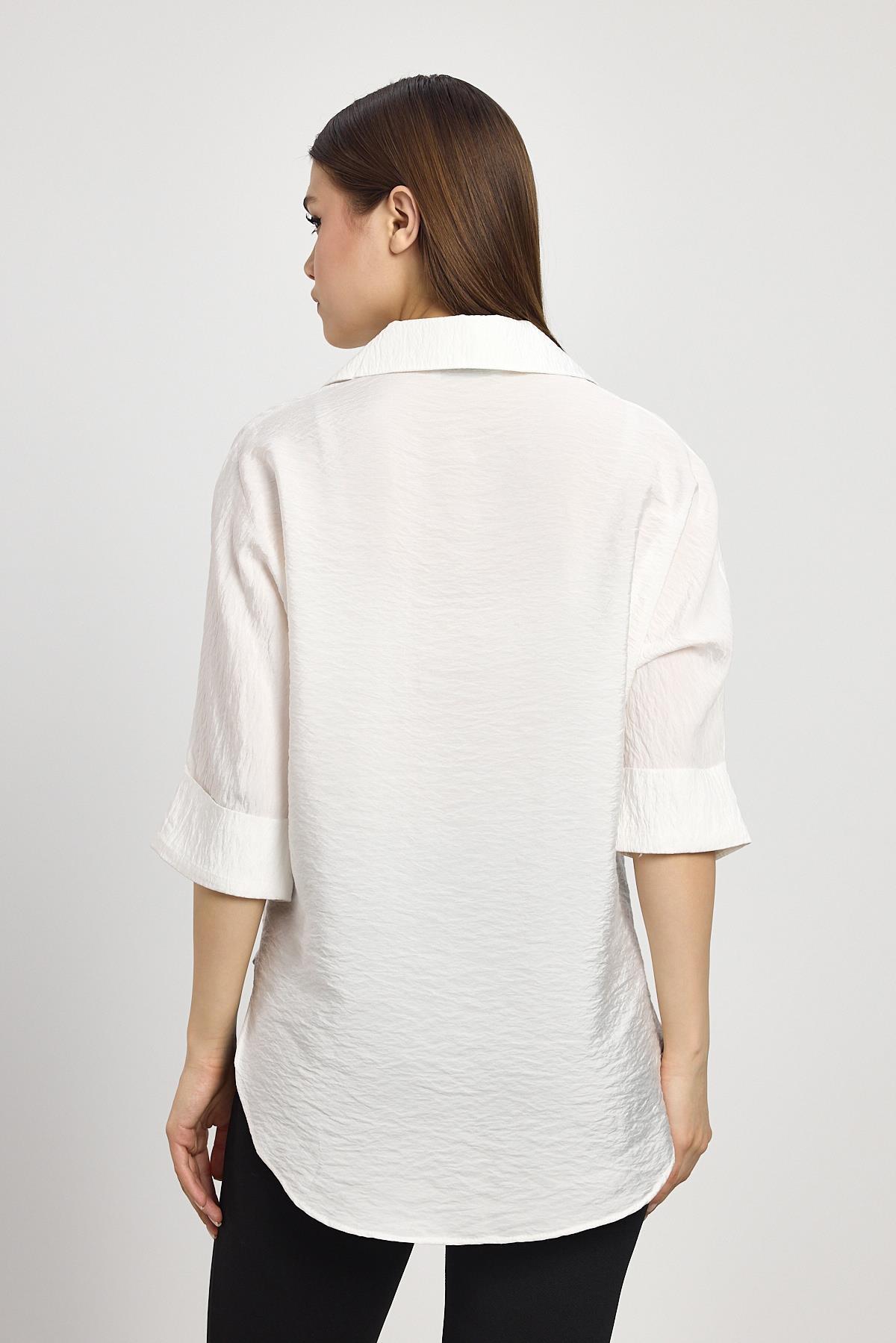 Beyaz Fakir Kol Gömlek 4361A