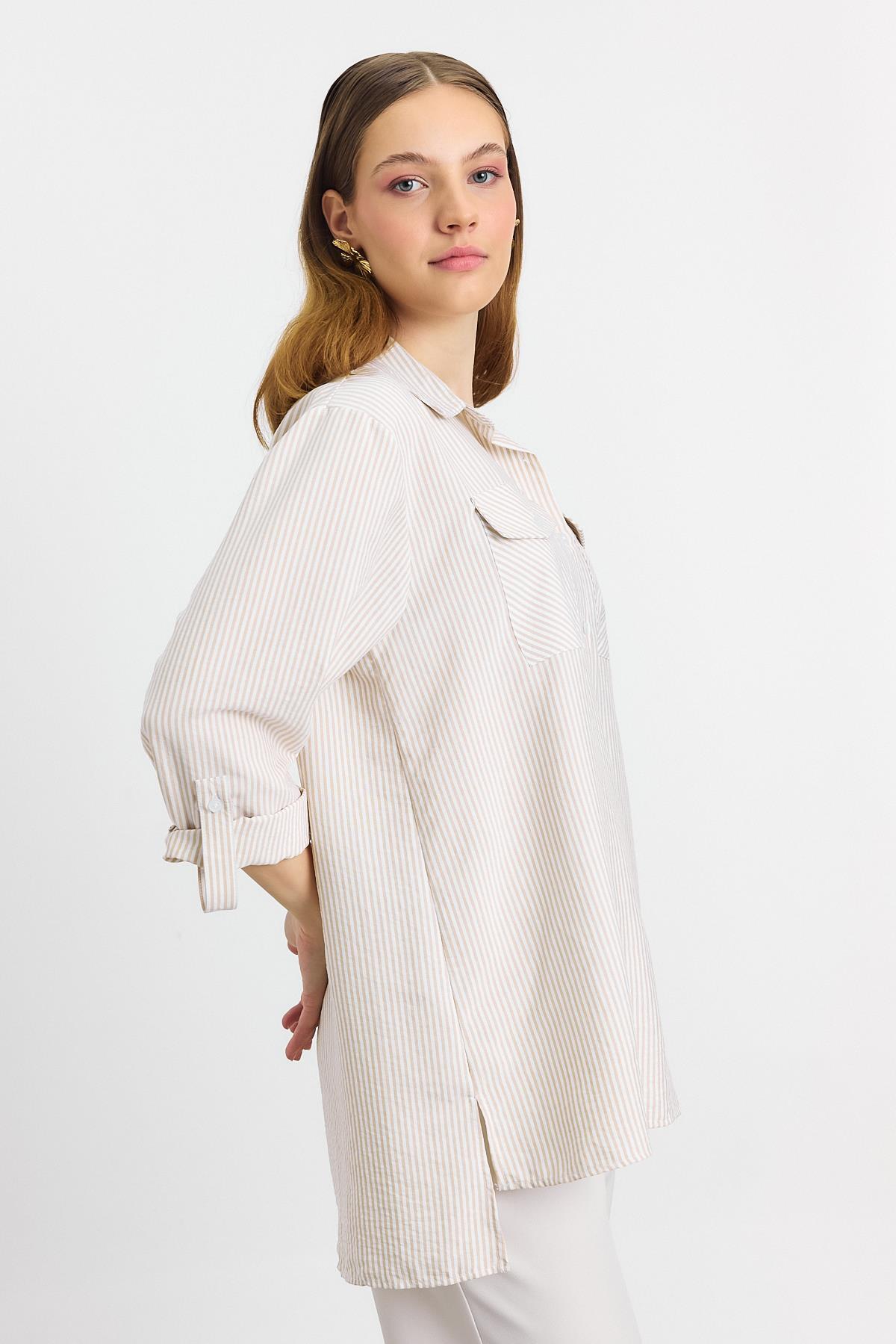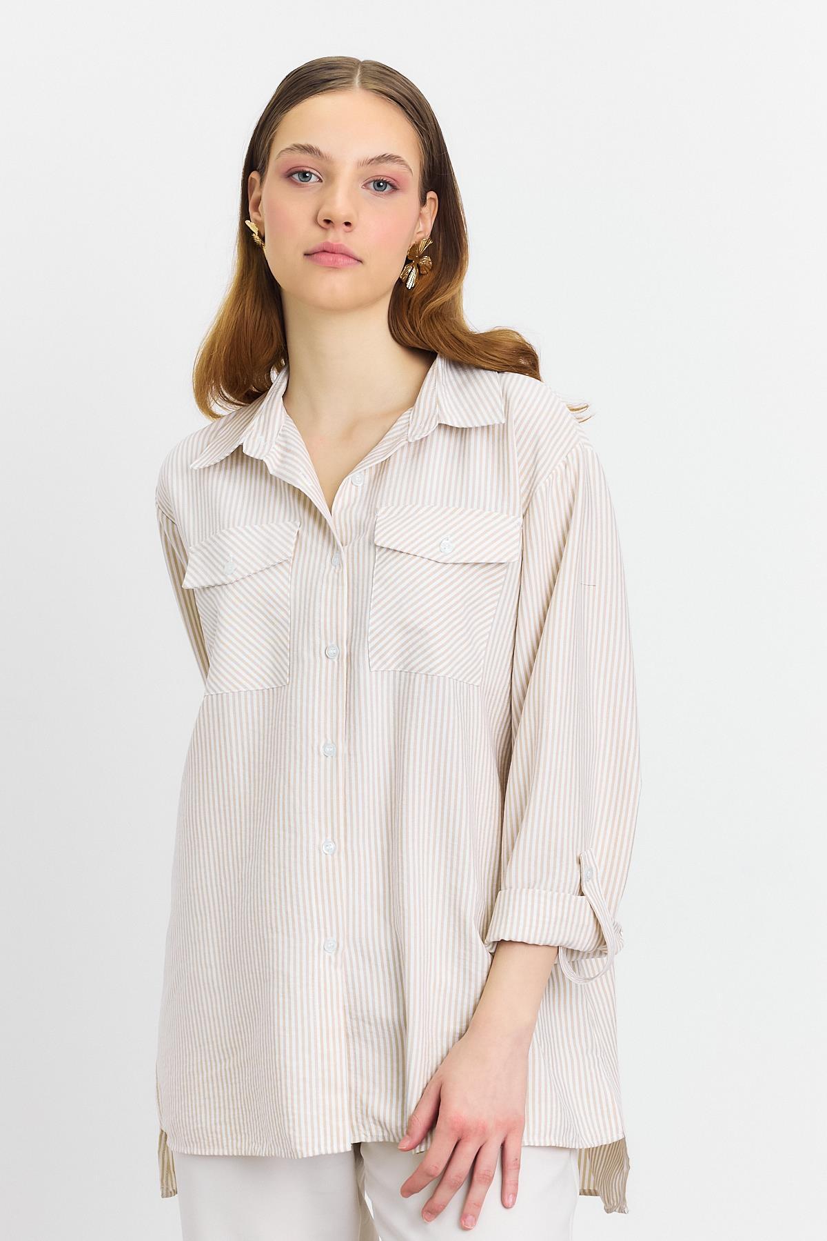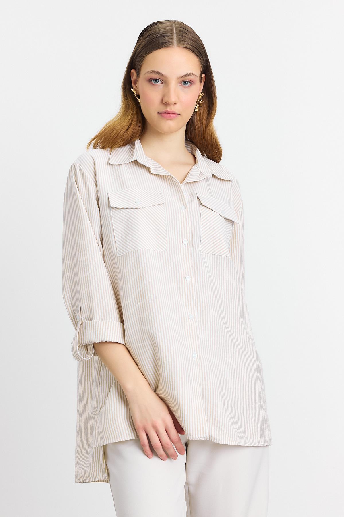 251152 Düğmeli Klasik Gömlek Bej - RAYS