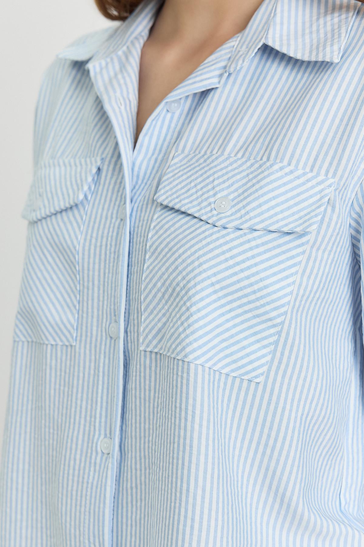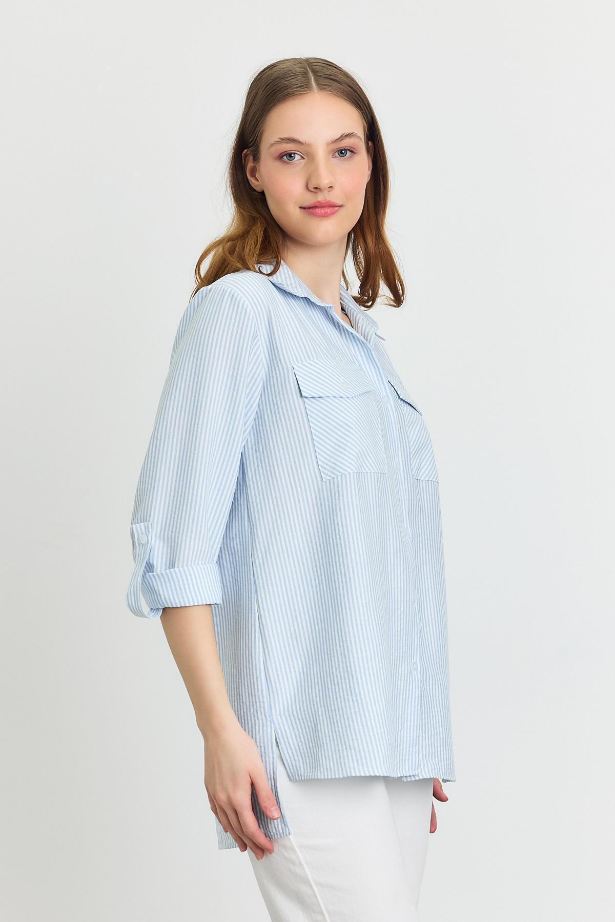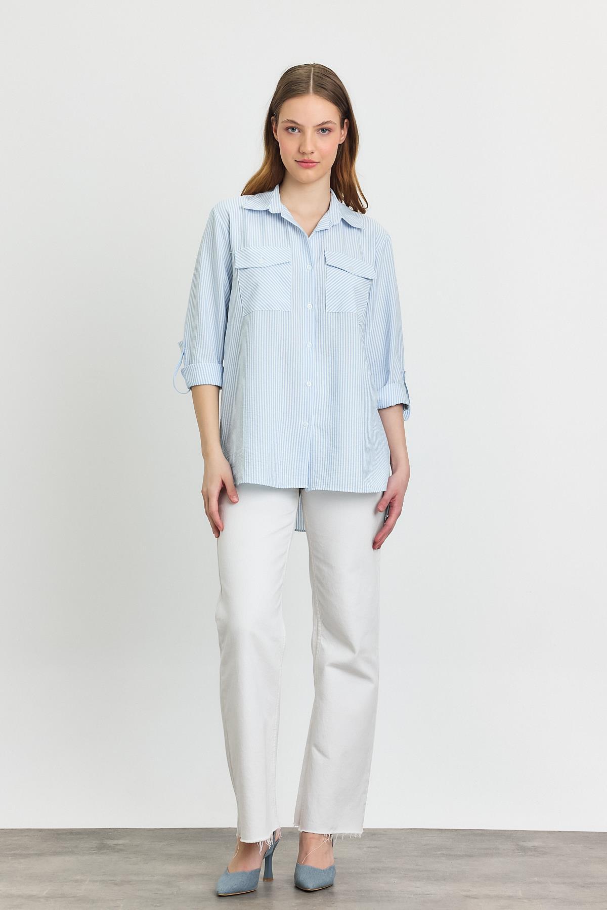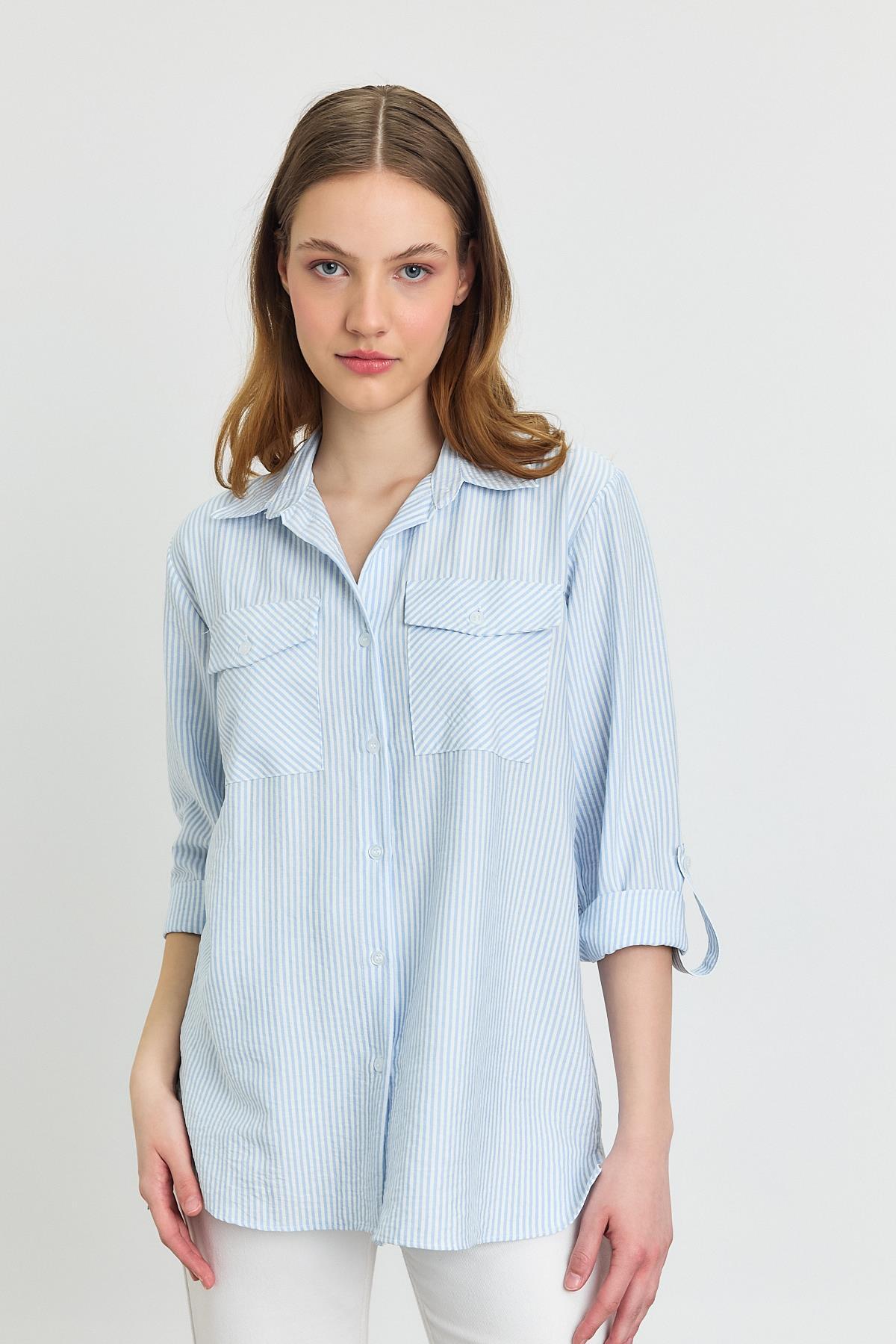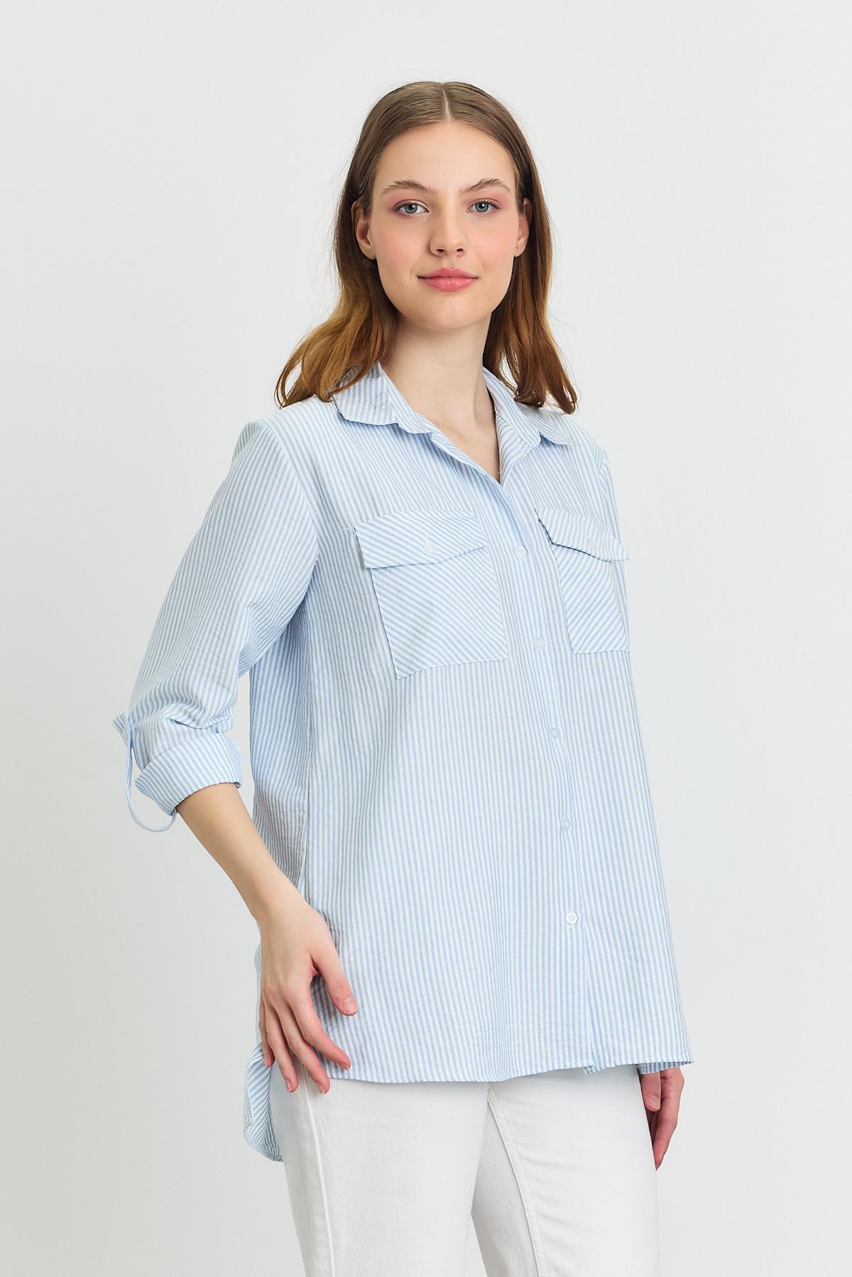 Mavi Çizgili Çift Cepli Gömlek 4362A