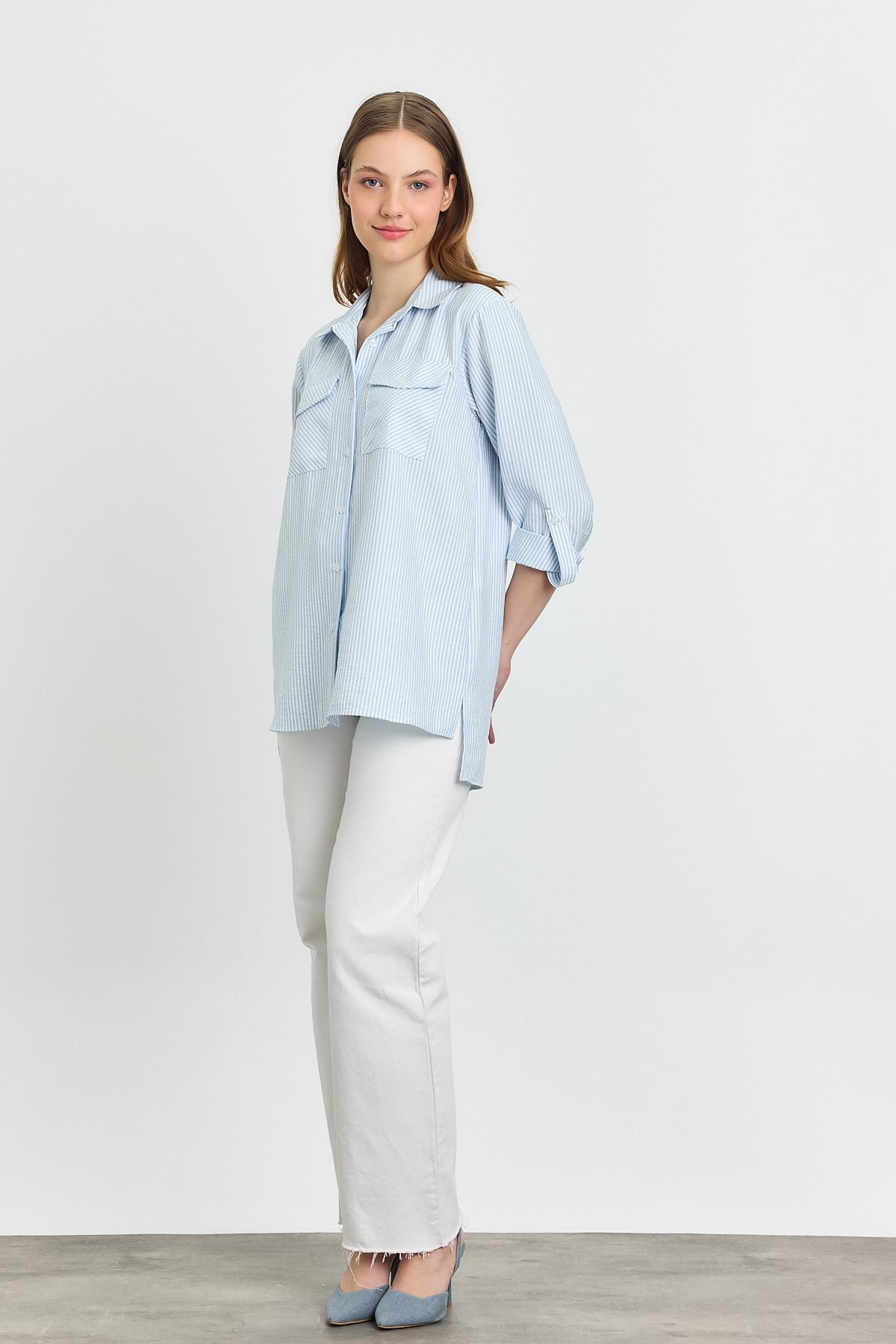 Mavi Çizgili Oversize Gömlek 5460 - RAYS Mavi Çizgili Oversize Gömlek 5460 - RAYS (1)