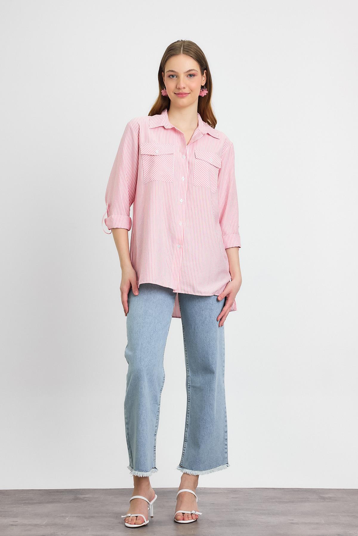 Pembe Çizgili Çift Cepli Gömlek 4362A