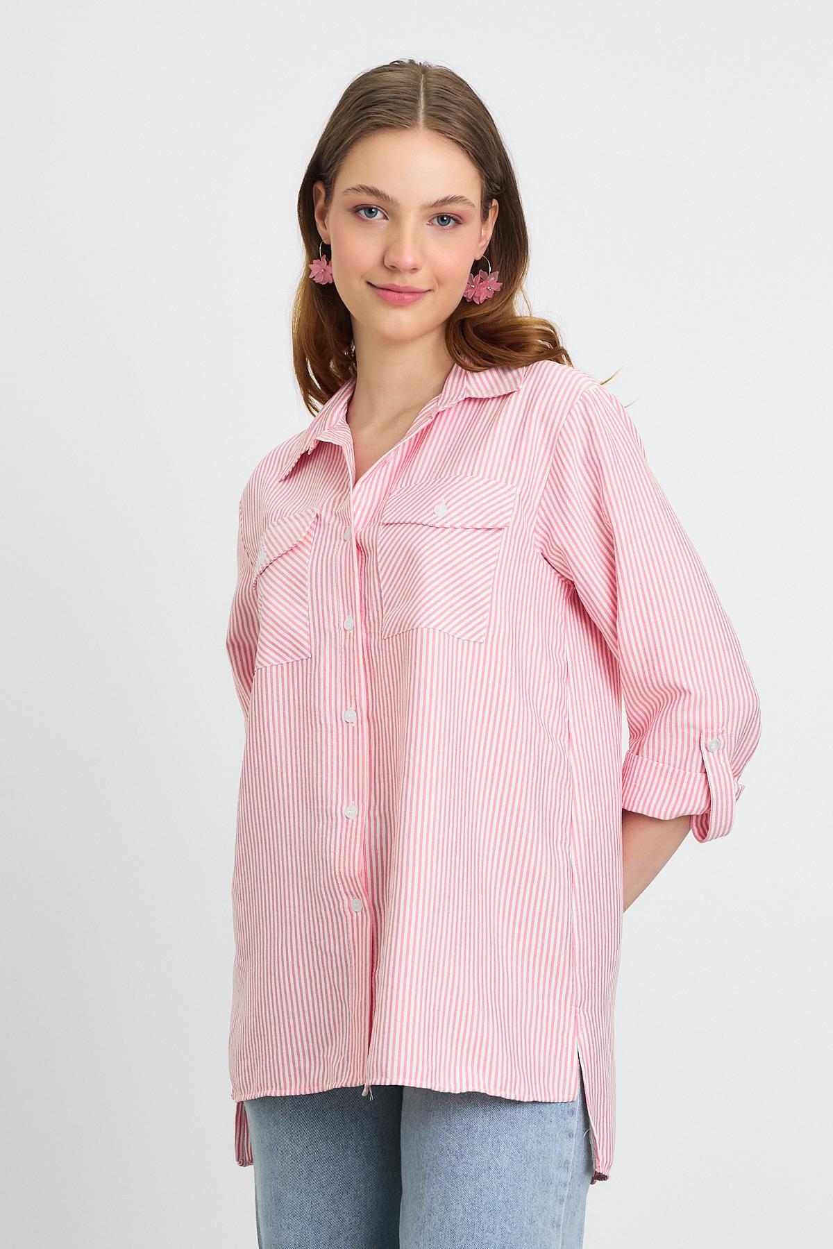 Pembe Çizgili Salaş Gömlek 5475