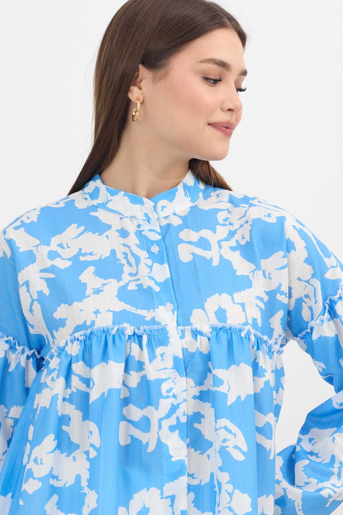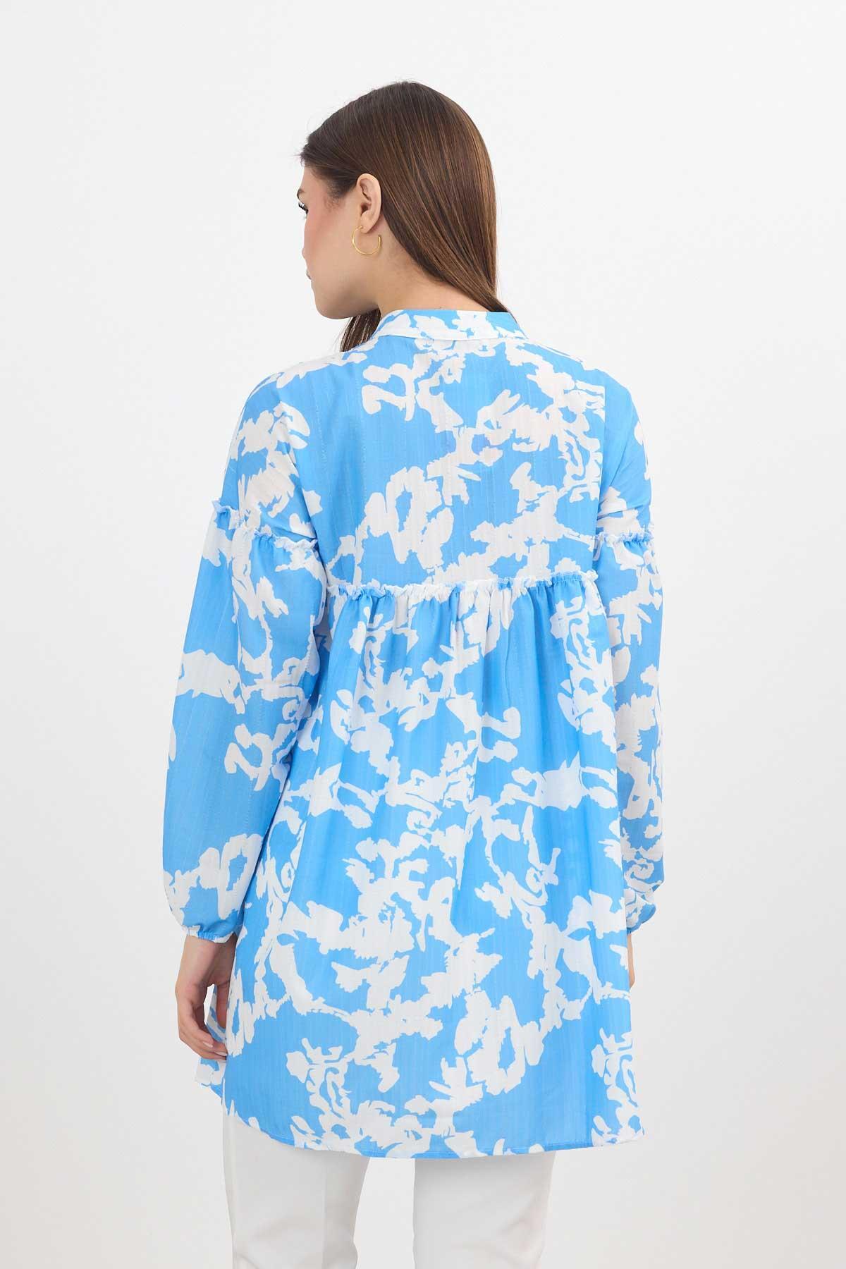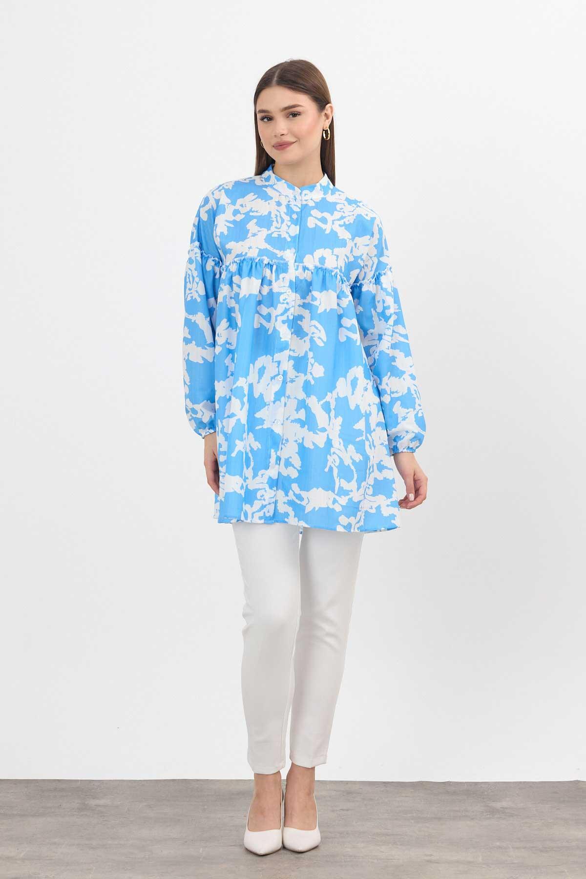 Mavi Desenli Kol Lastikli Tunik 4366A