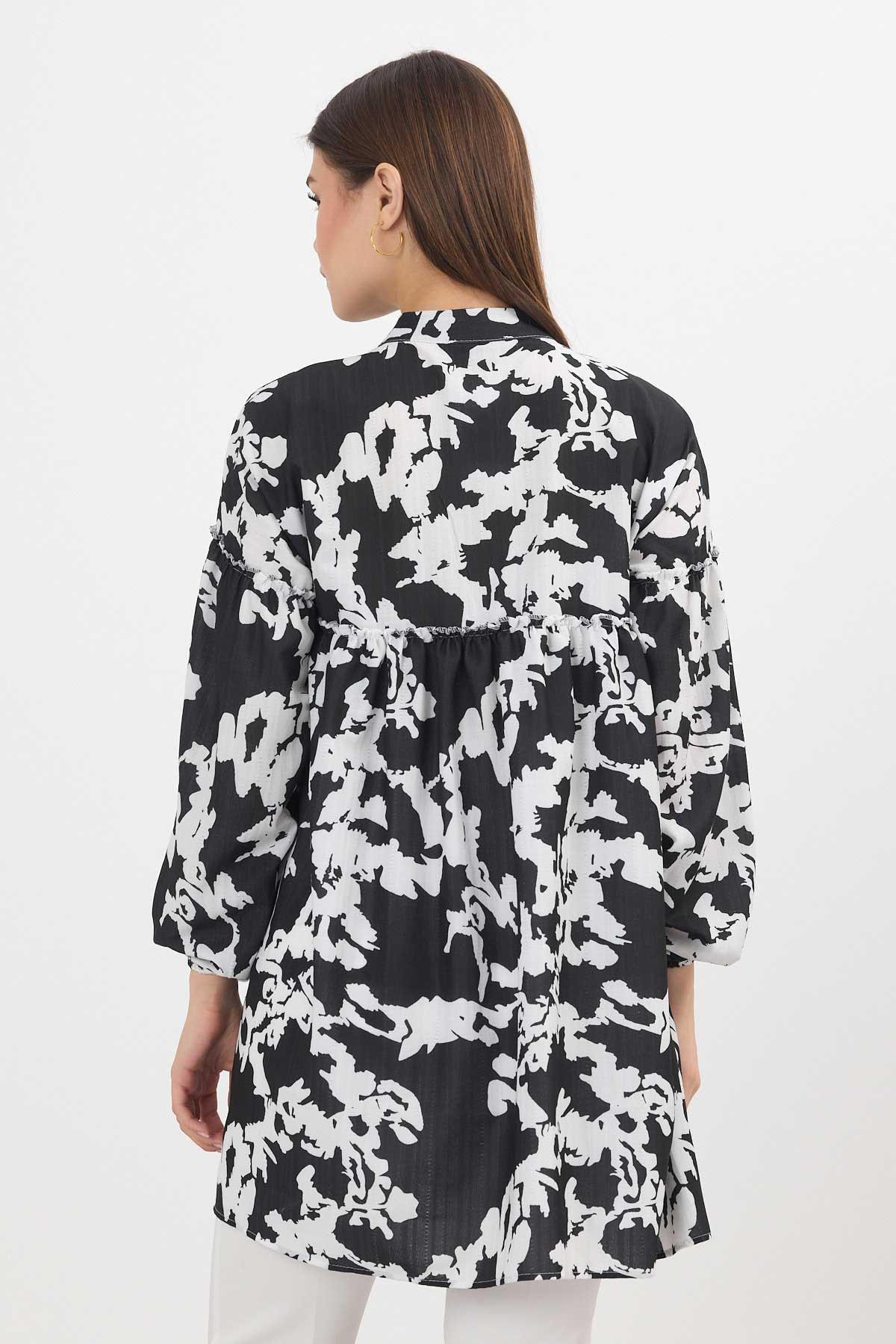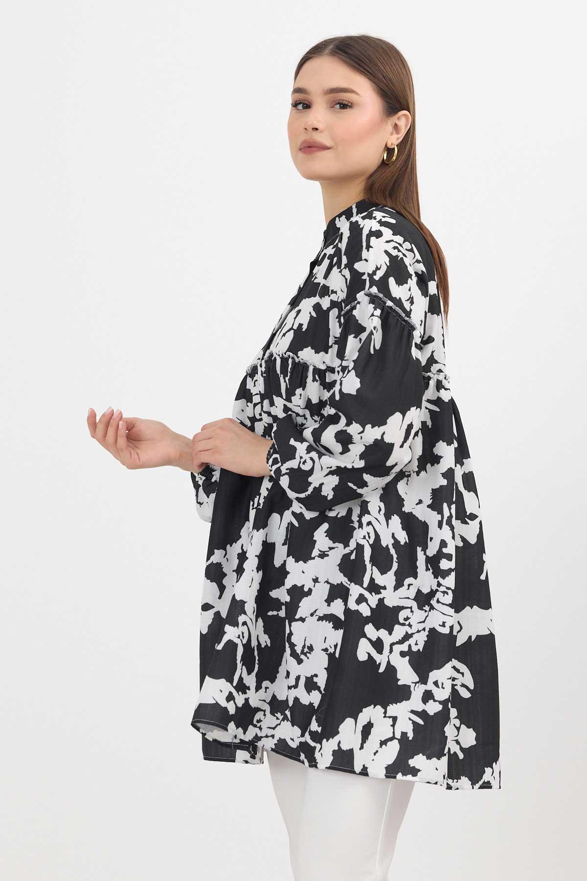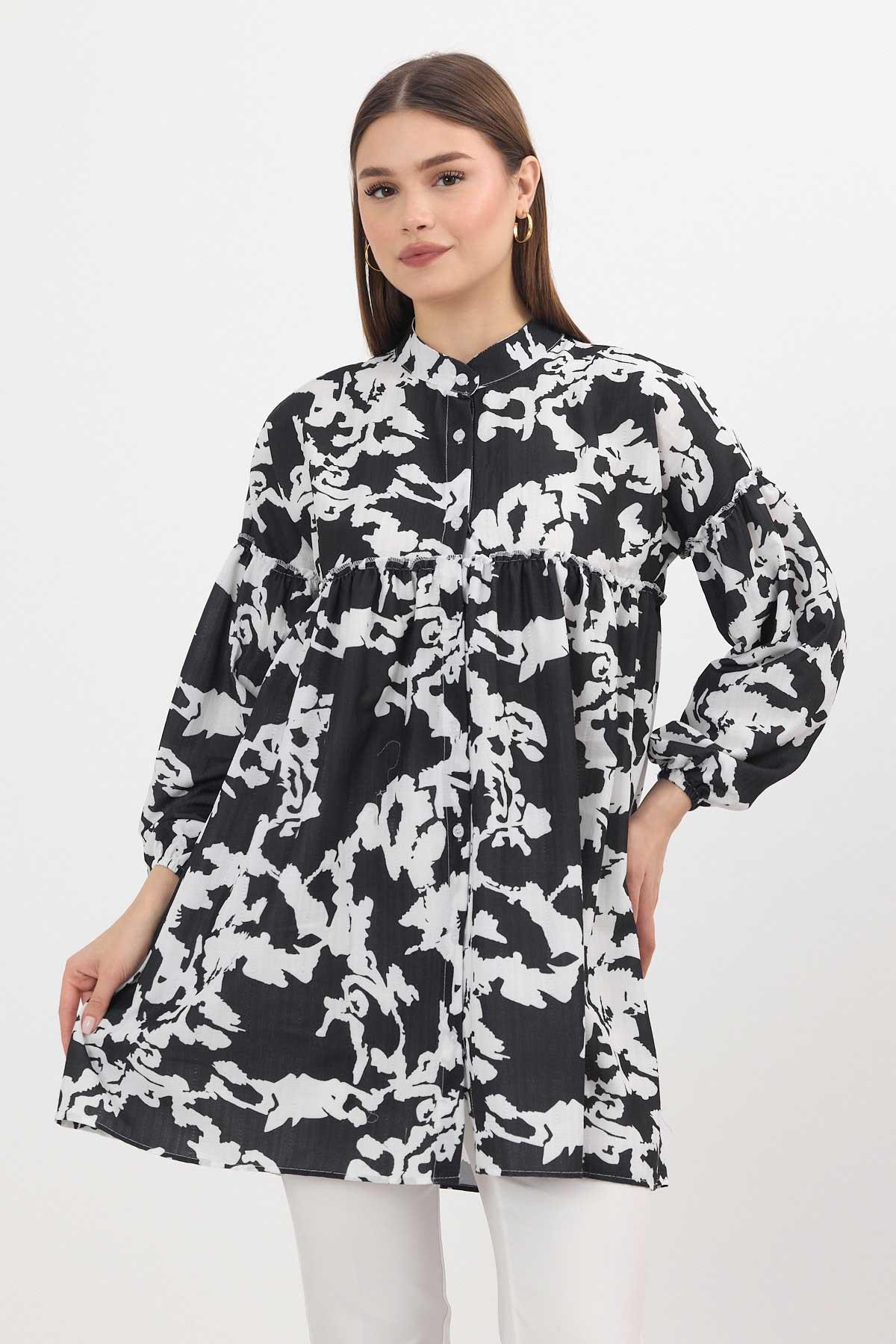 Siyah Desenli Kol Lastikli Tunik 4366A