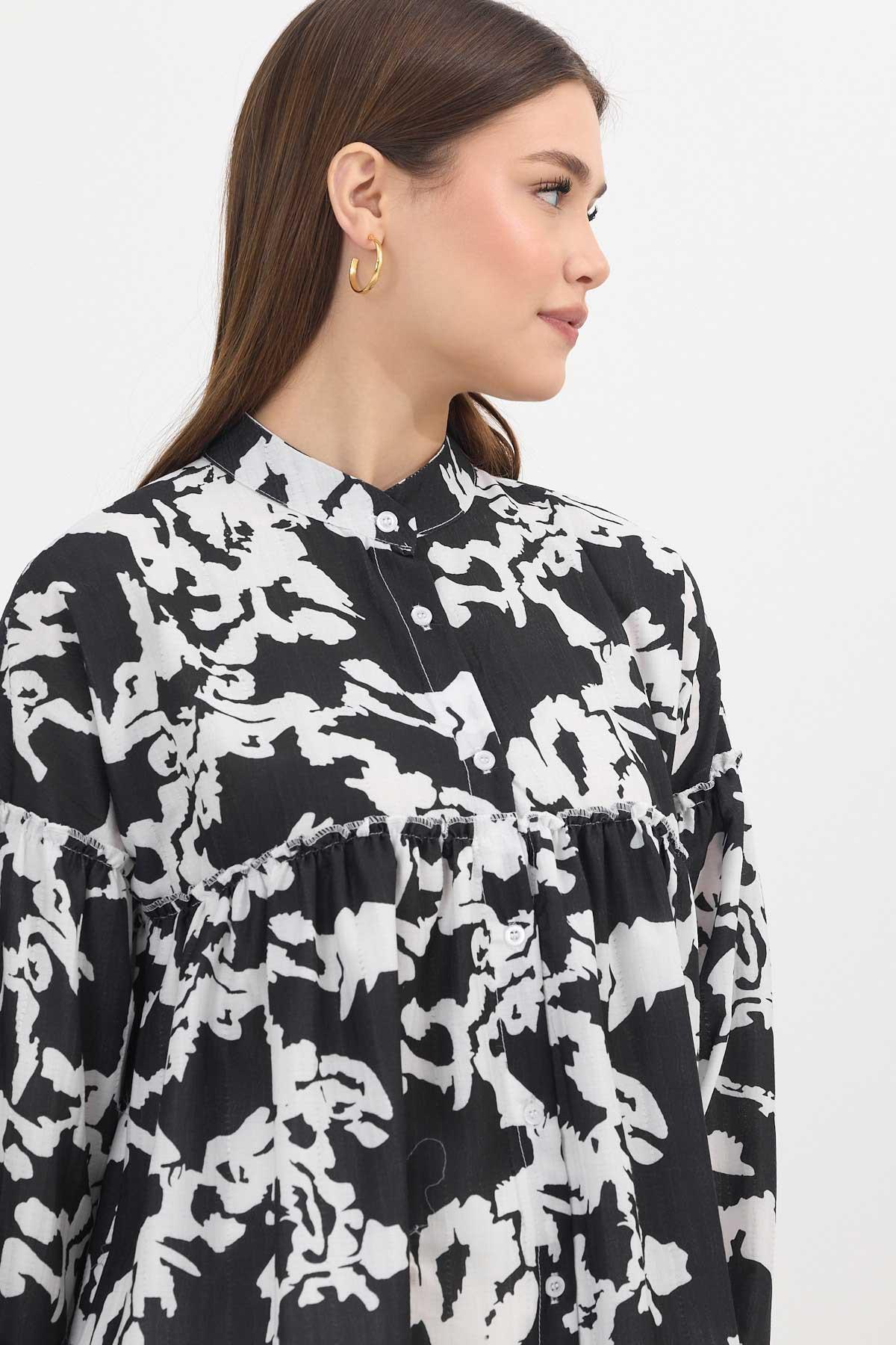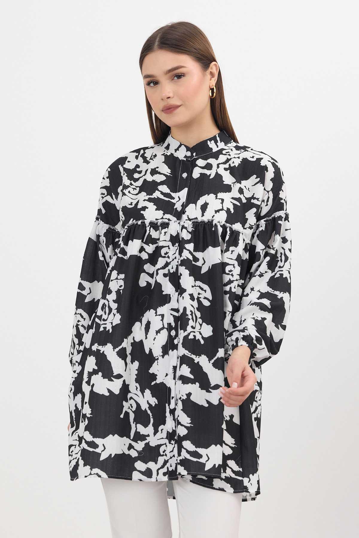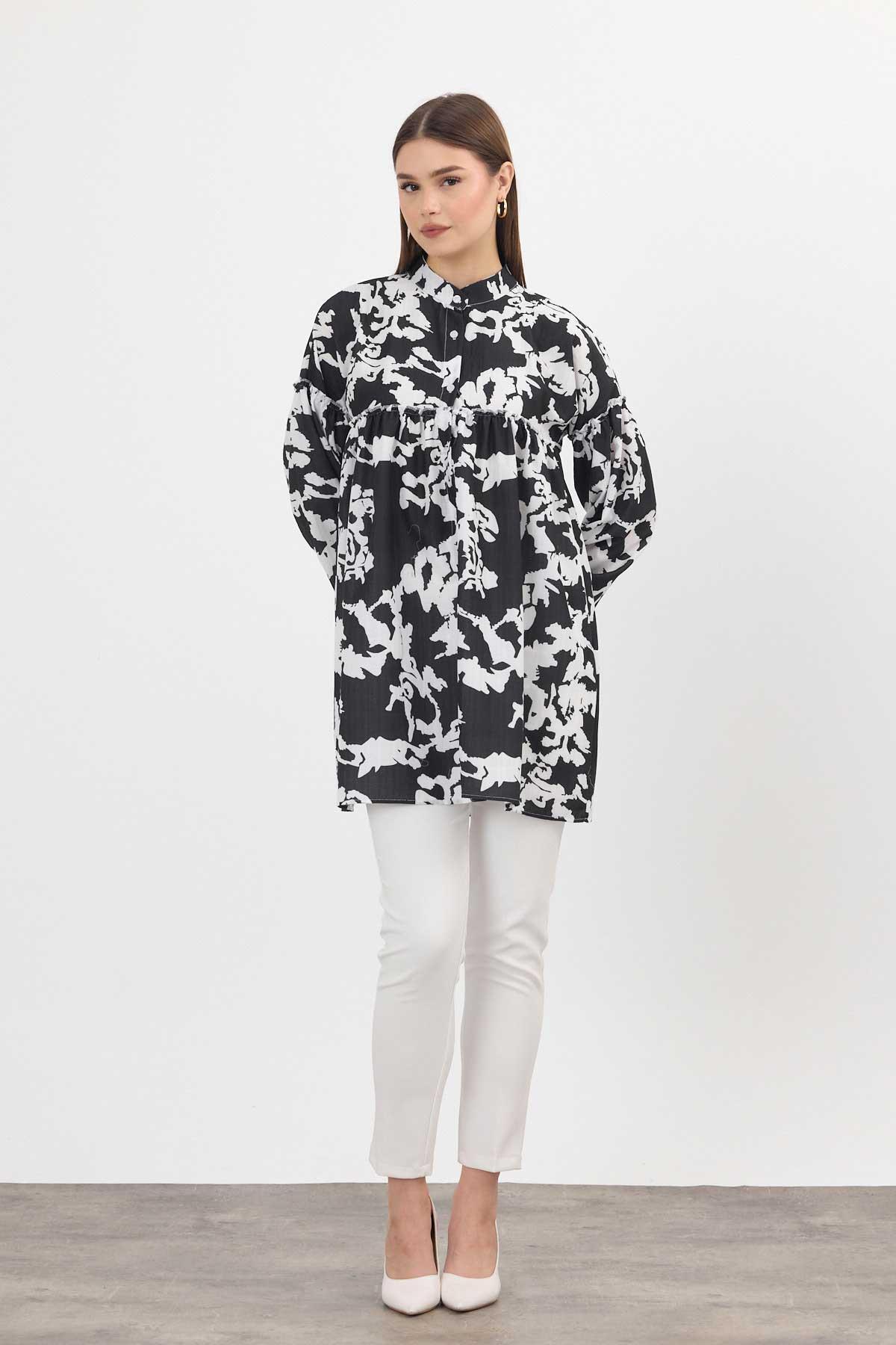 Siyah Desenli Kol Lastikli Tunik 4366A