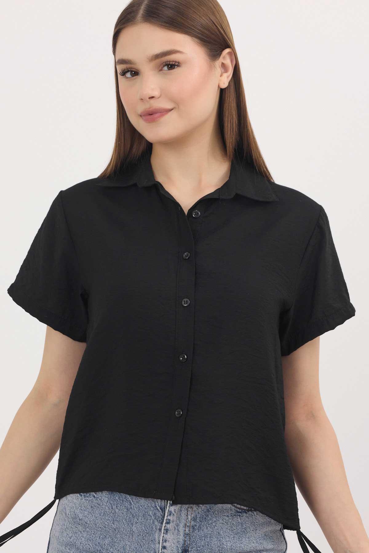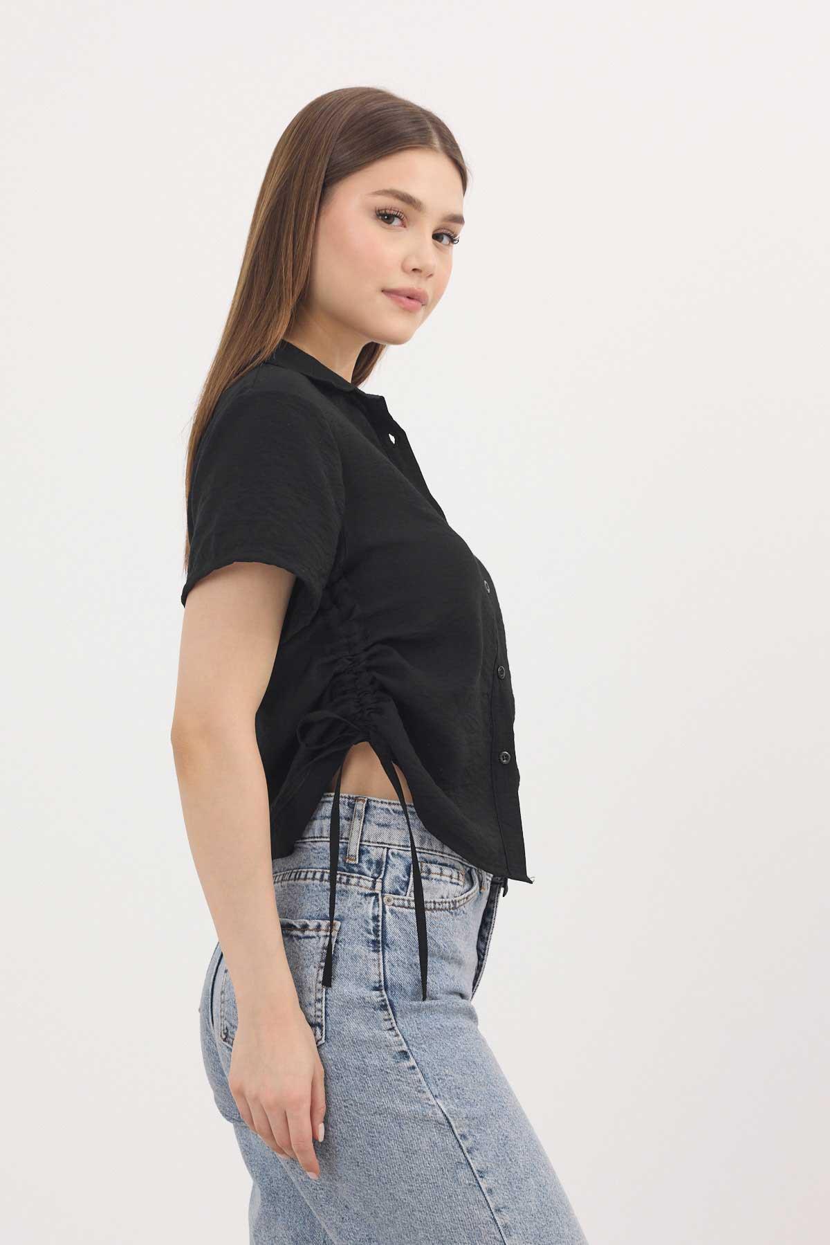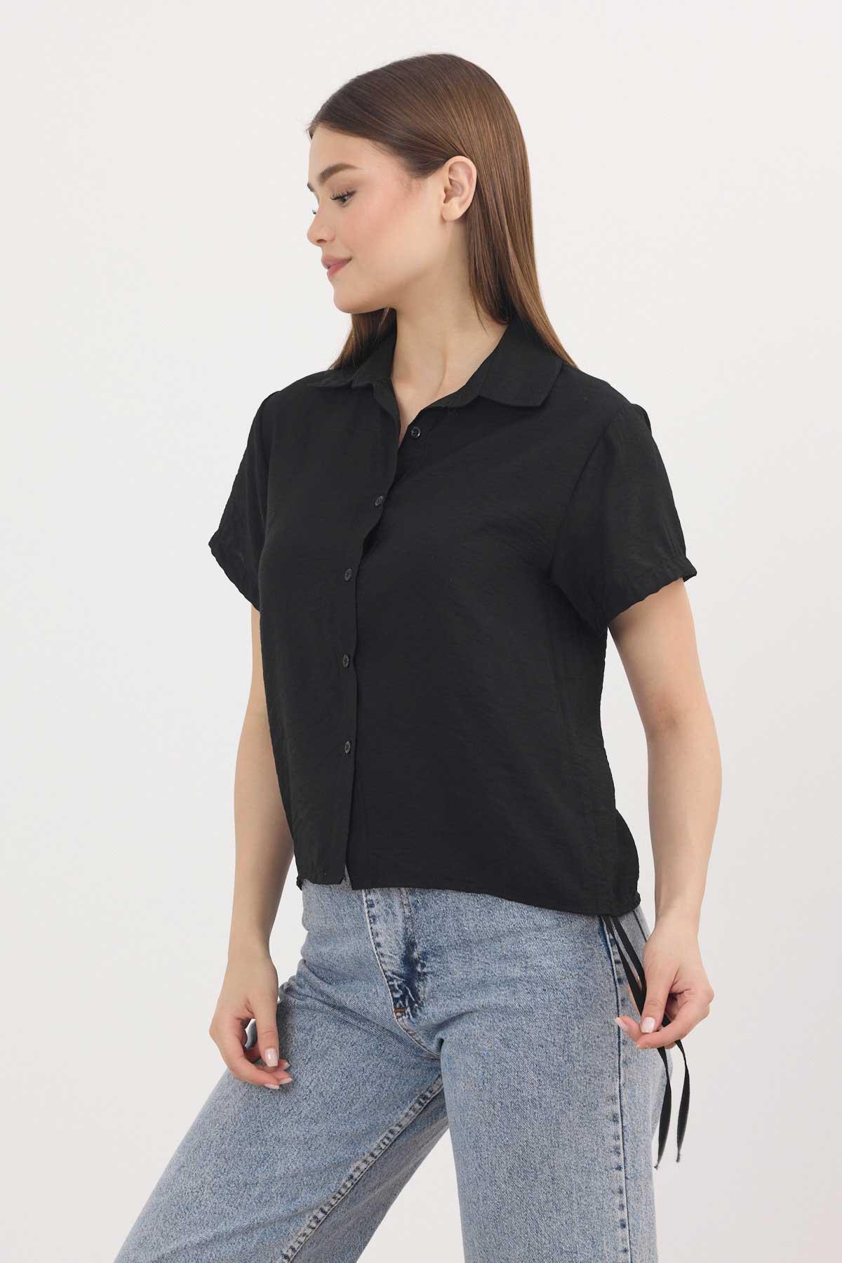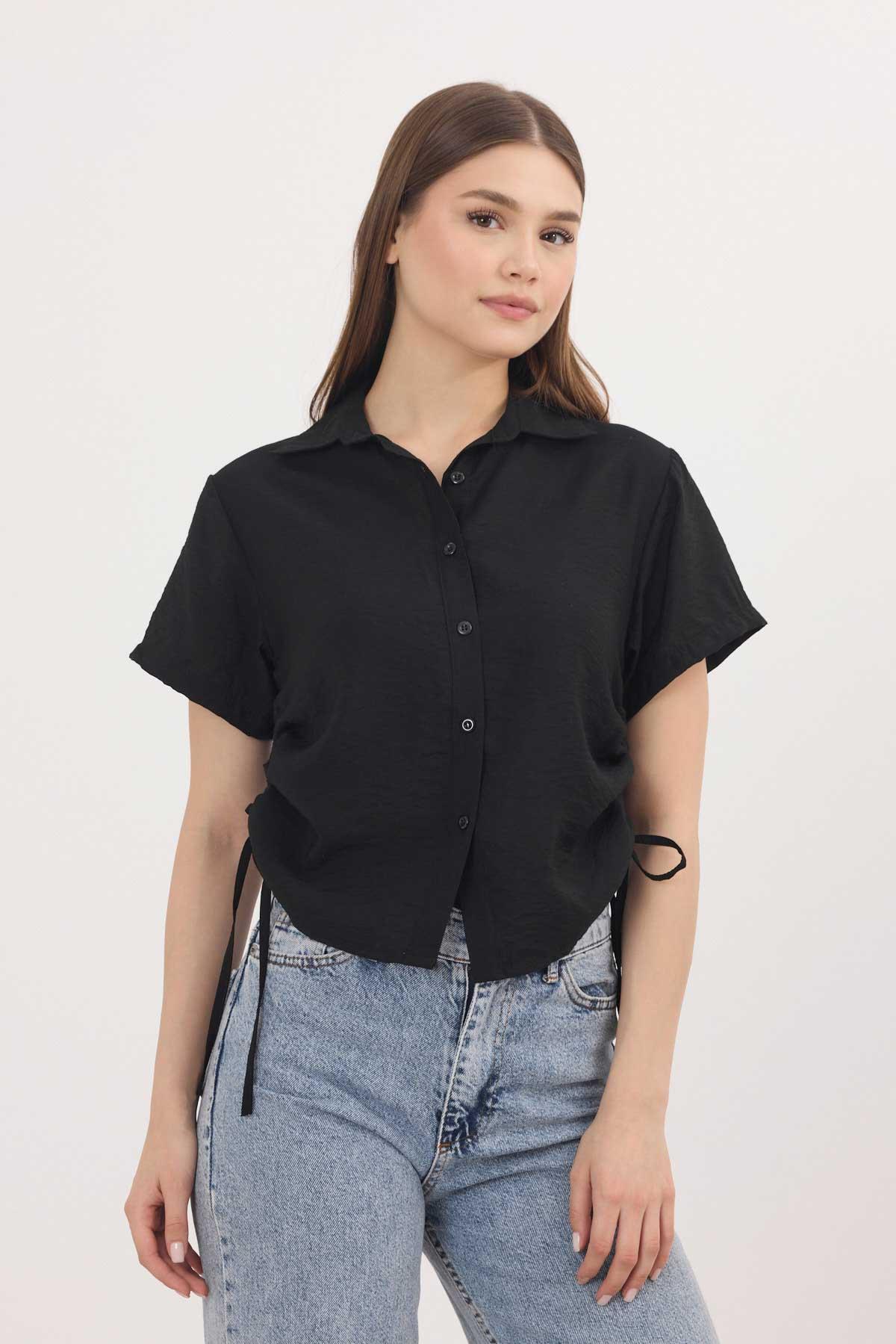 Siyah Yanları Büzgülü Kısa Gömlek 4368A