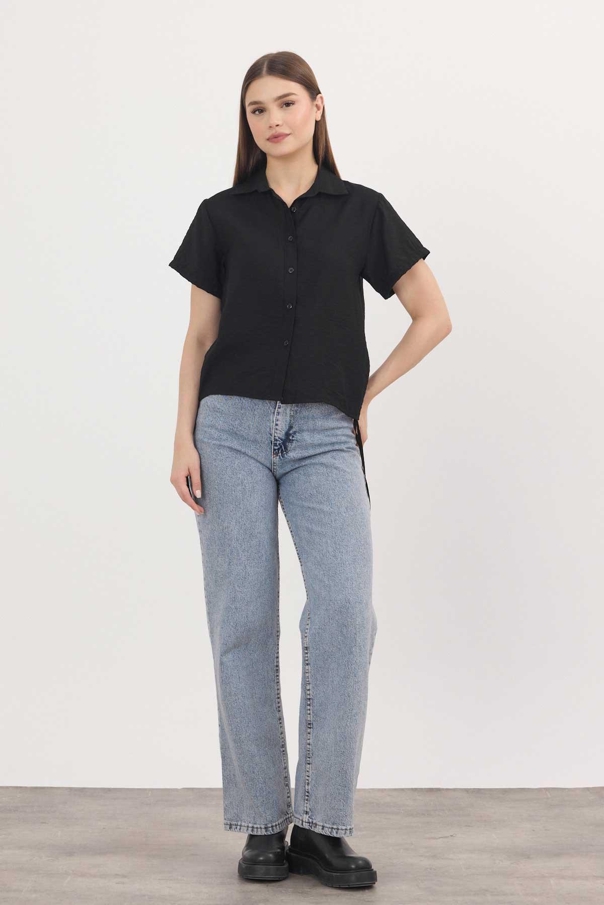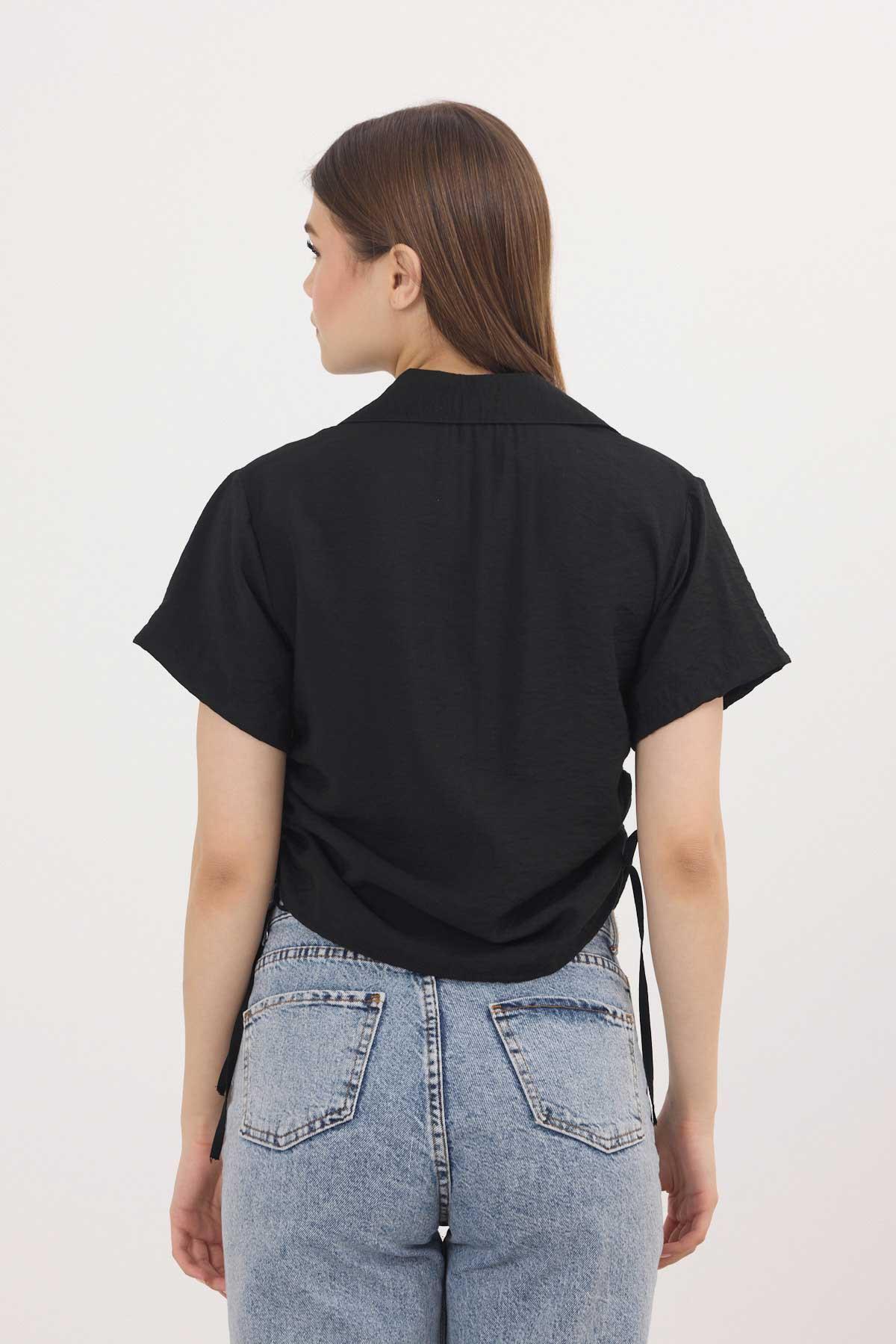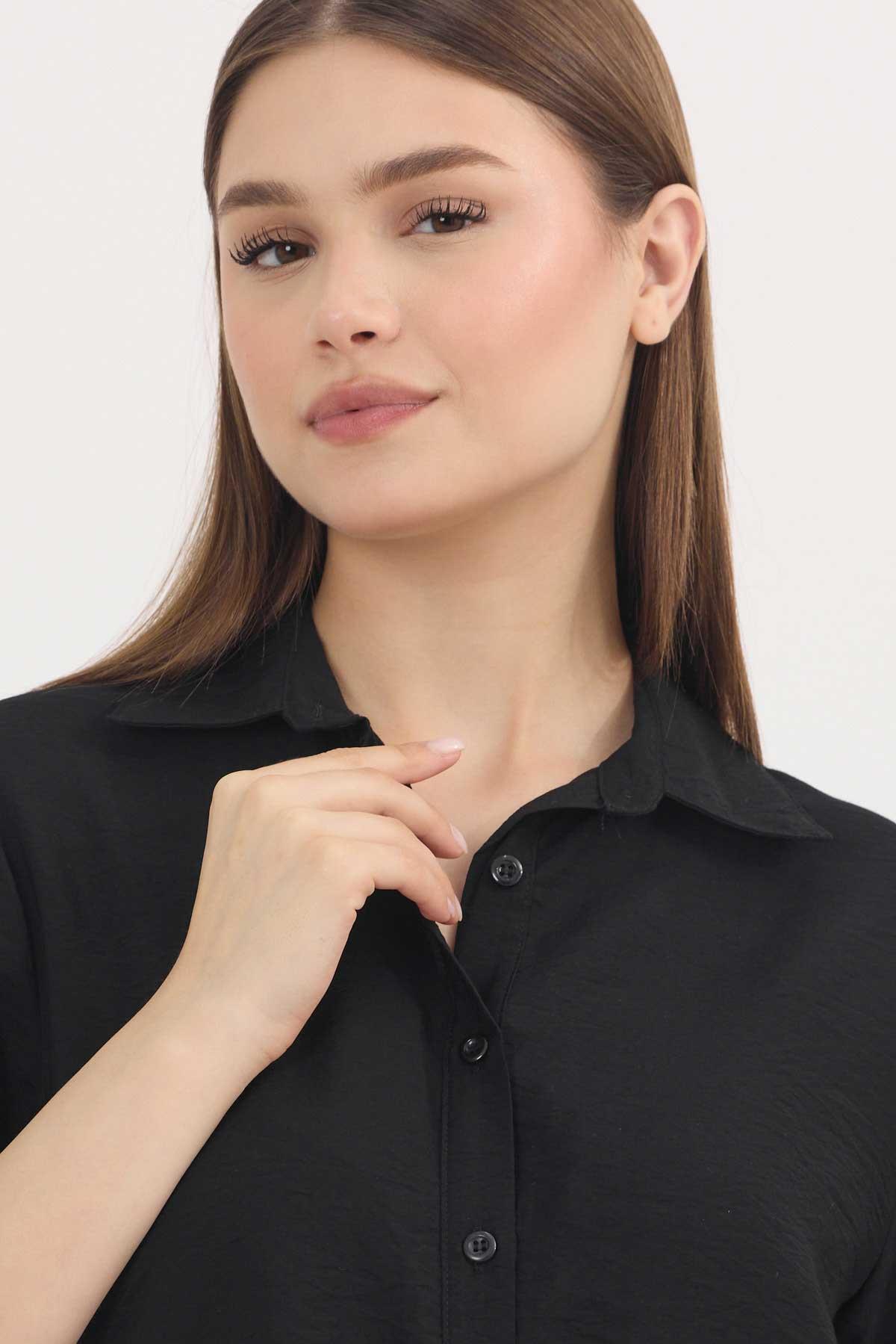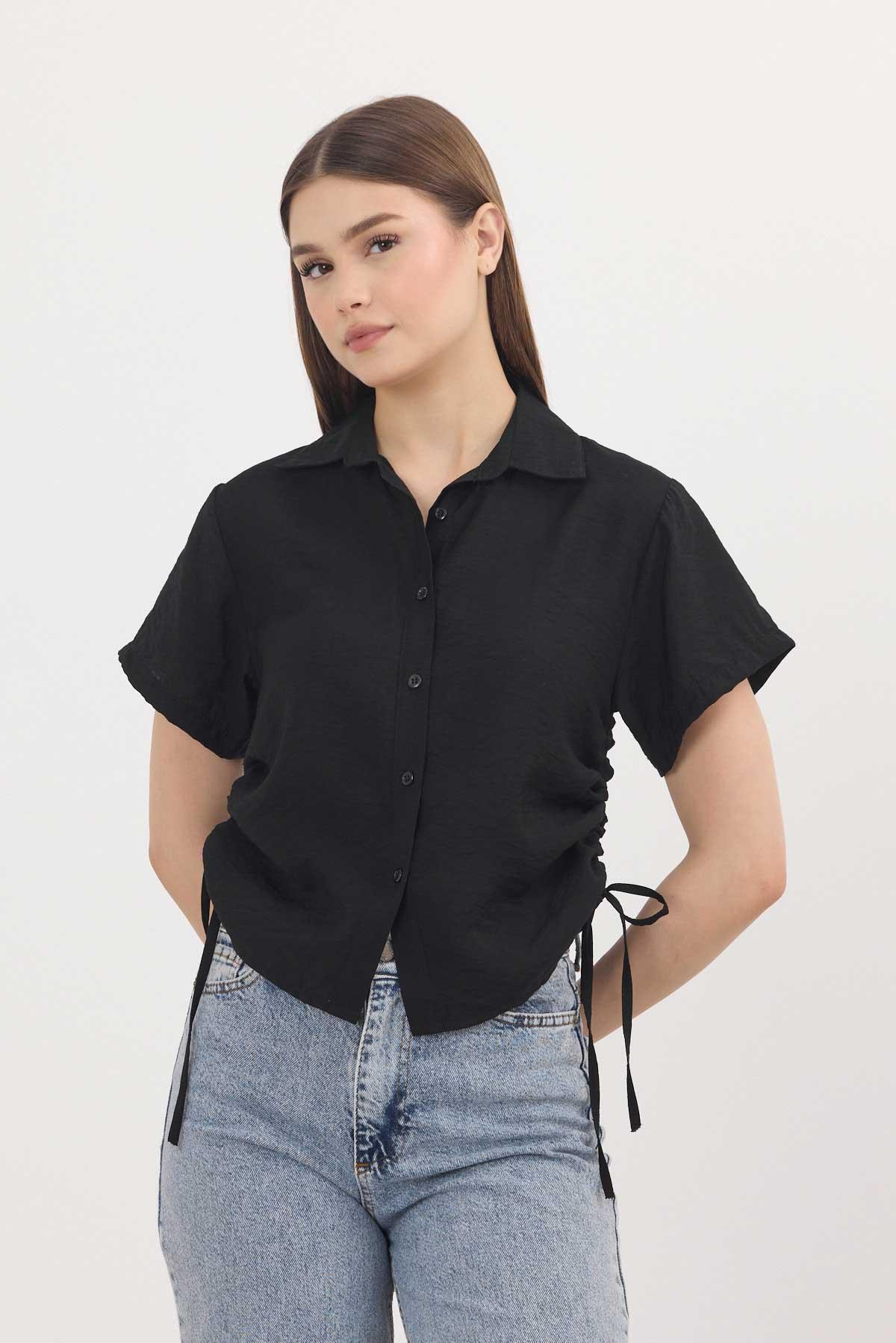 Siyah Yanları Büzgülü Kısa Gömlek 4368A