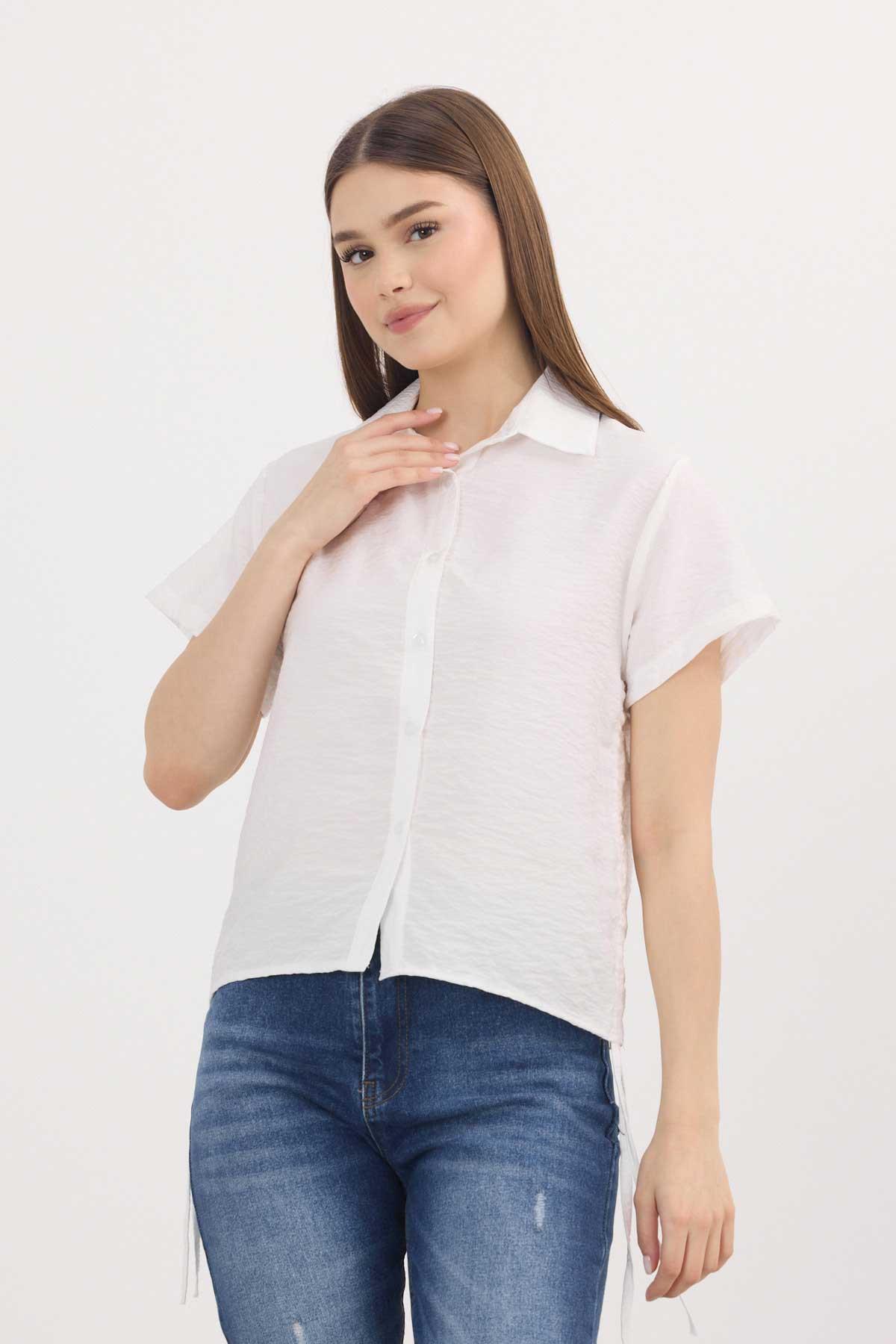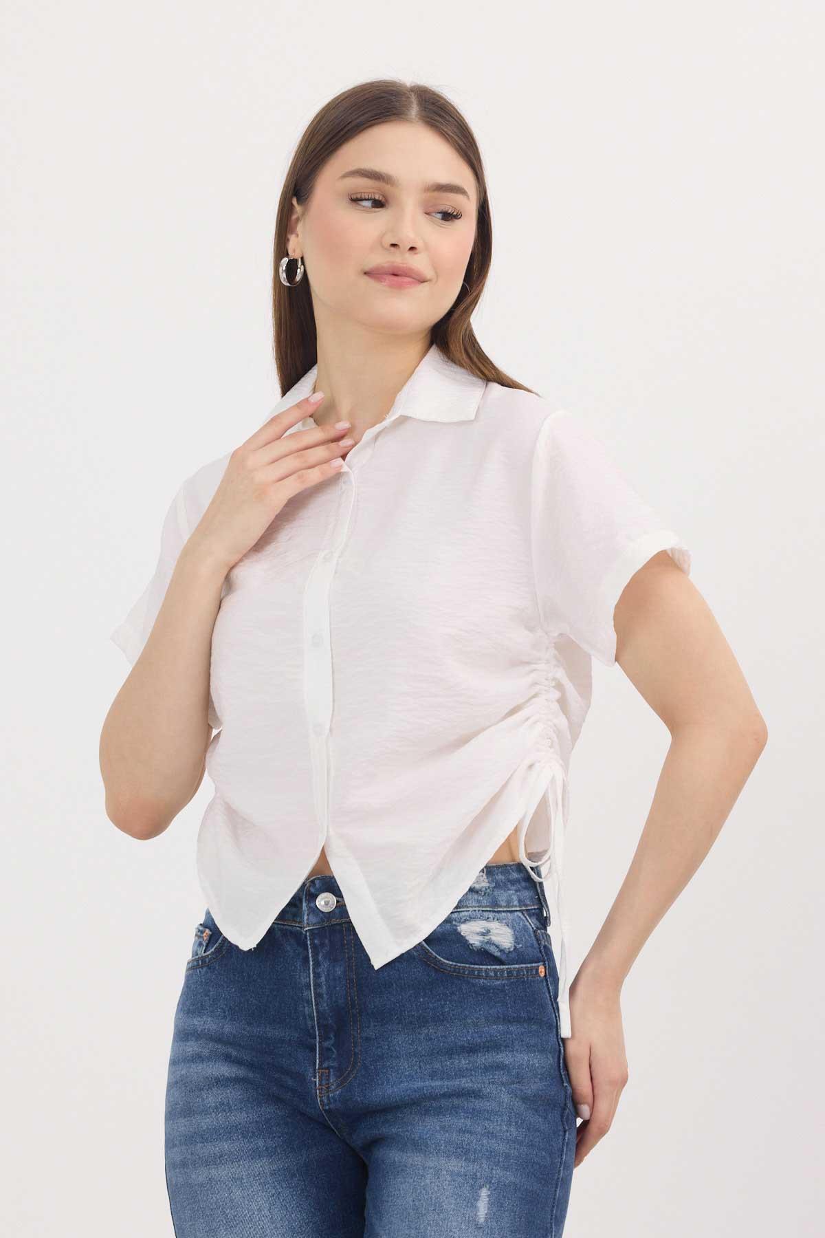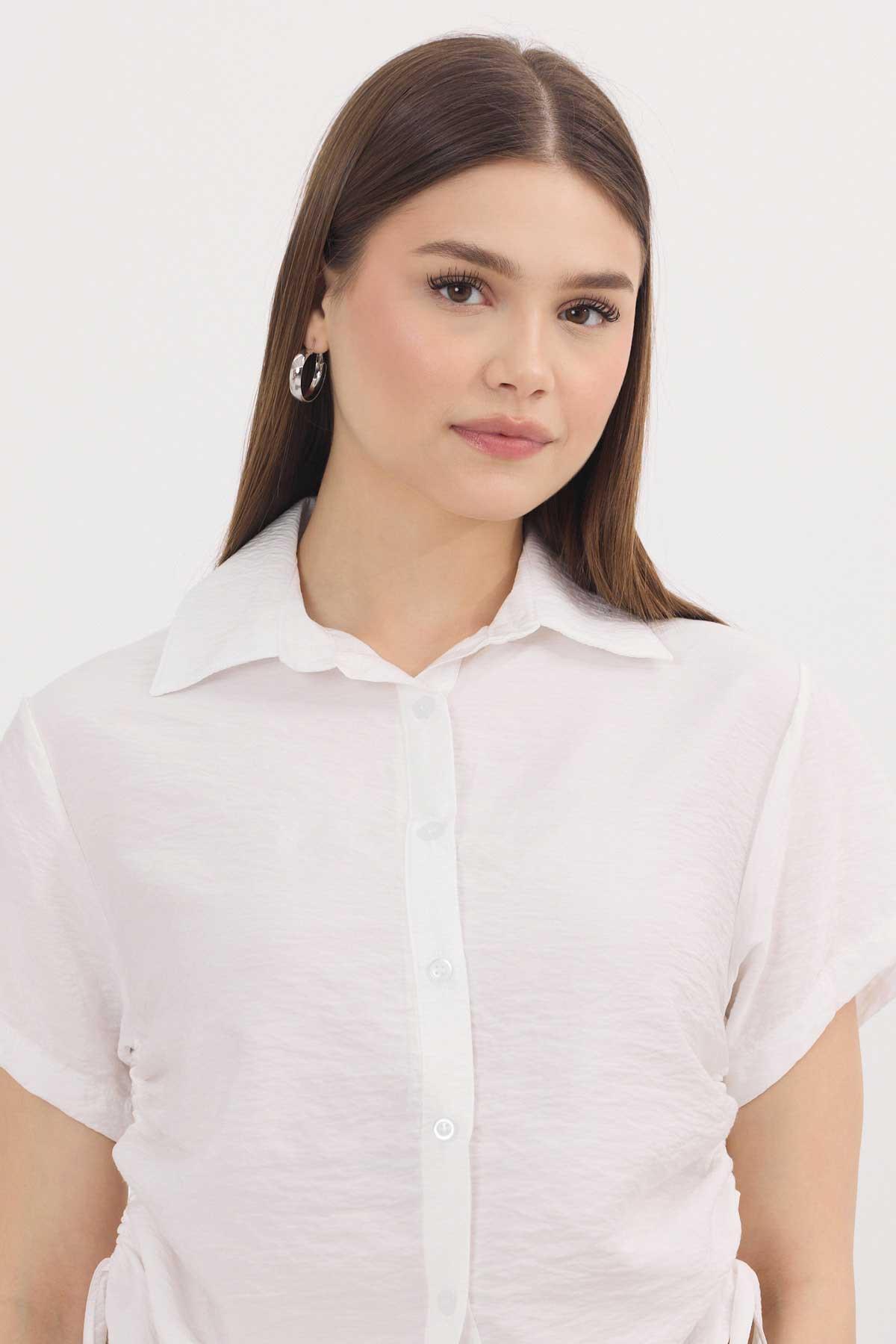 Beyaz Yanları Büzgülü Kısa Gömlek 4368A